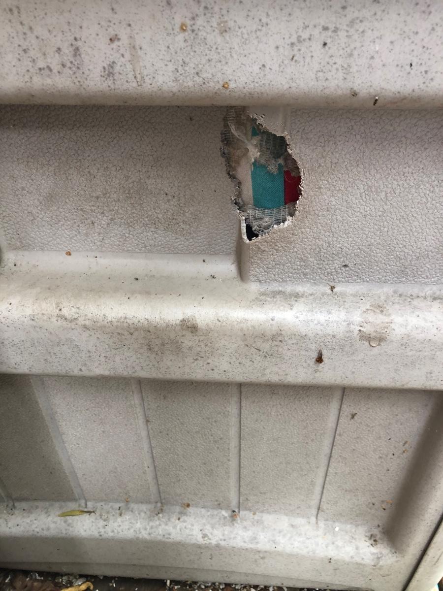 See pics. Squirrel ate one spot