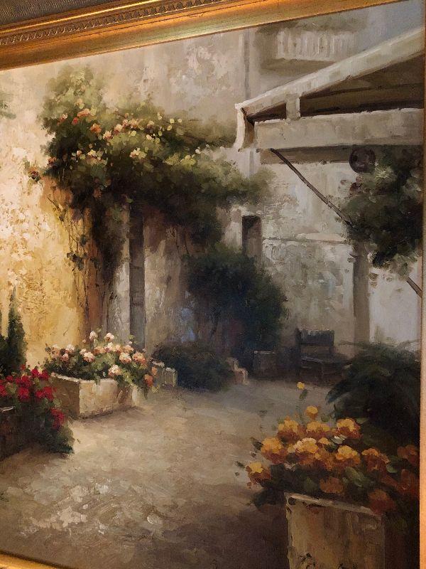 Stunning painting on canvas. This piece is signed and is framed beautifully! Please see the pictures for the craftsmanship and details. Measures 51 x 40 inches.