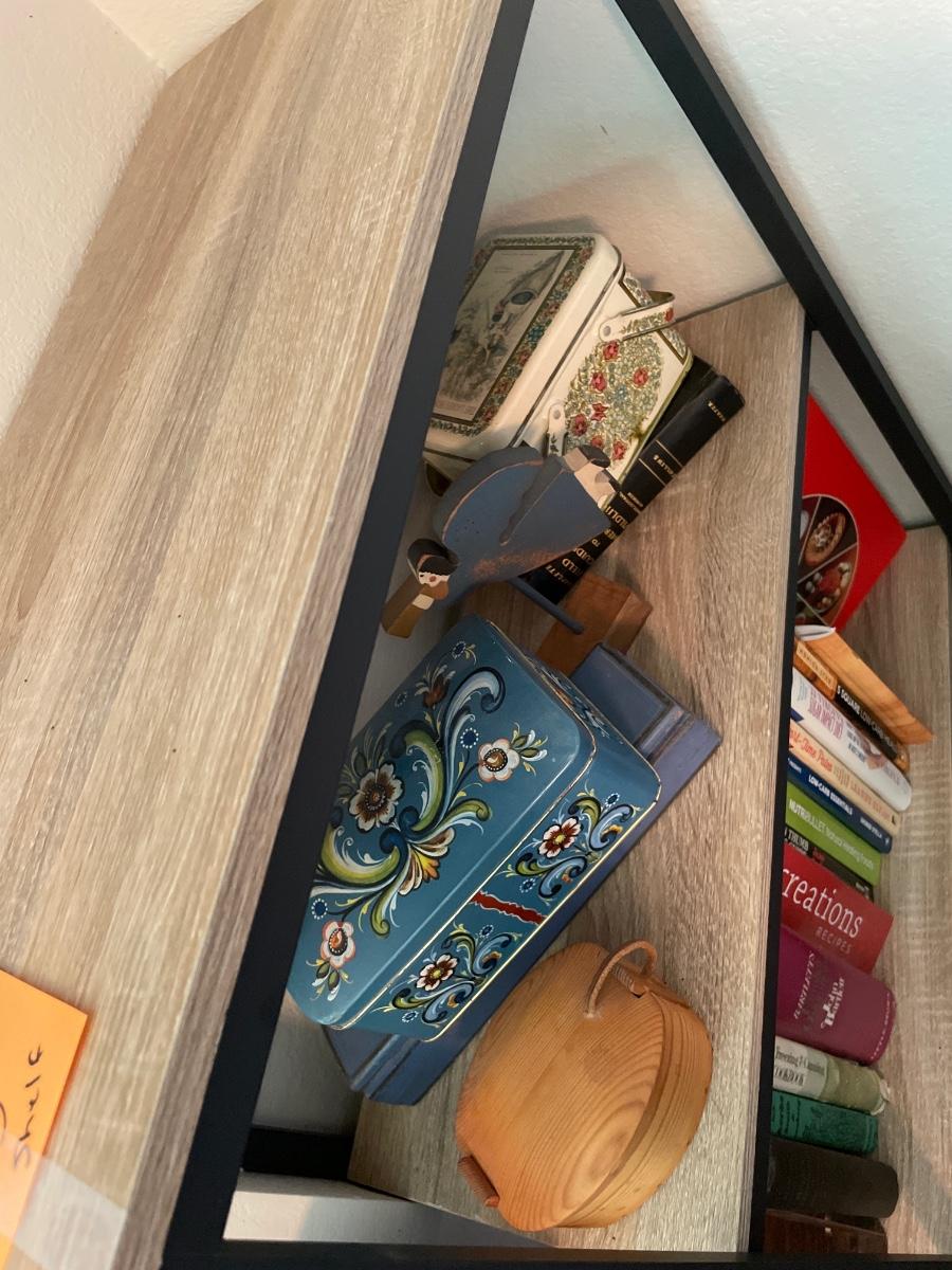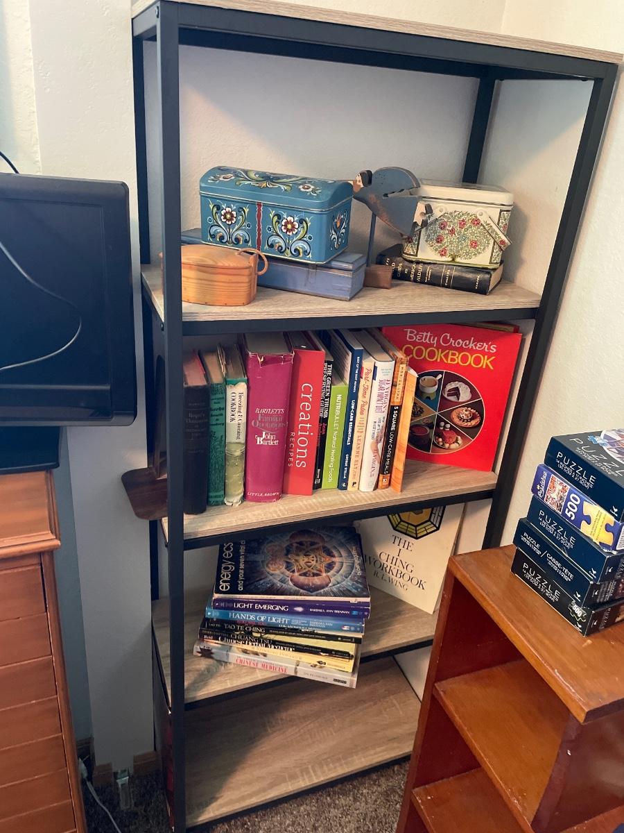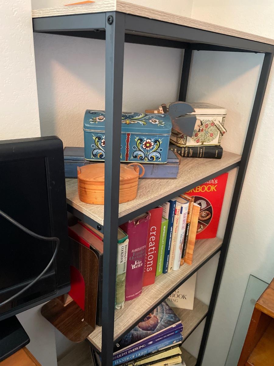 Metal and wood shelf 23.5” W 11.5” D 56’H contents not included