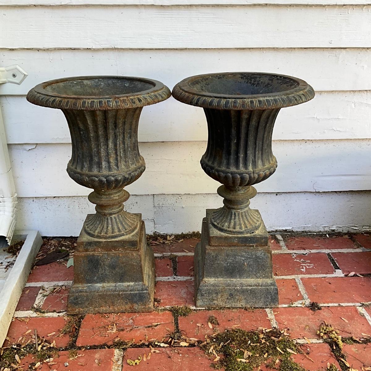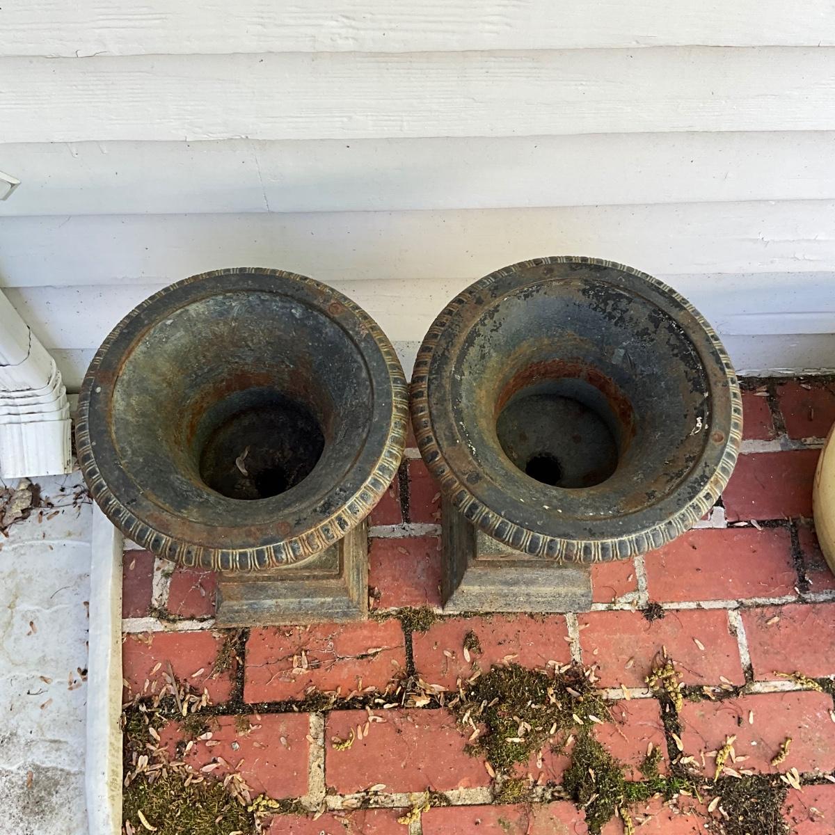 O534 Pair of Cast Iron Urns with Base