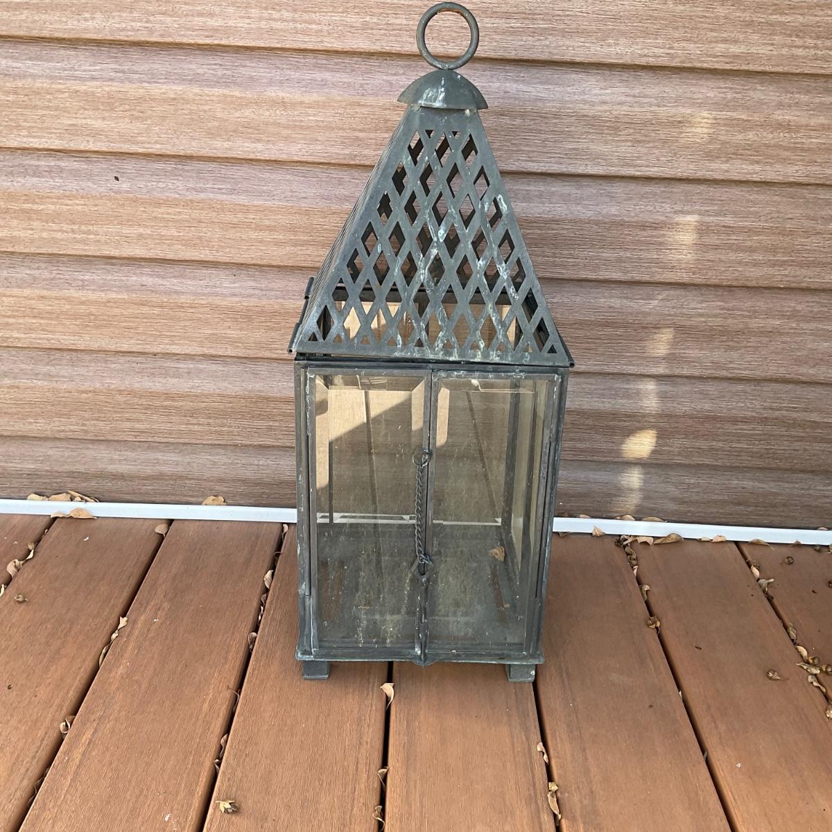 O546 Metal Beveled Glass Hanging Lantern