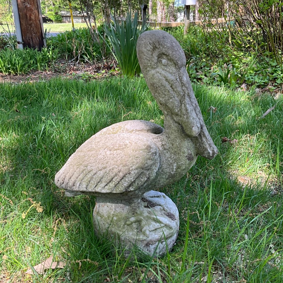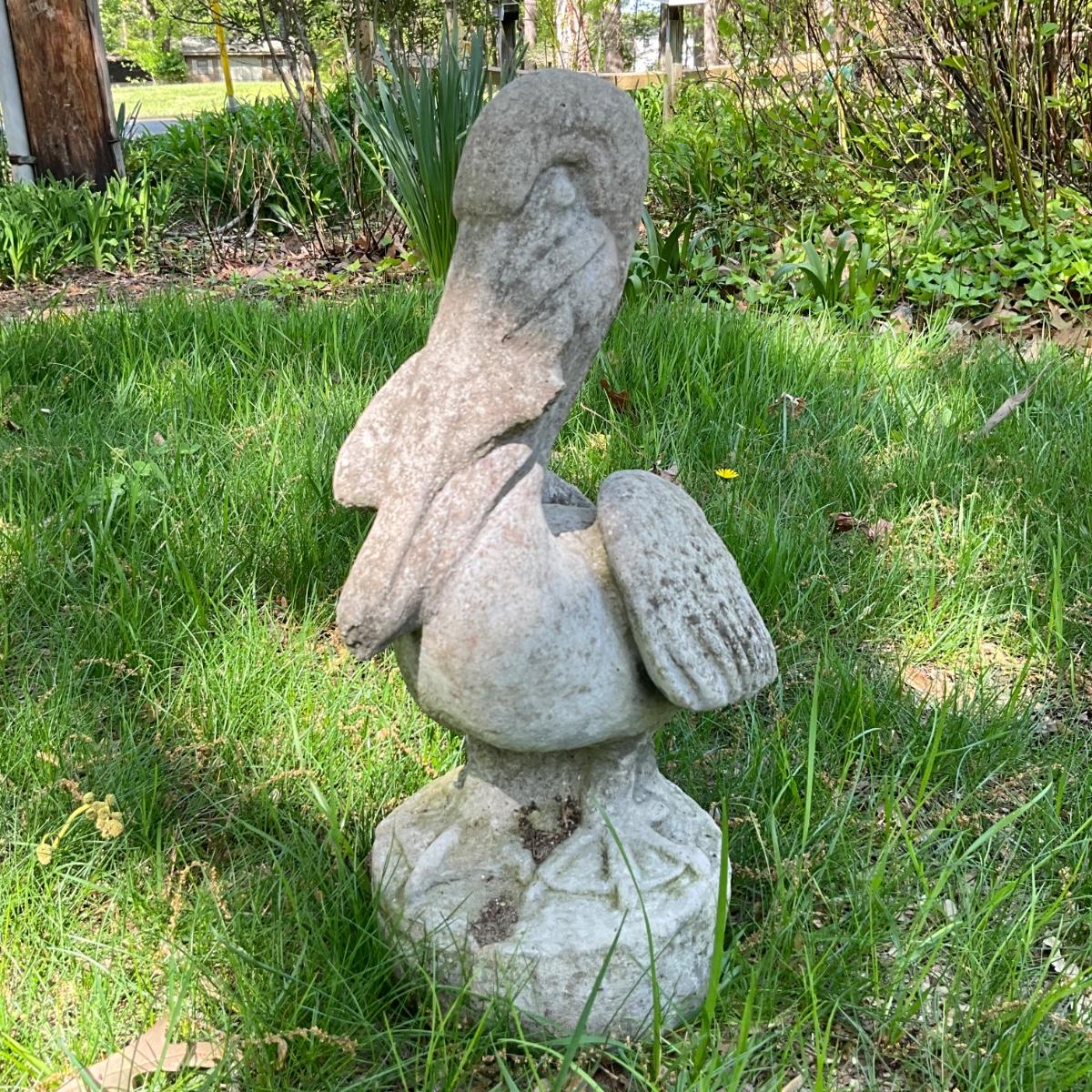 O552 Concrete Pelican Garden Statue with Fish in mouth