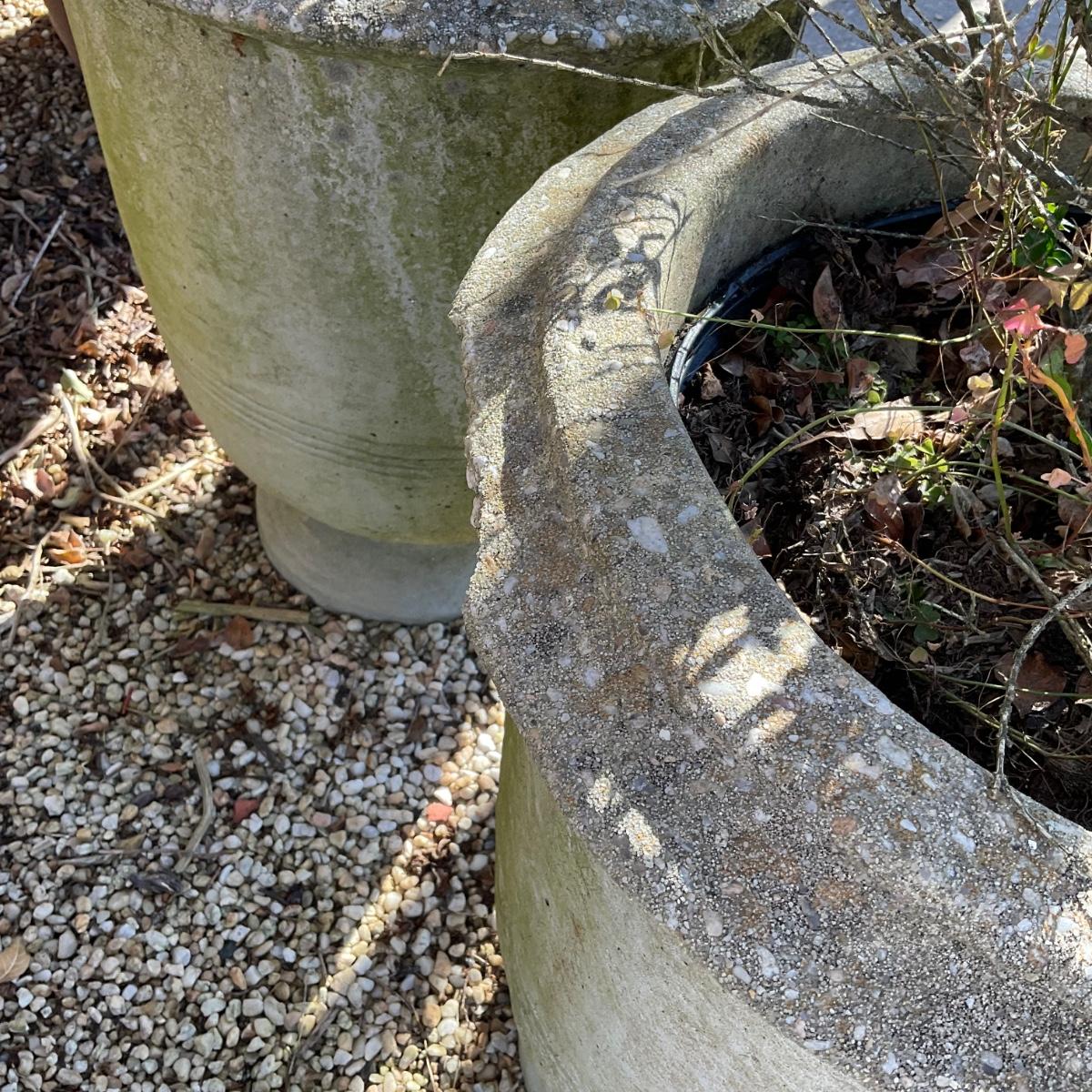 O553 Two Large Concrete Pedestal Planters with Boxwood Trees