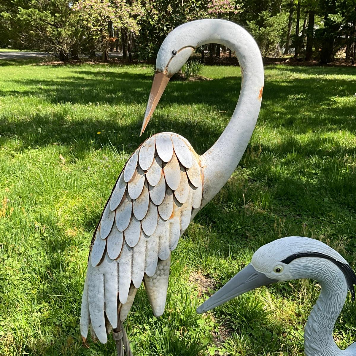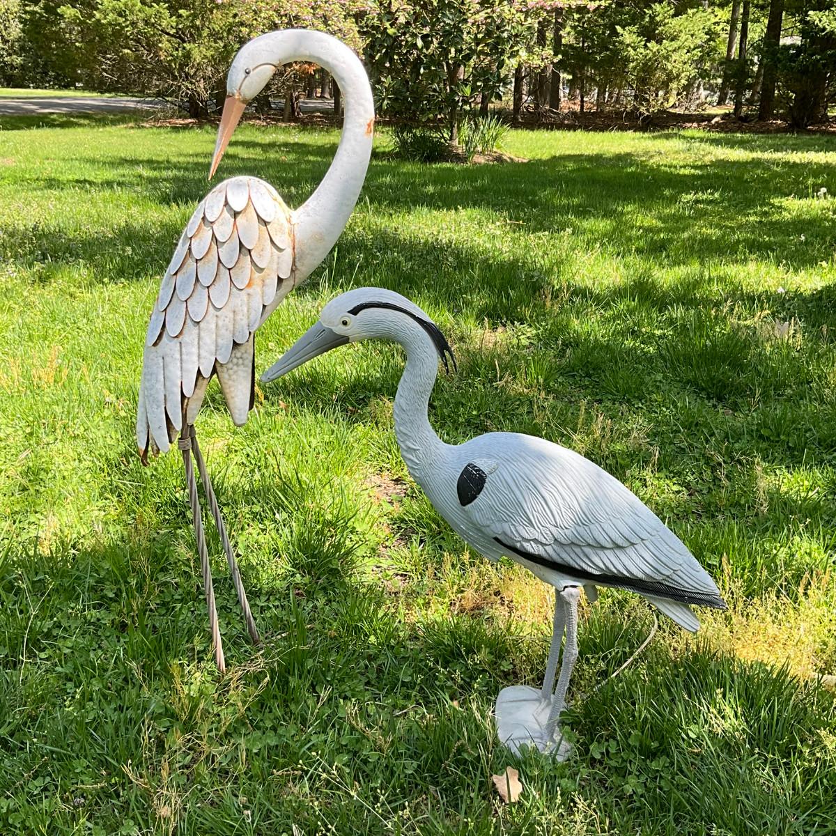 Crane measures: 38" high, Heron measures: 26" high