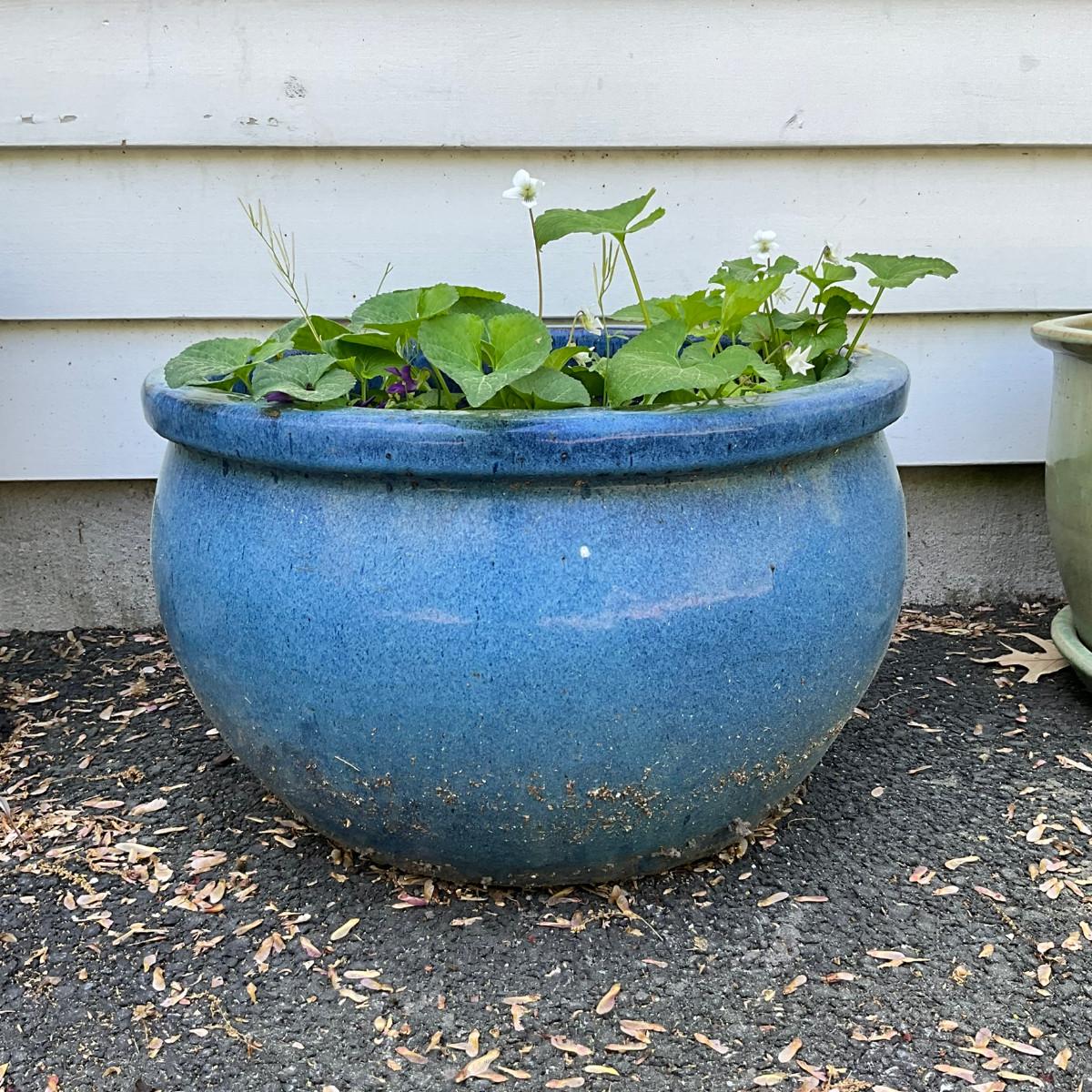 O577 Large Blue Glazed Terracotta Flower Pot