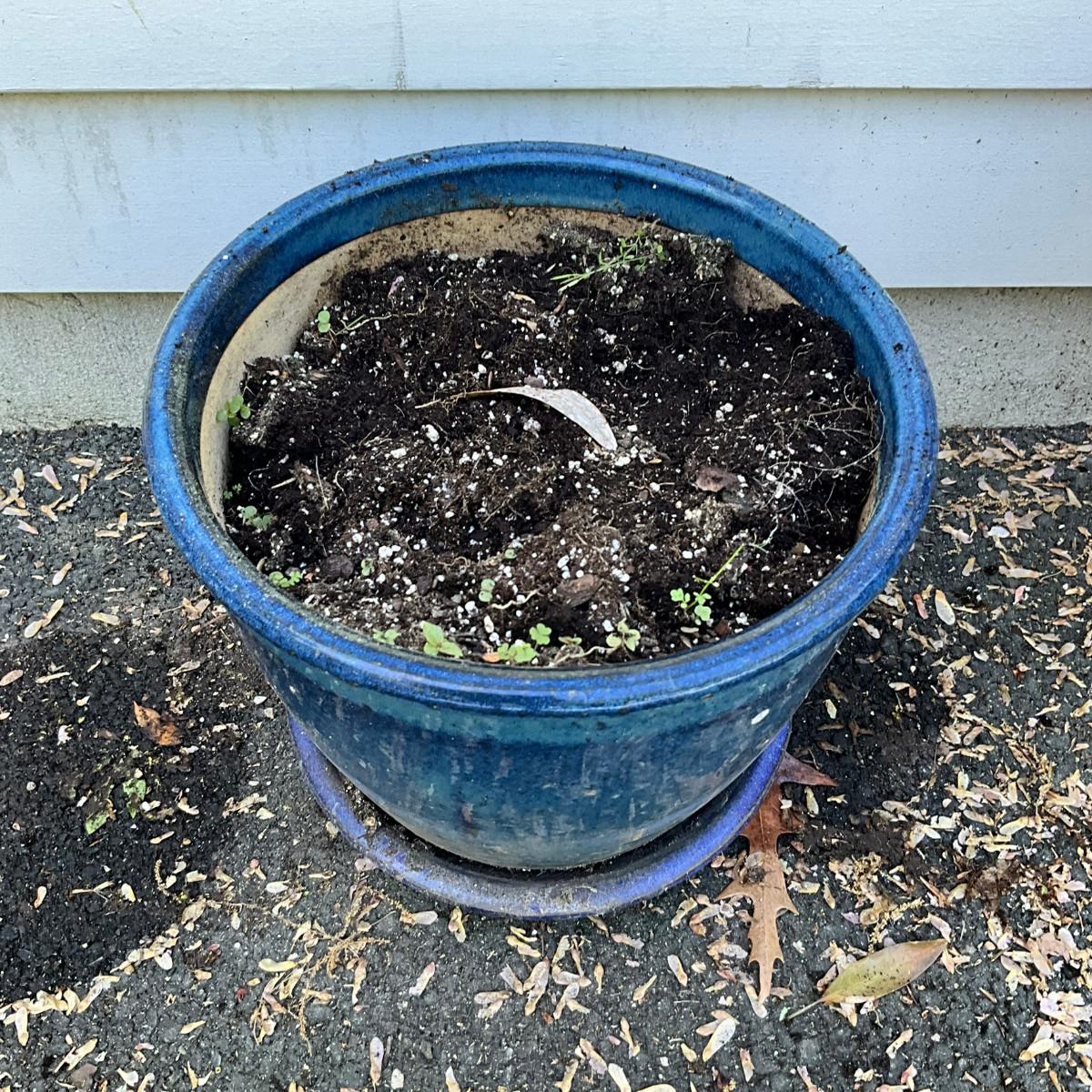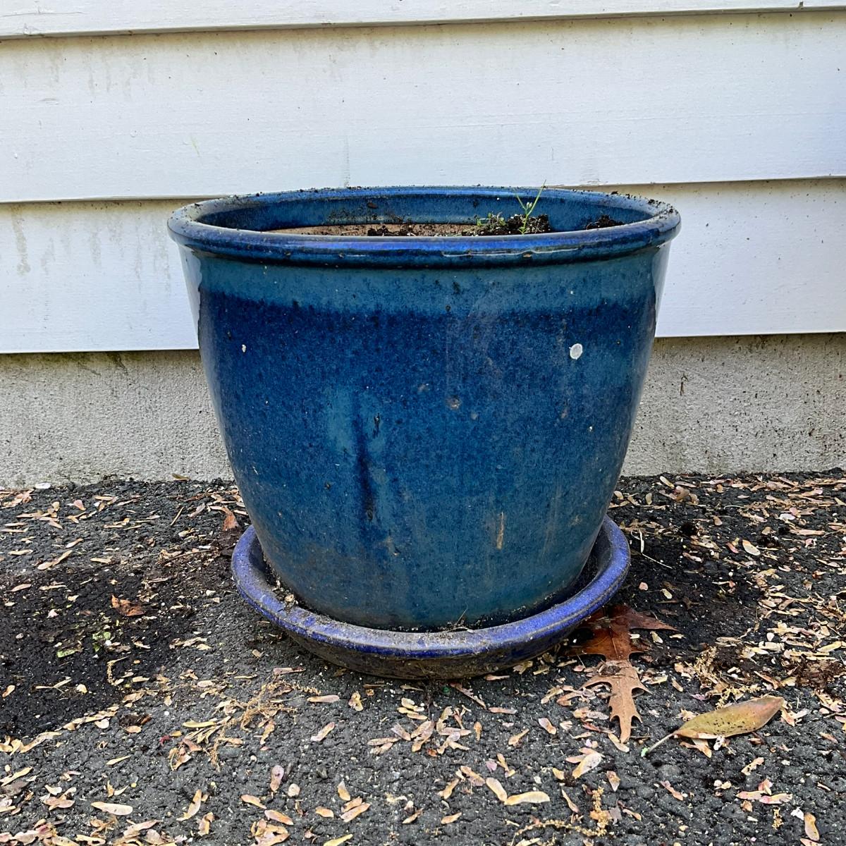 O578 Medium Blue Glased Terracotta Flower Pot With Saucer