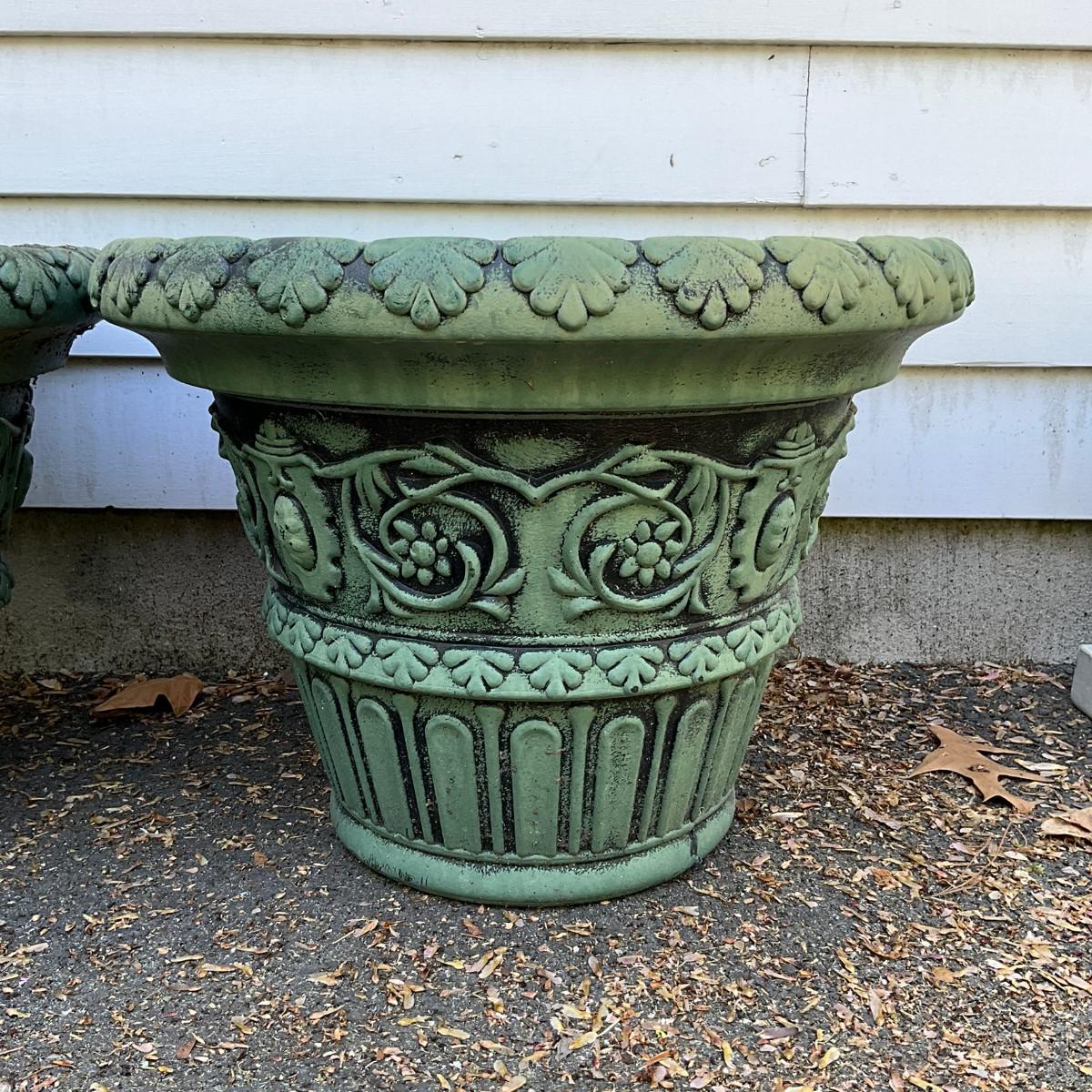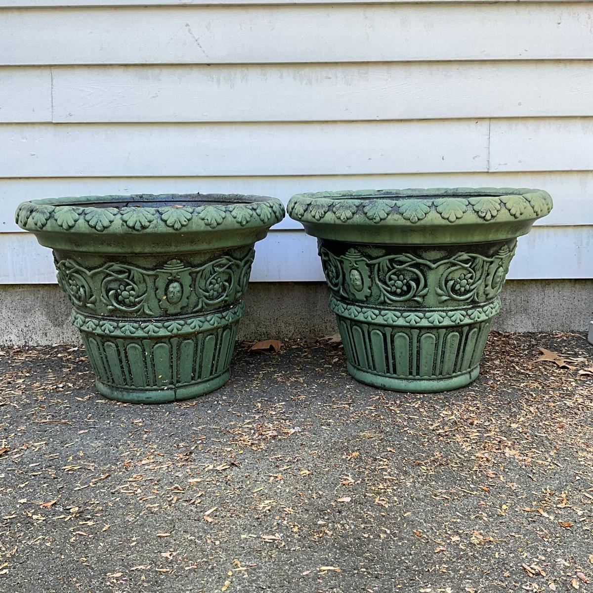 O581 Pair Of Green/Black Composite Garden Planters