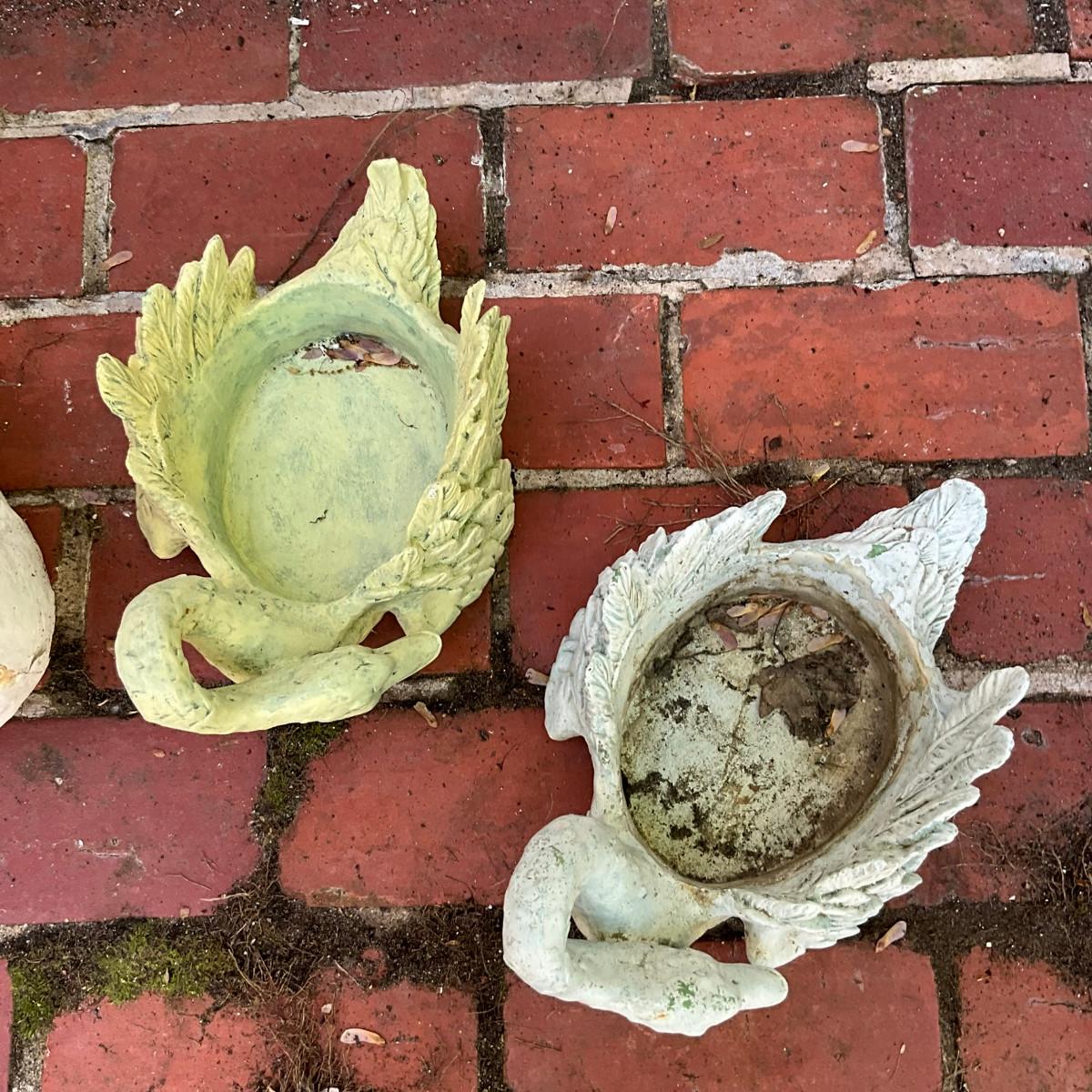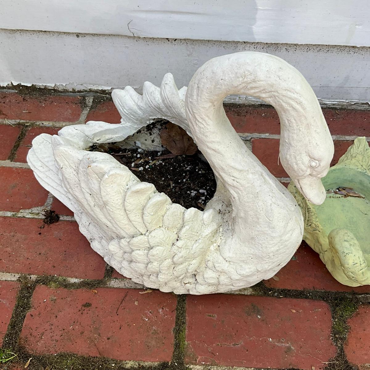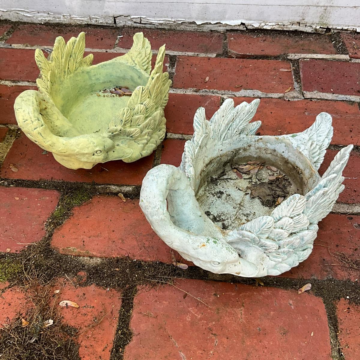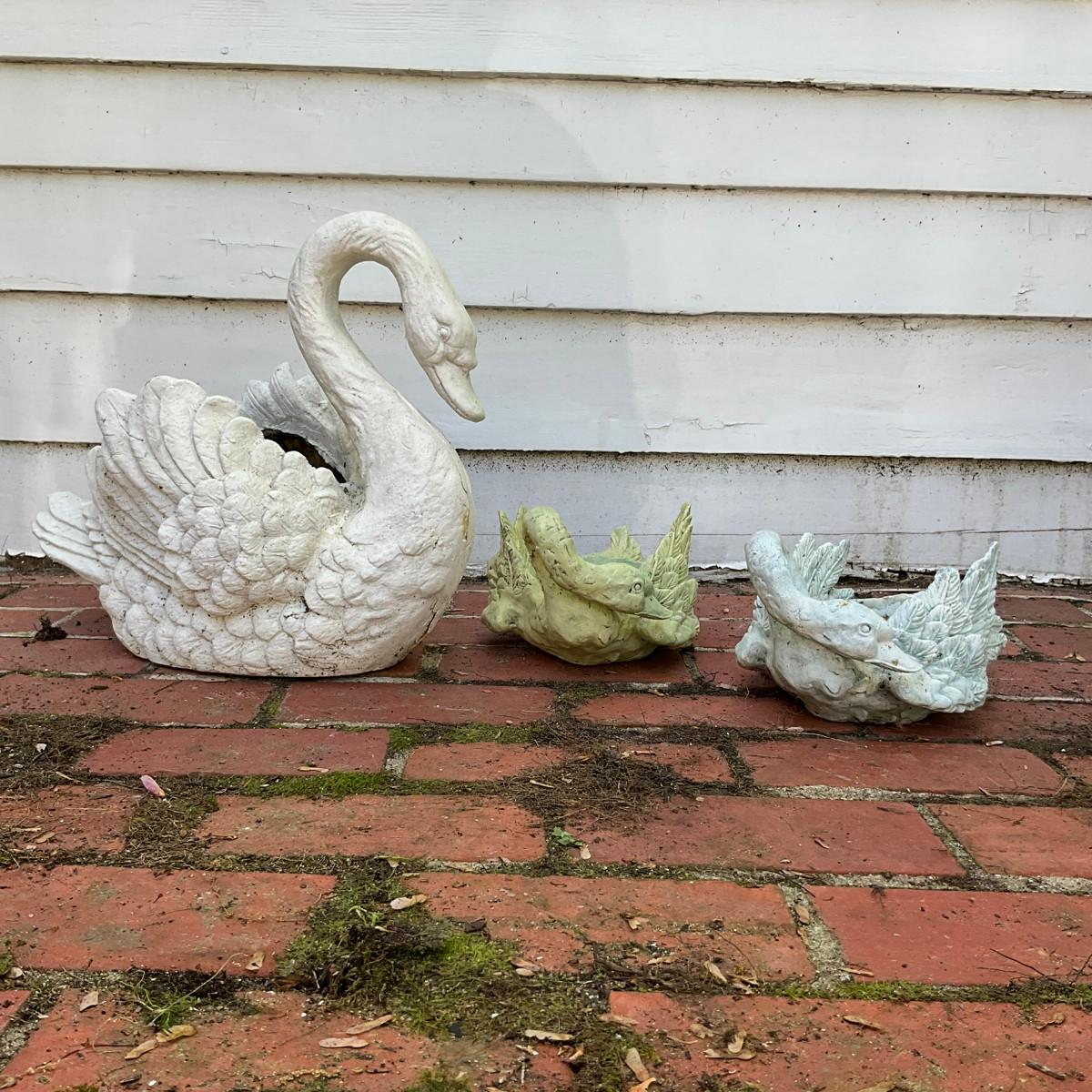 O584 Set of Three Swan Composite Garden Planter & Decor
