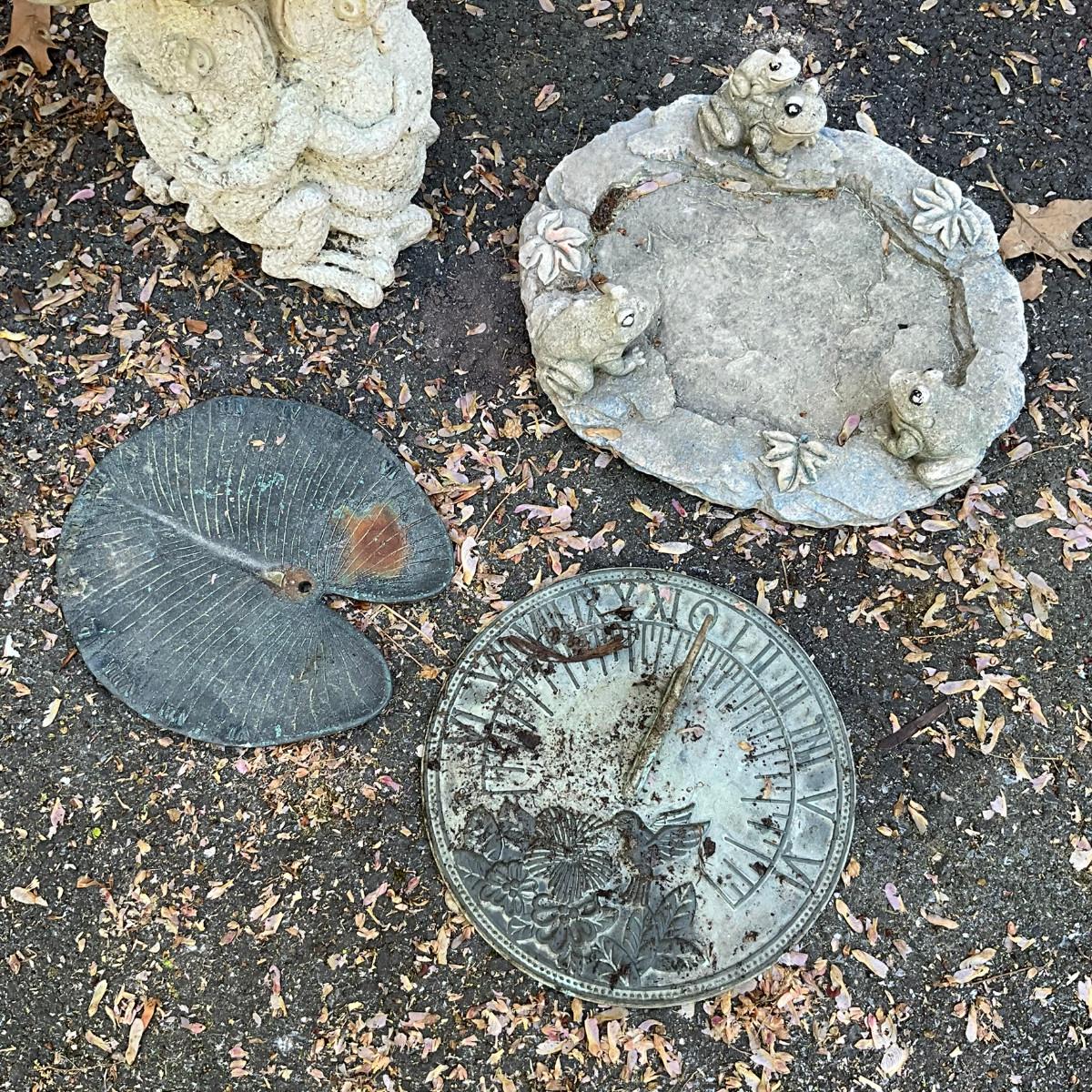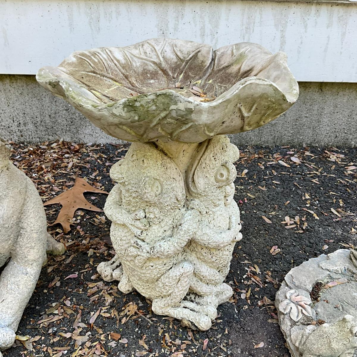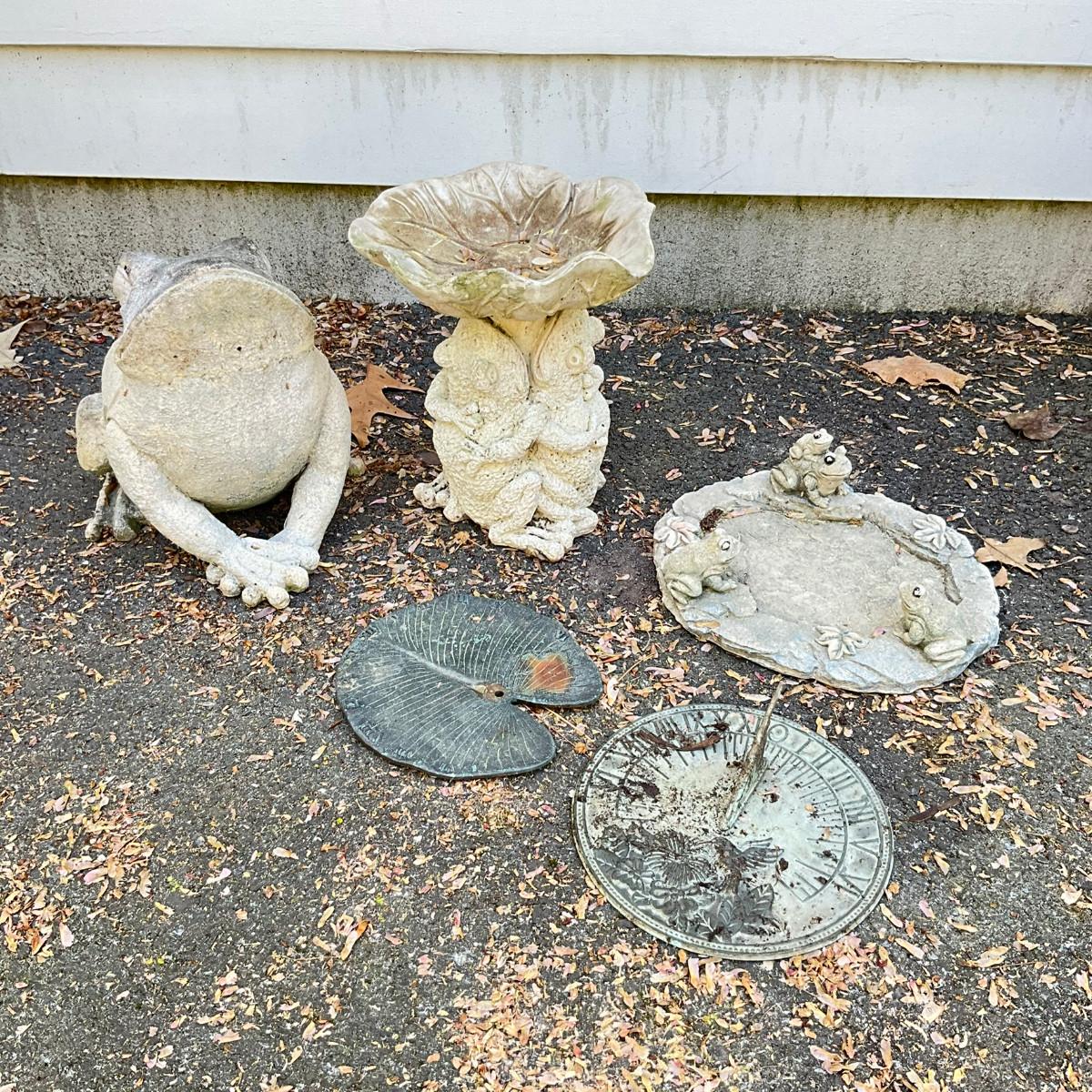 O595 Lot of Garden Frog Statue With Feeders & Bird Bath