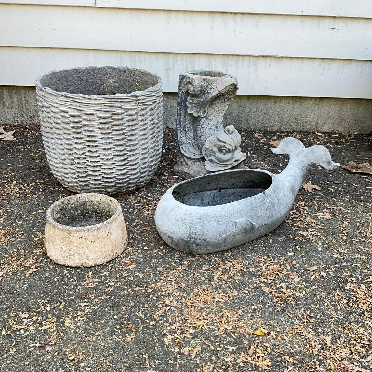 O597 Whale & Basket Weave Flower Pot With Dolphin Wall Fountain Lot