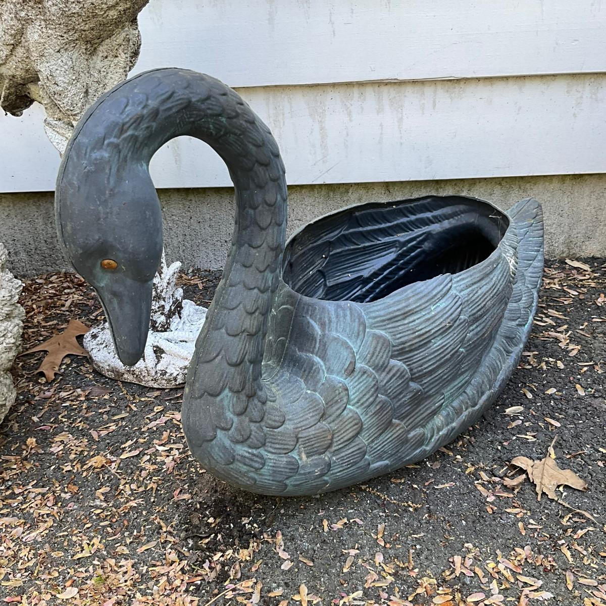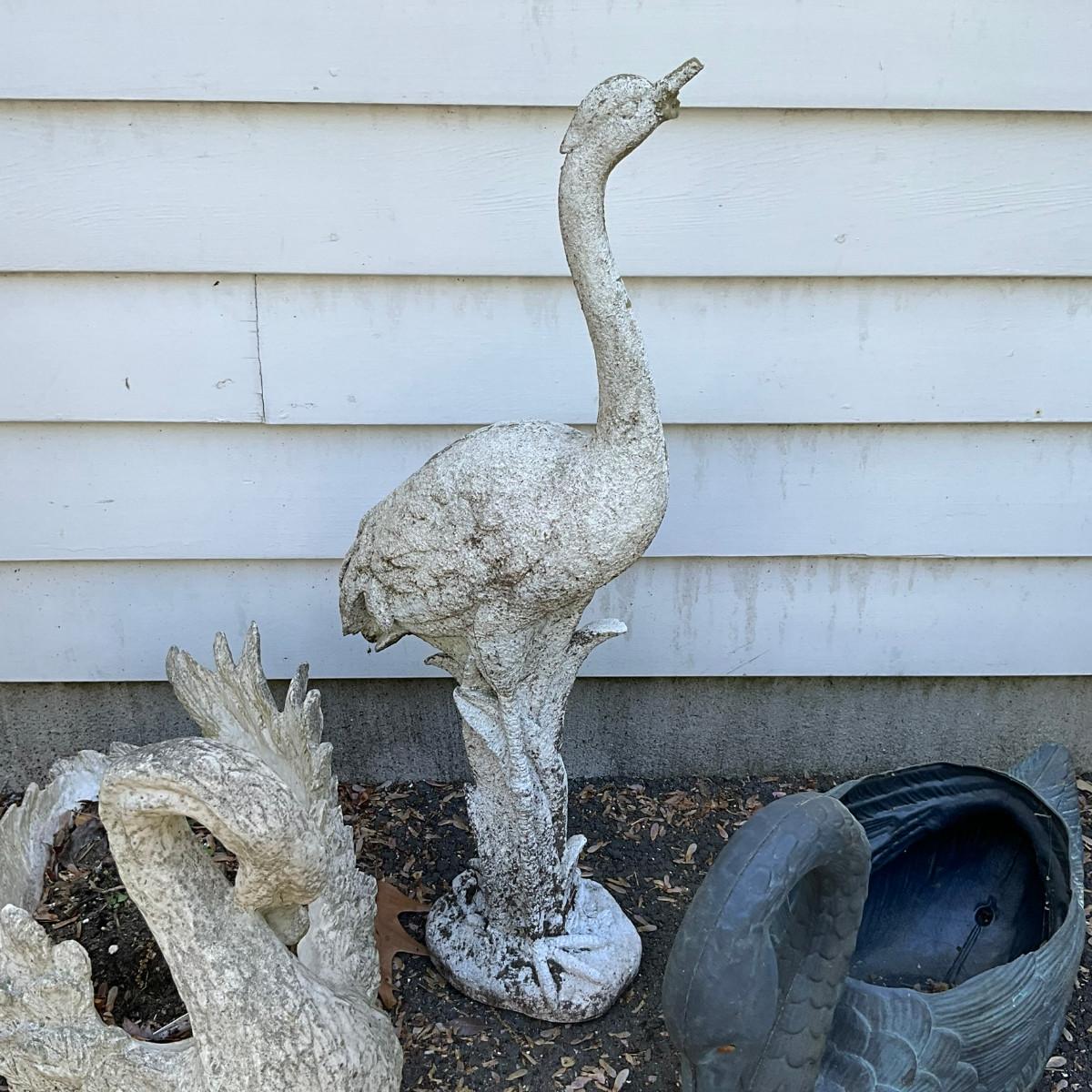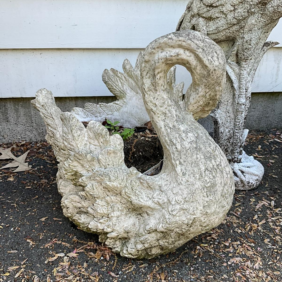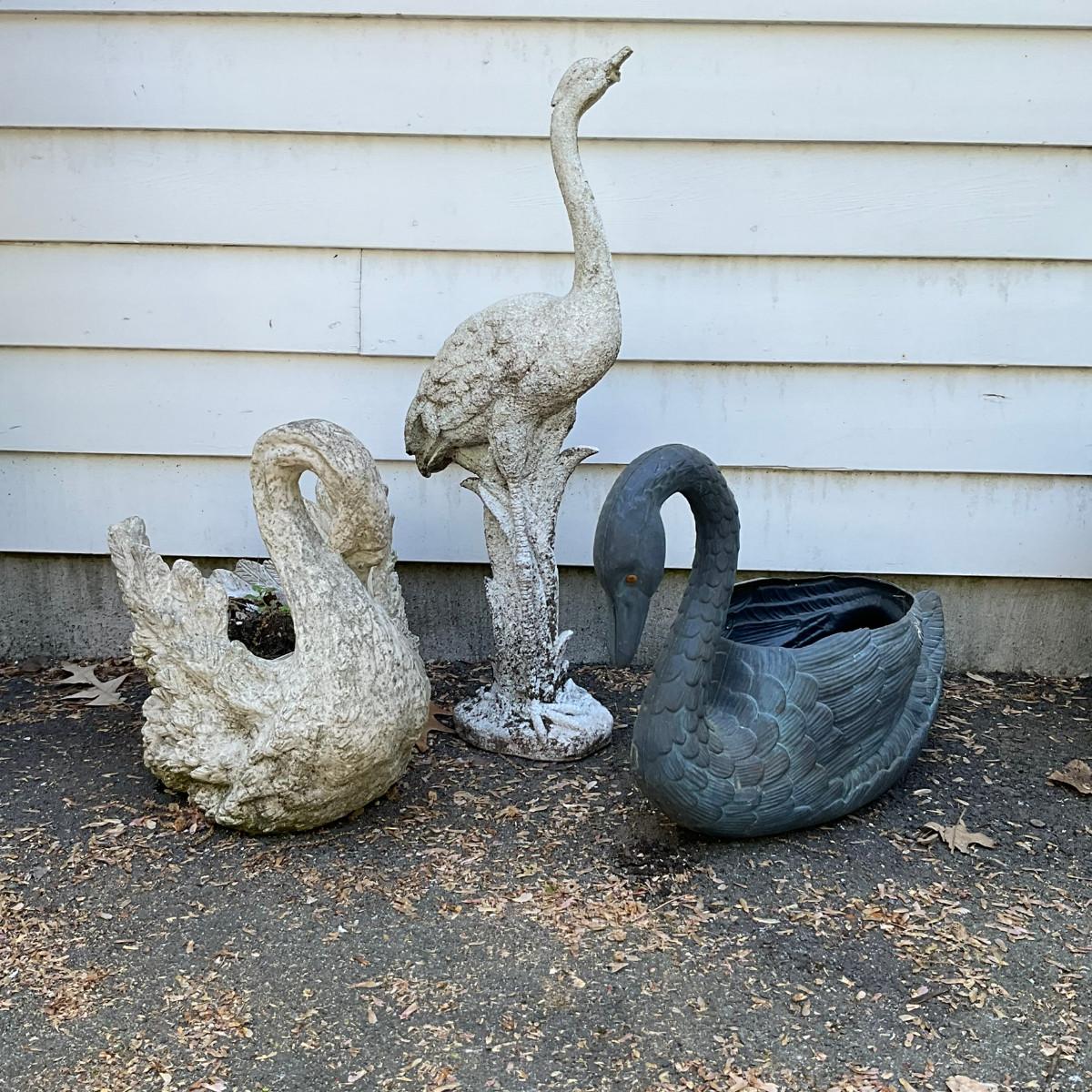 O599 Composite Swan and Heron With Plastic Swan Planters