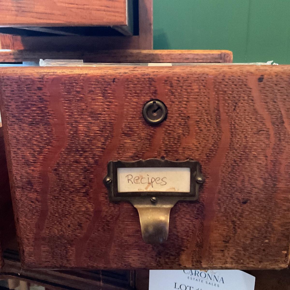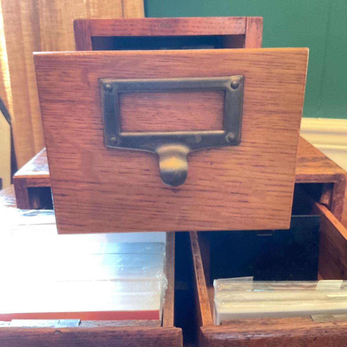 O6 Set of Three Vintage Oak Index Card Filing Drawers