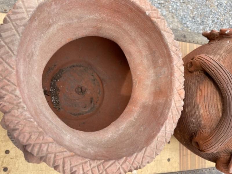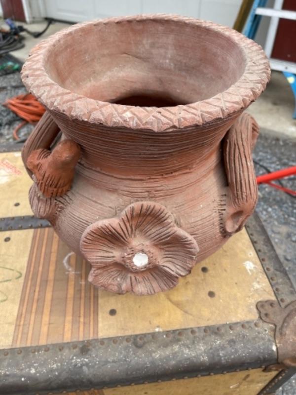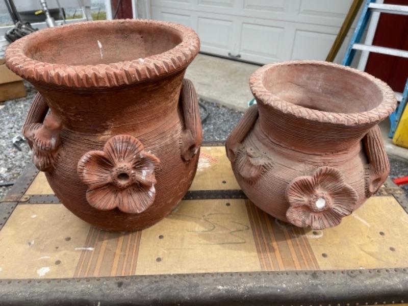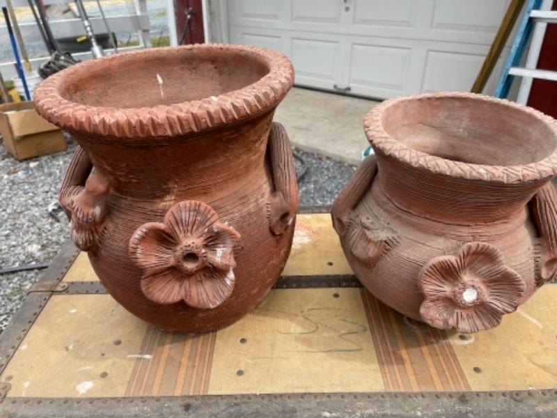 O610 Pair of Bird and Flower Terra Cotta Flower Pots