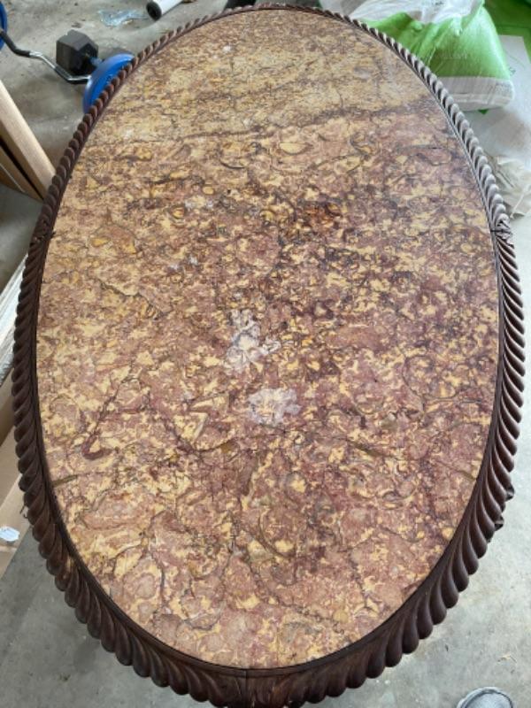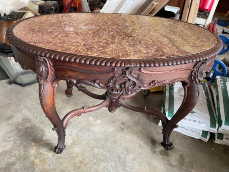 O630 Antique Victorian Marble top Table with Stretcher Base