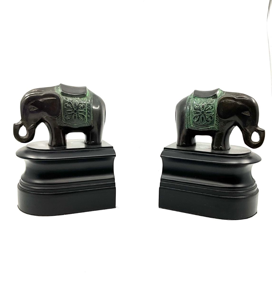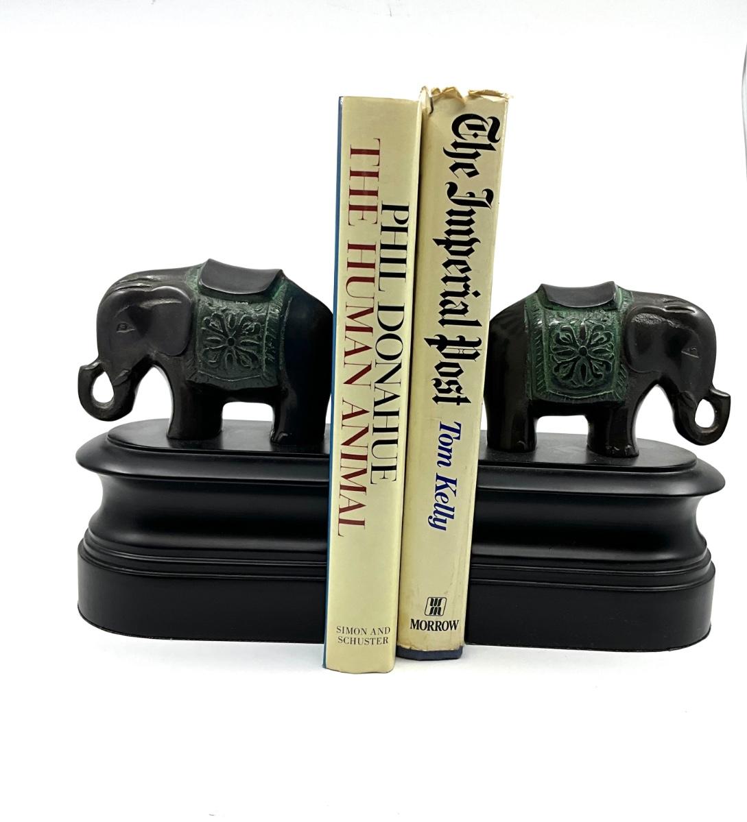 O630 Pair of Bronze and Wood Elephant Book Ends