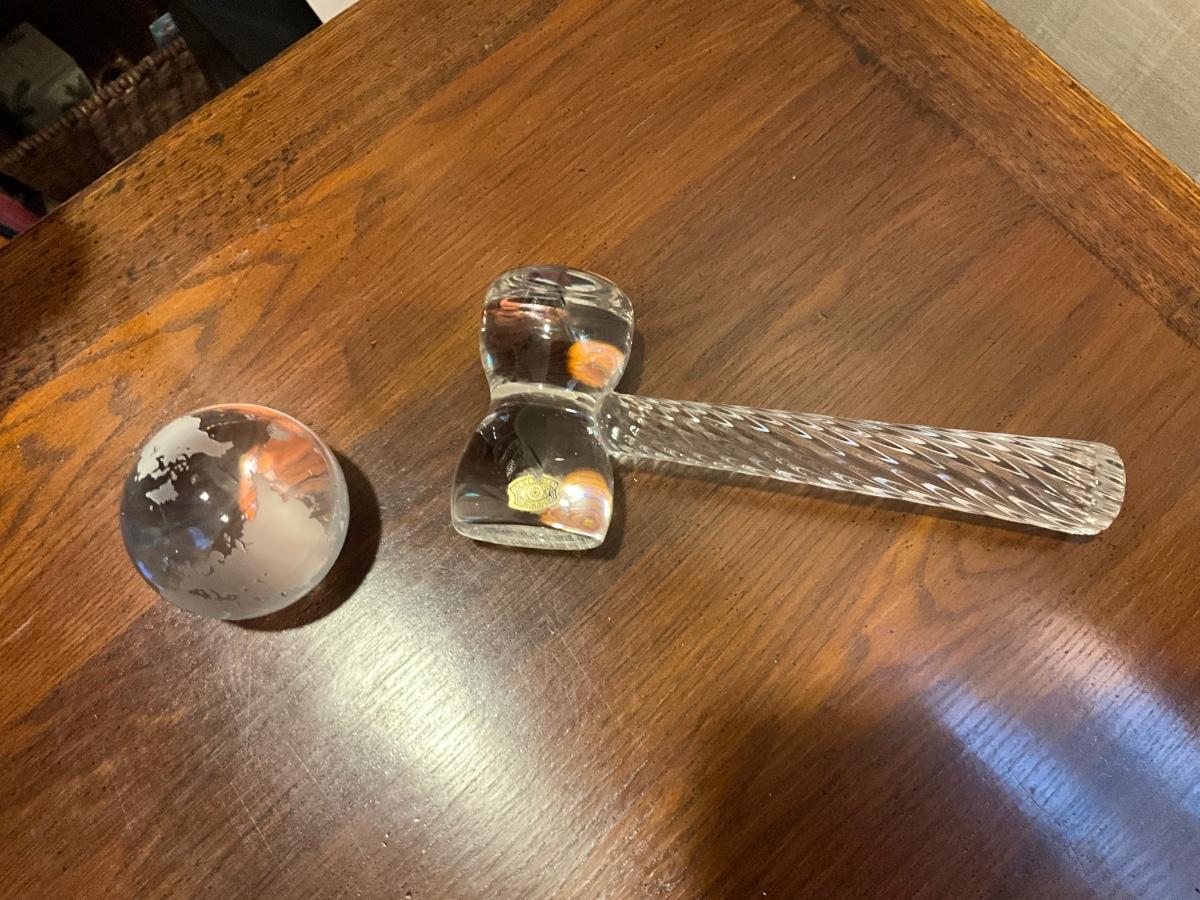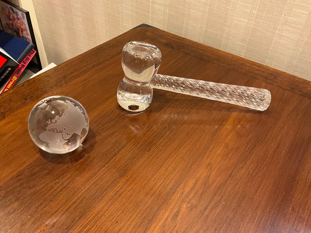 O631 Val St. Lambert Crystal Gavel with Crystal World Globe