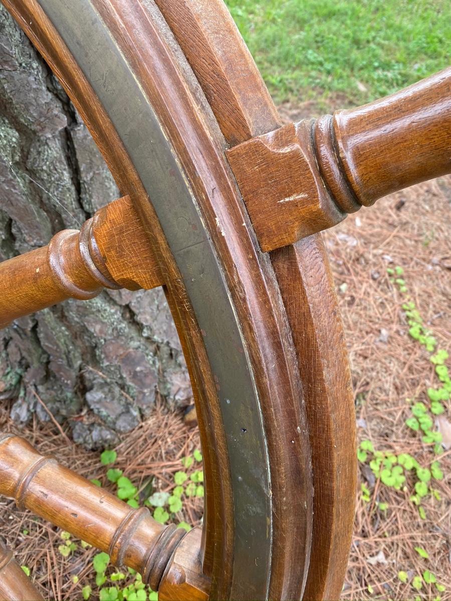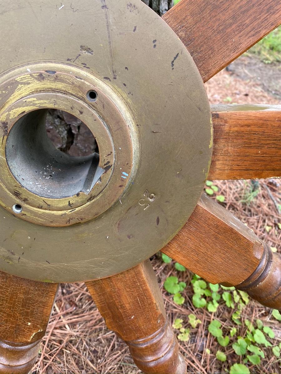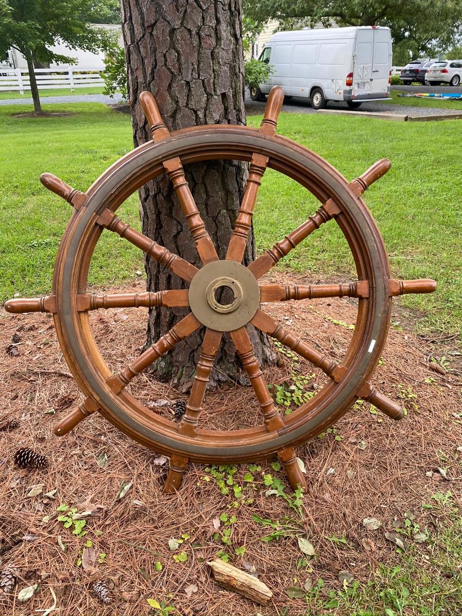 O636 Vintage Large 5’ Round Wood & Brass Ships Wheel
