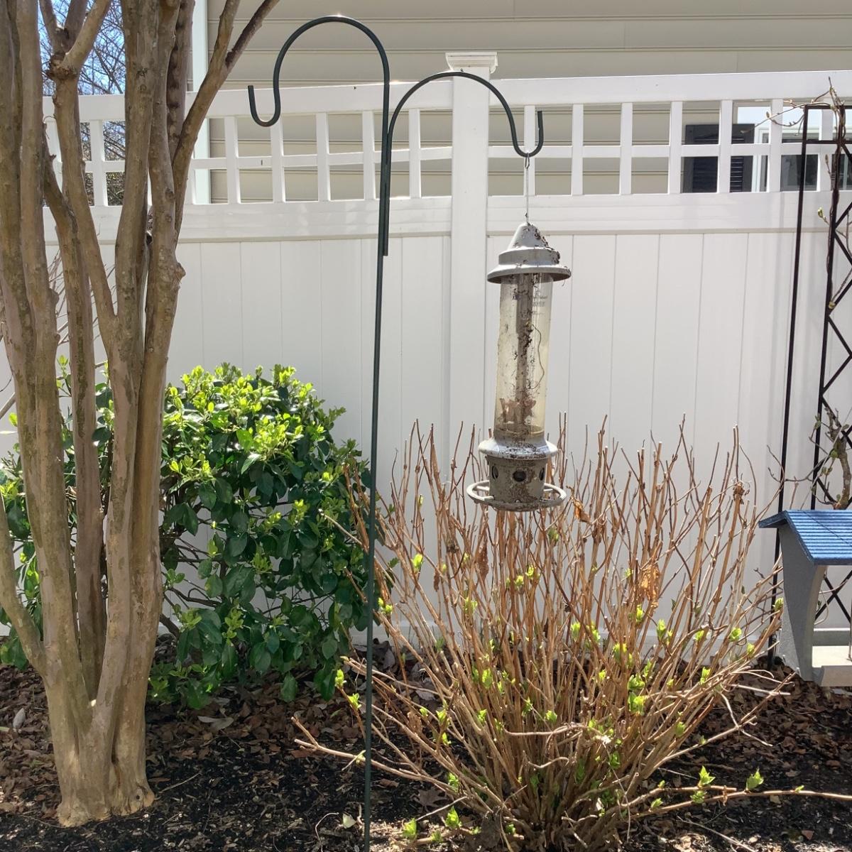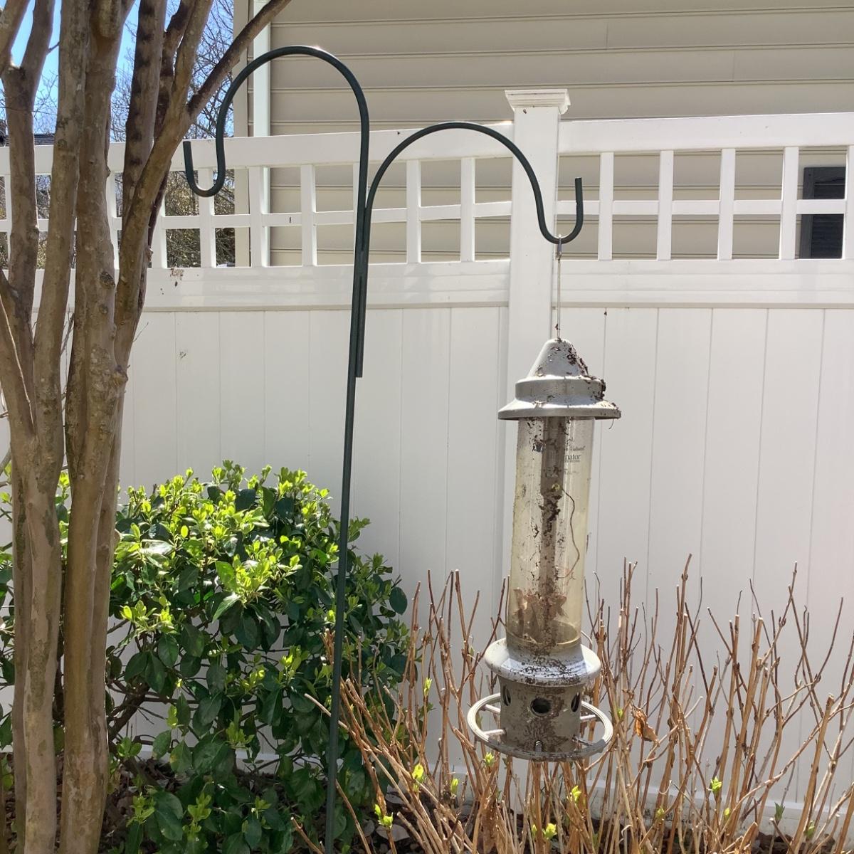 O676 Large Green Double Shepard’s Hook with Bird Feeder