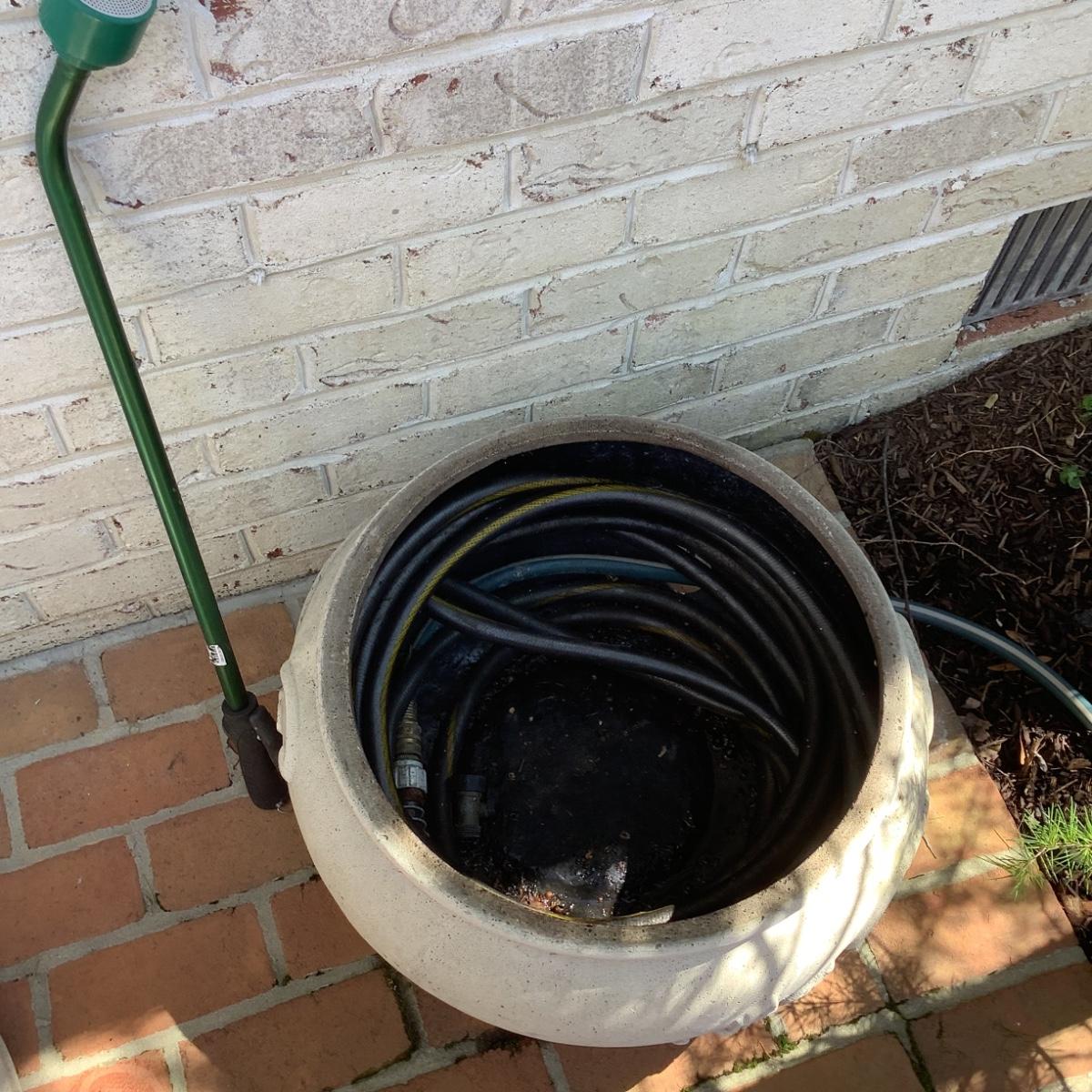 O685 FRONTGATE Acanthus Leaf Hose Pot with Hose