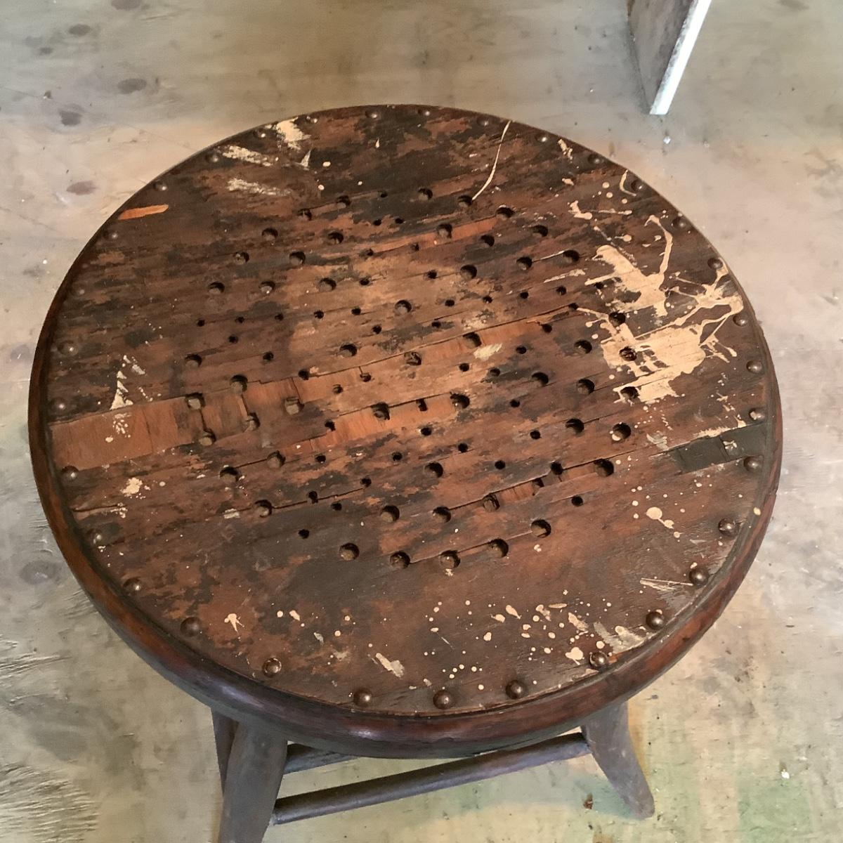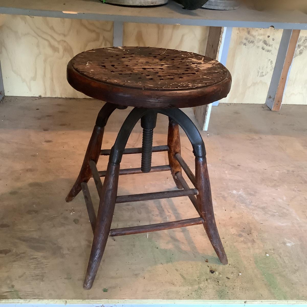G754 Antique Swivel Metal and Oak Adjustable Stool
