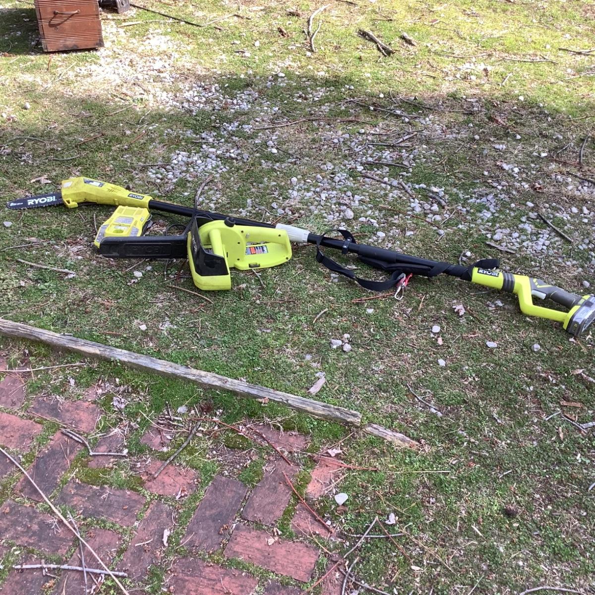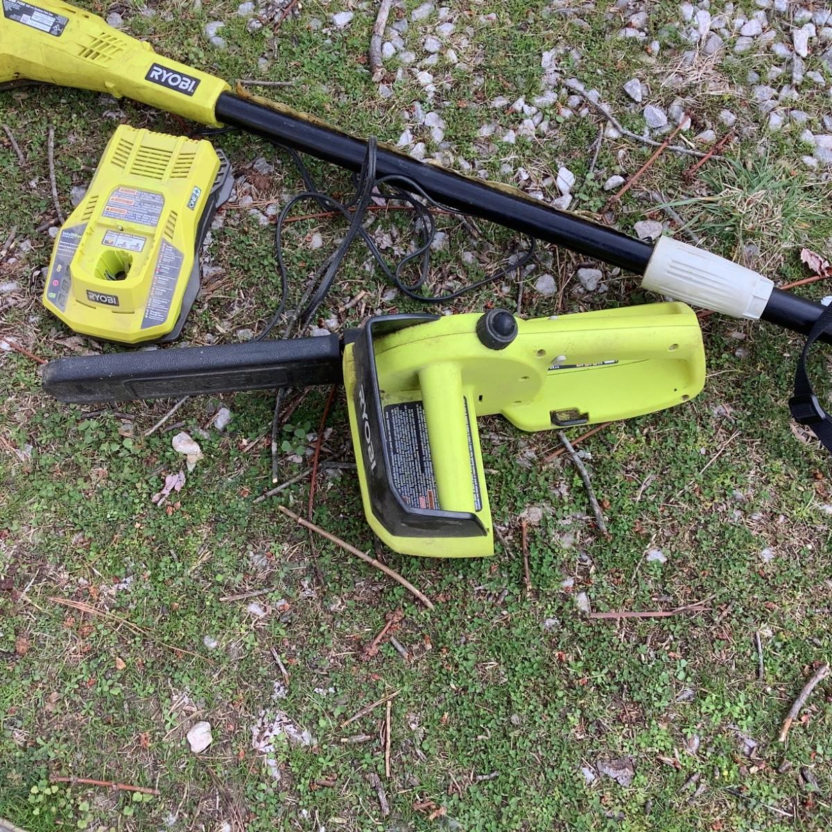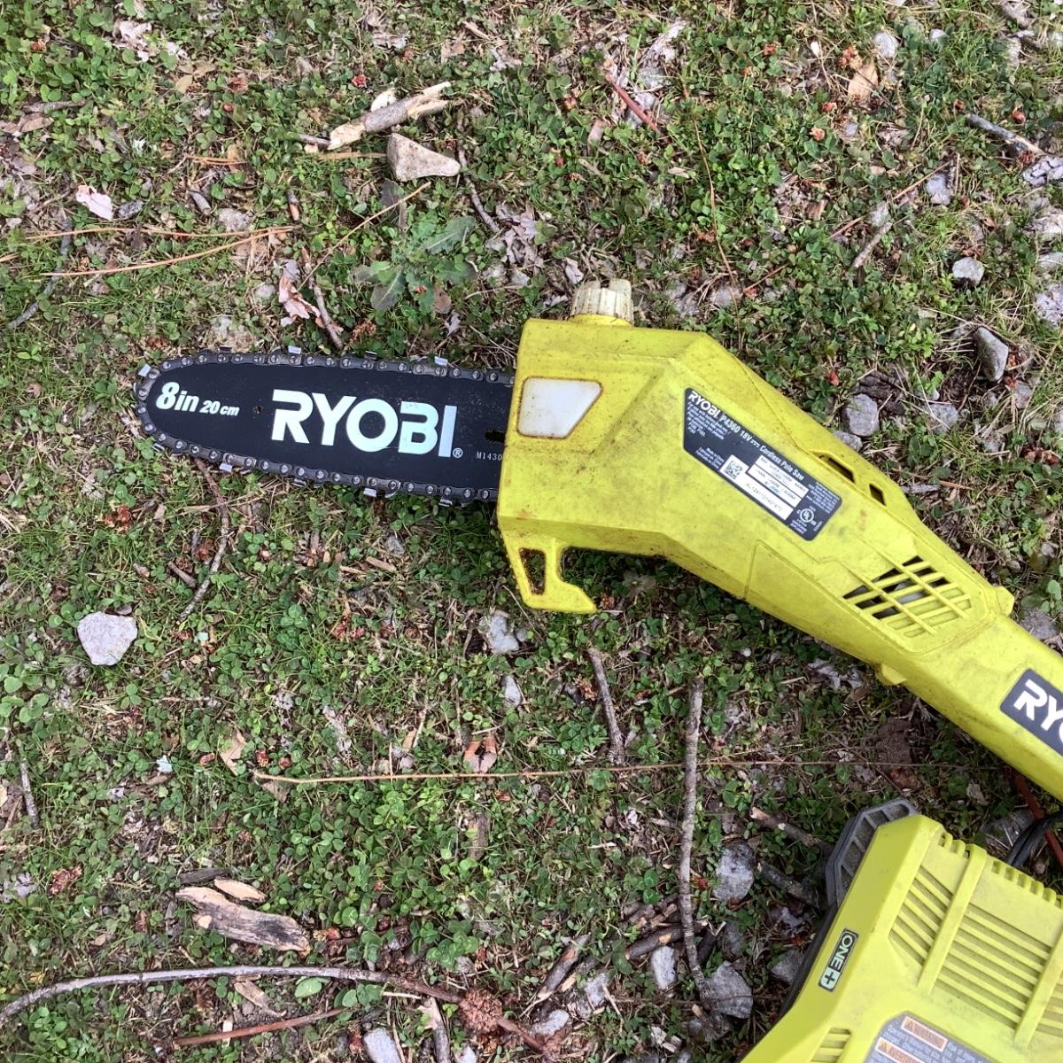 W760 RYOBI Cordles Pole Saw & Chain Saw with Charger and One Lithium Battery