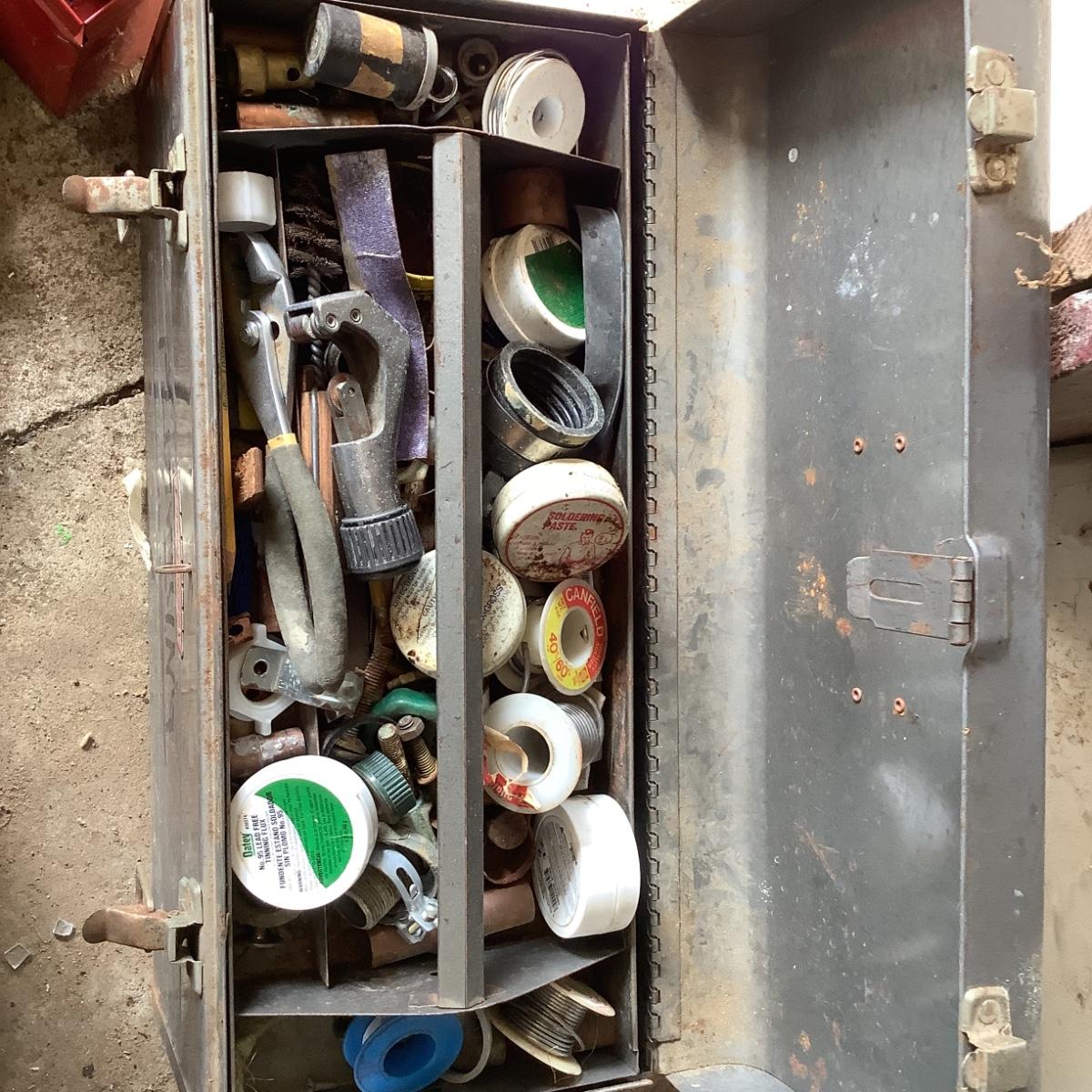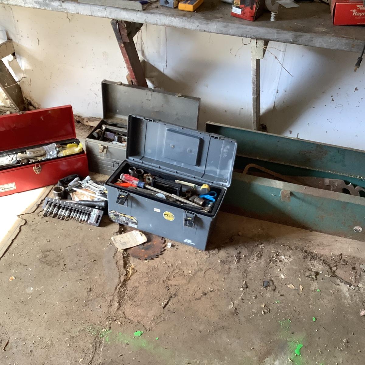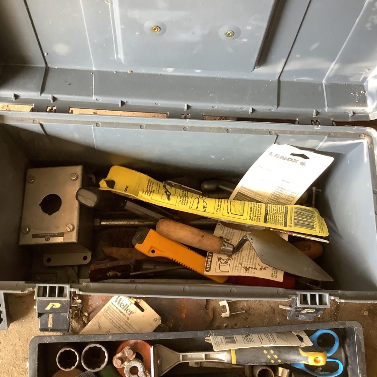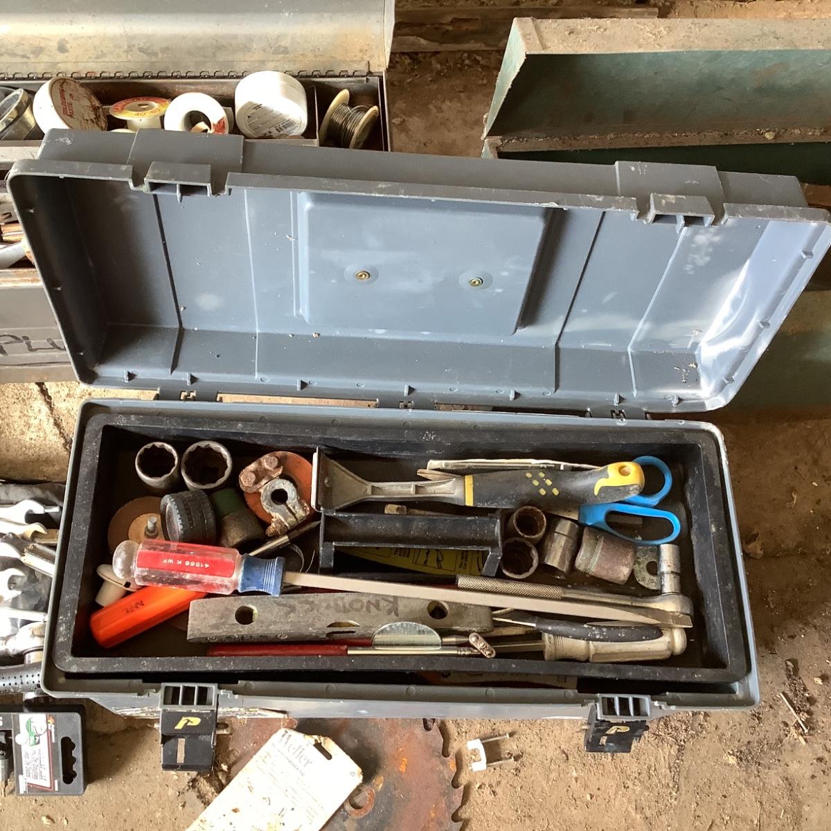 O766 Large Lot of Metal and Plastic Tool Boxes with Tools