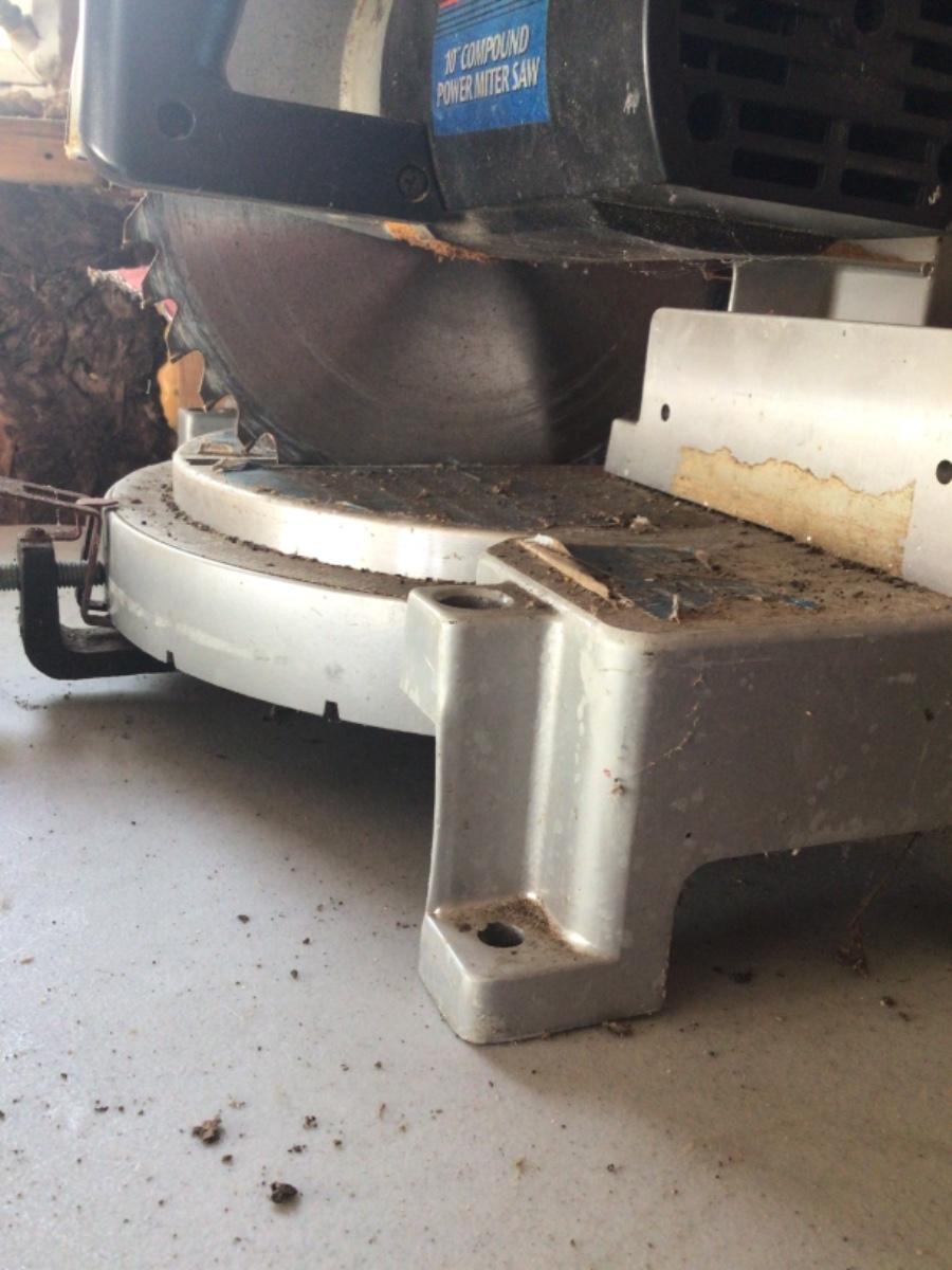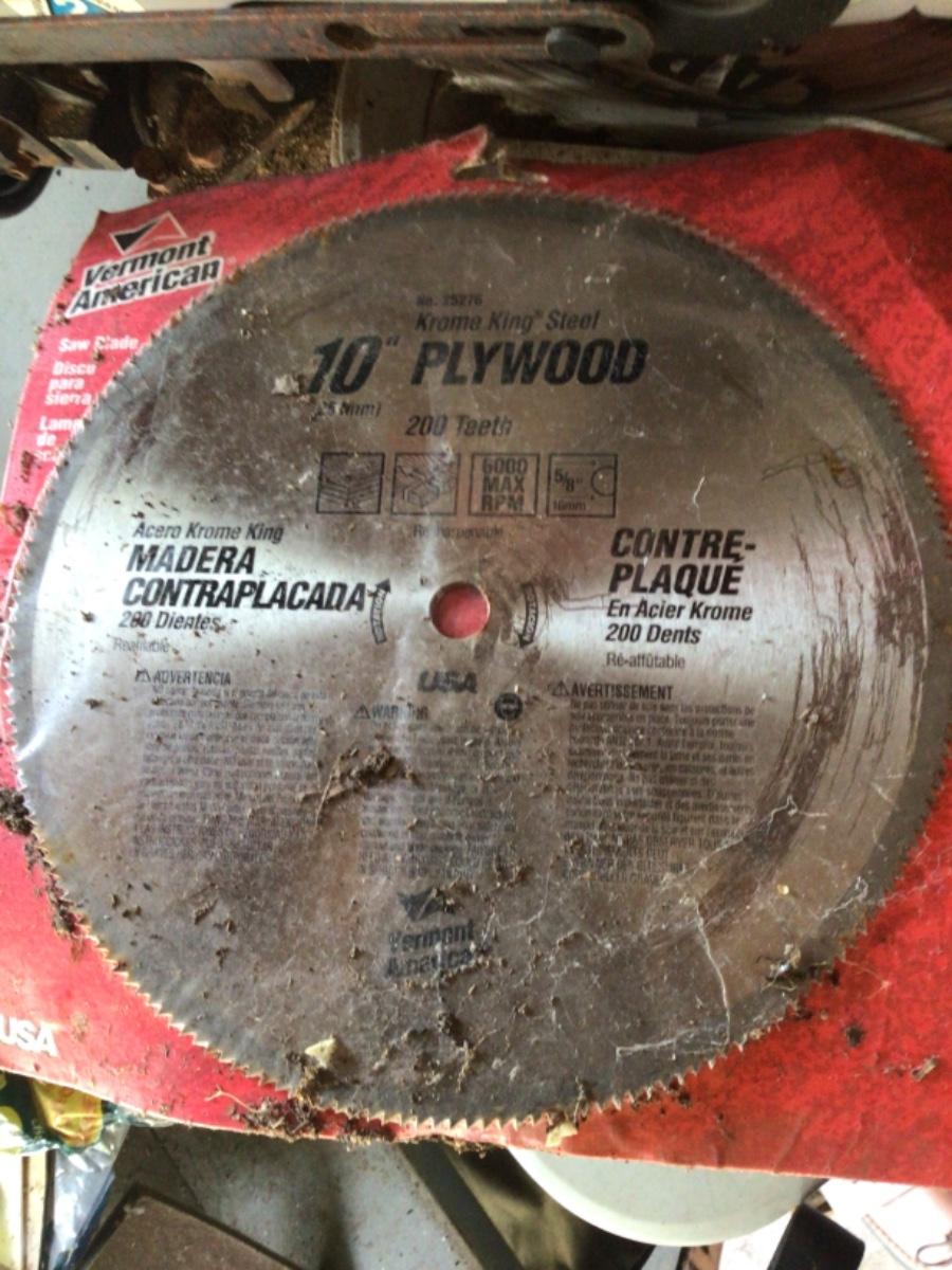 10 inch compound power miter saw. Comes with Vermont American 10 inch chrome king steel 200 teeth plywood saw blade.
