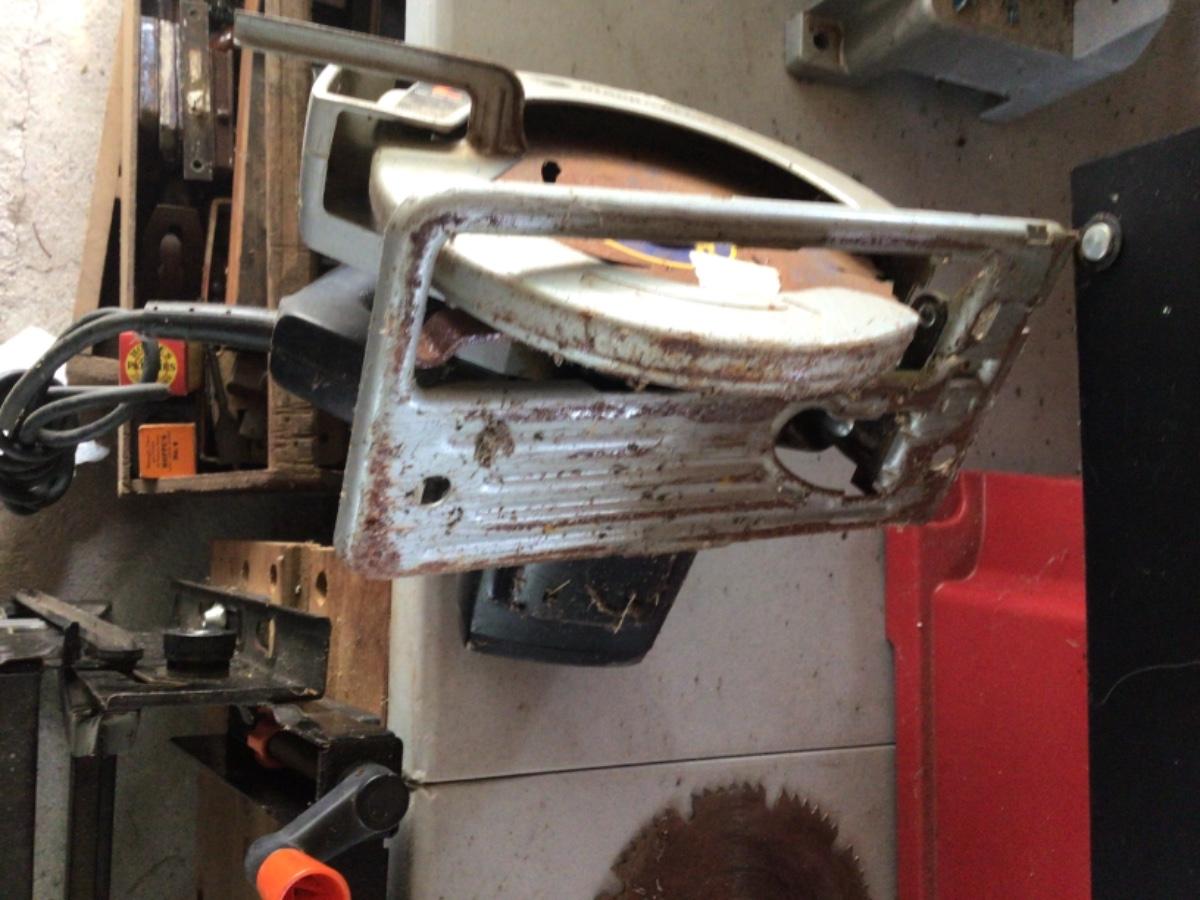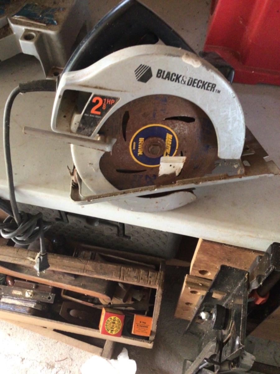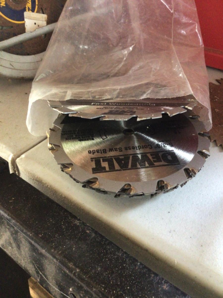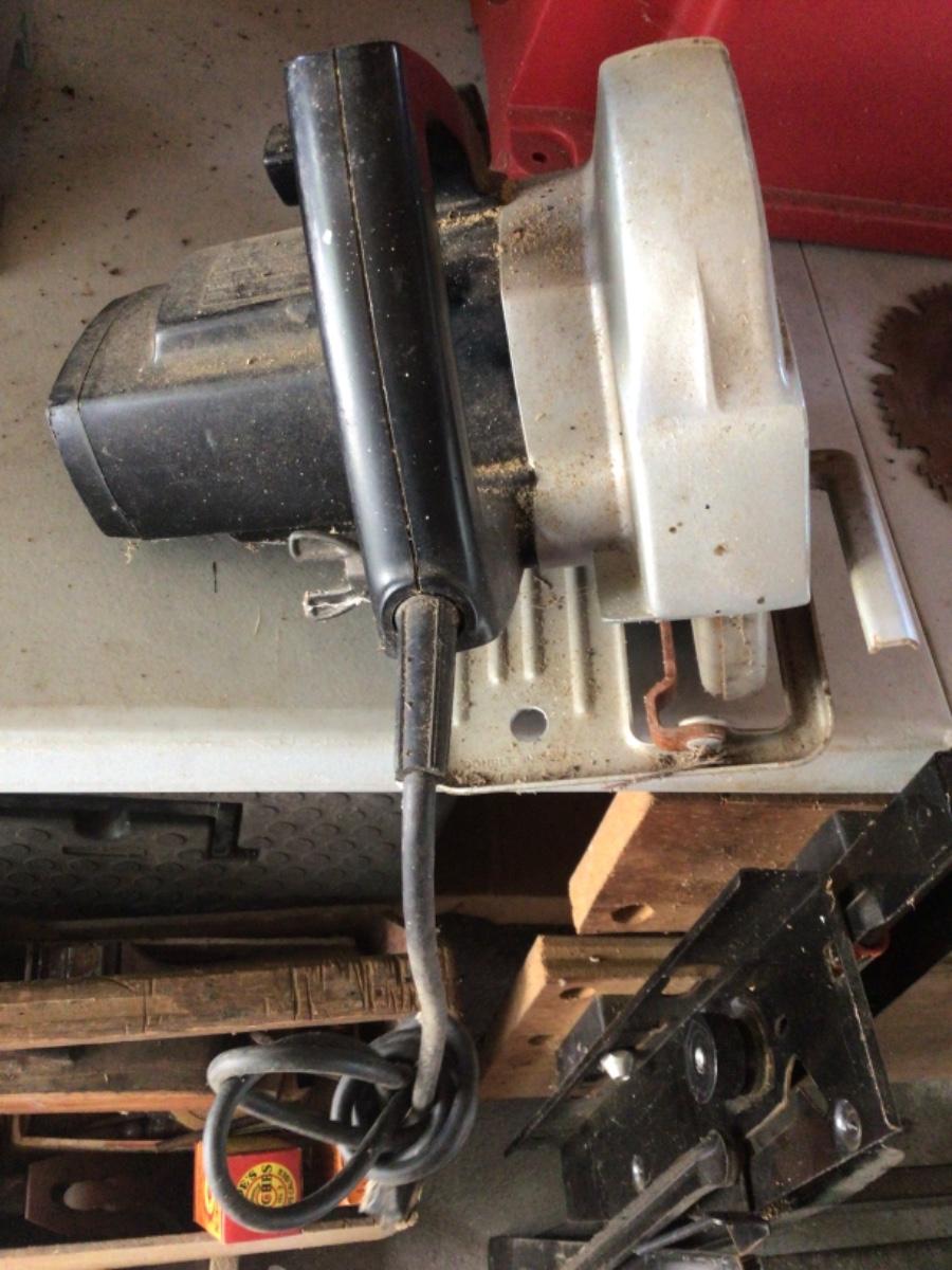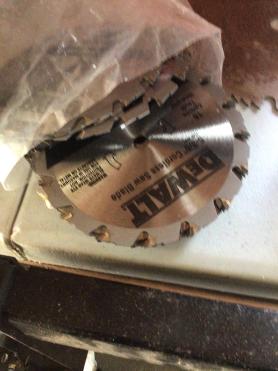 Small compact 7 1/4 inch Plywood saw is in working condition small pack of 5 3/8 DeWalt saw blades, Extra 7 1/4 inch sawblade.