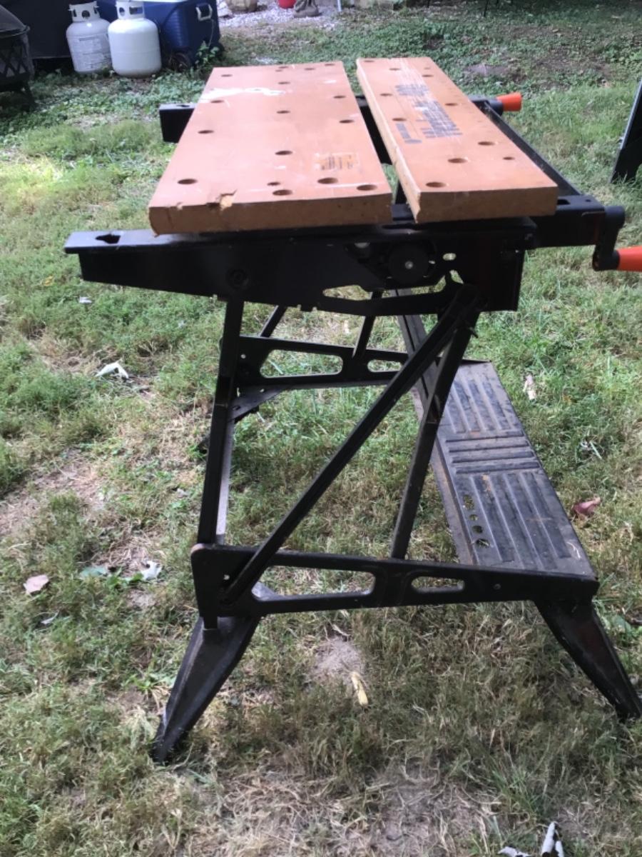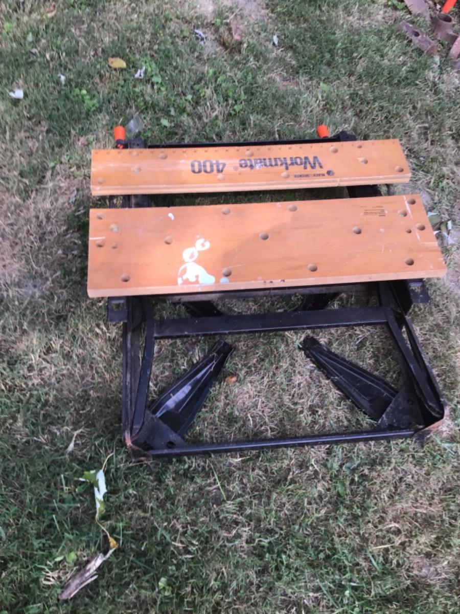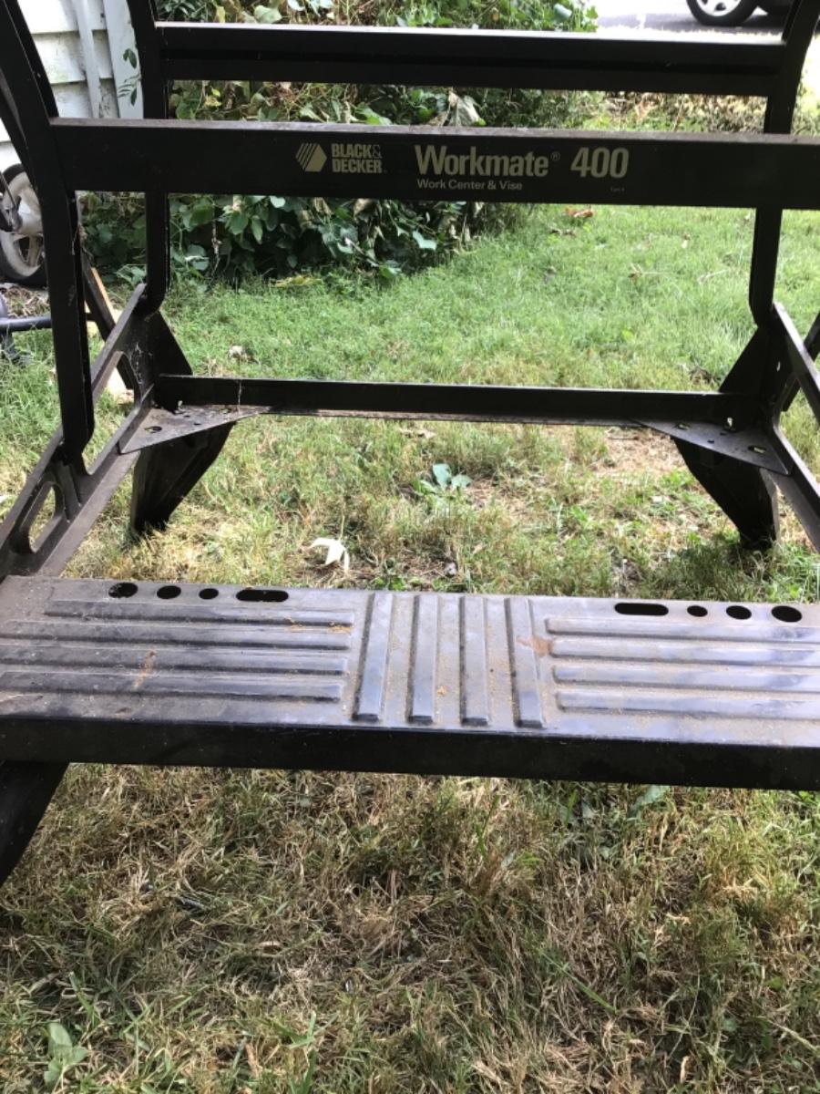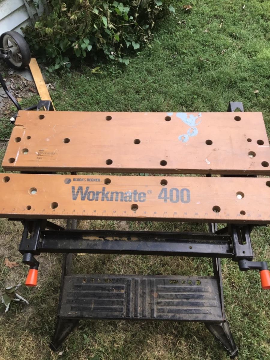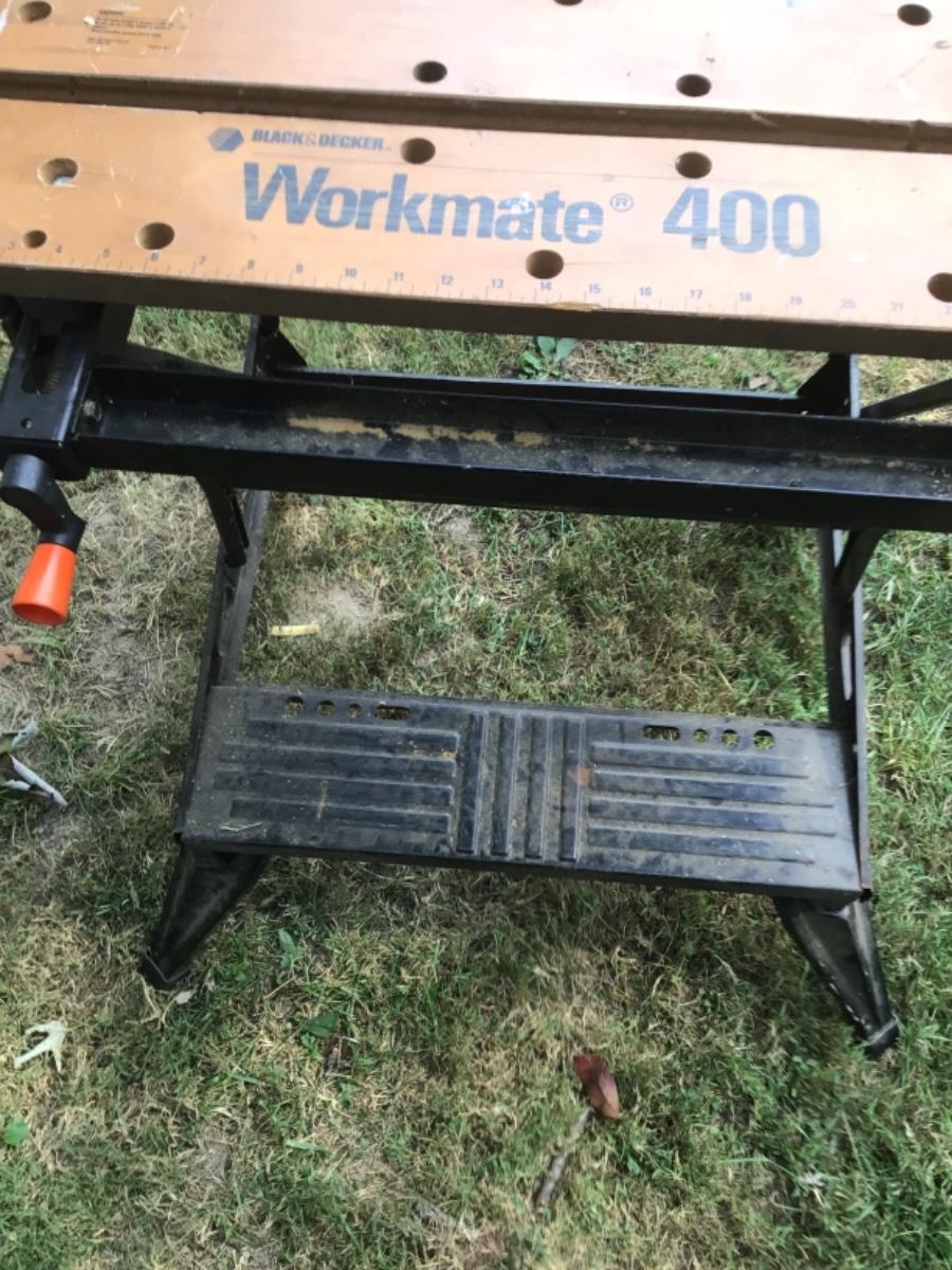 Fully functional workmate 400 work table. Adjustable two front knobs for extending and retracting part of the table. Can collapse for easy storage.