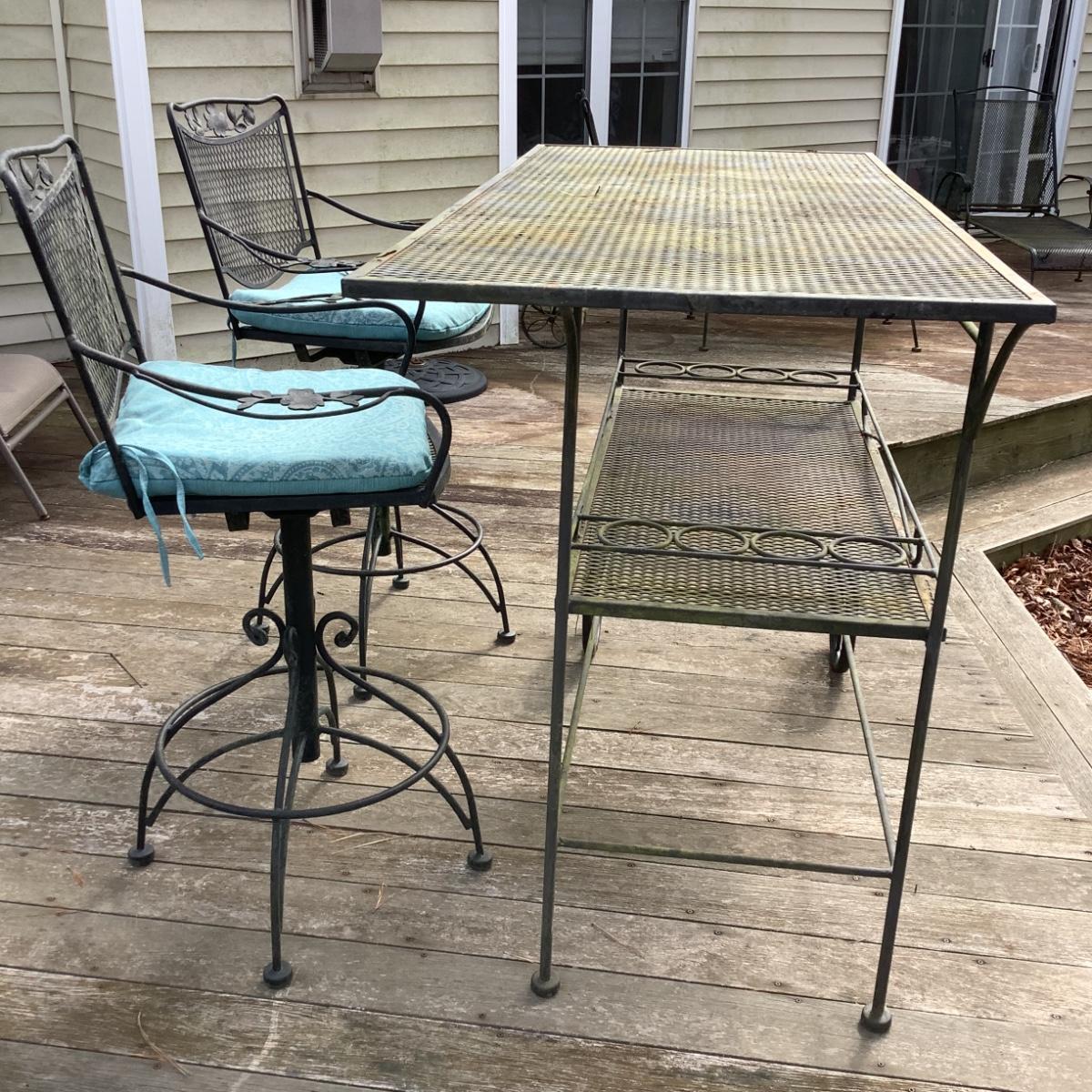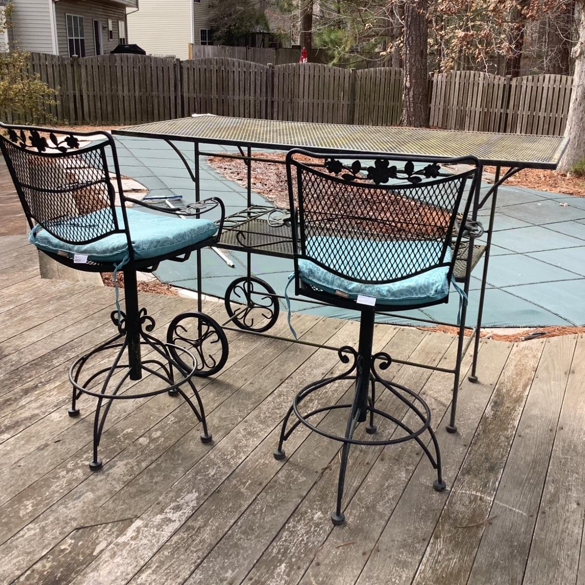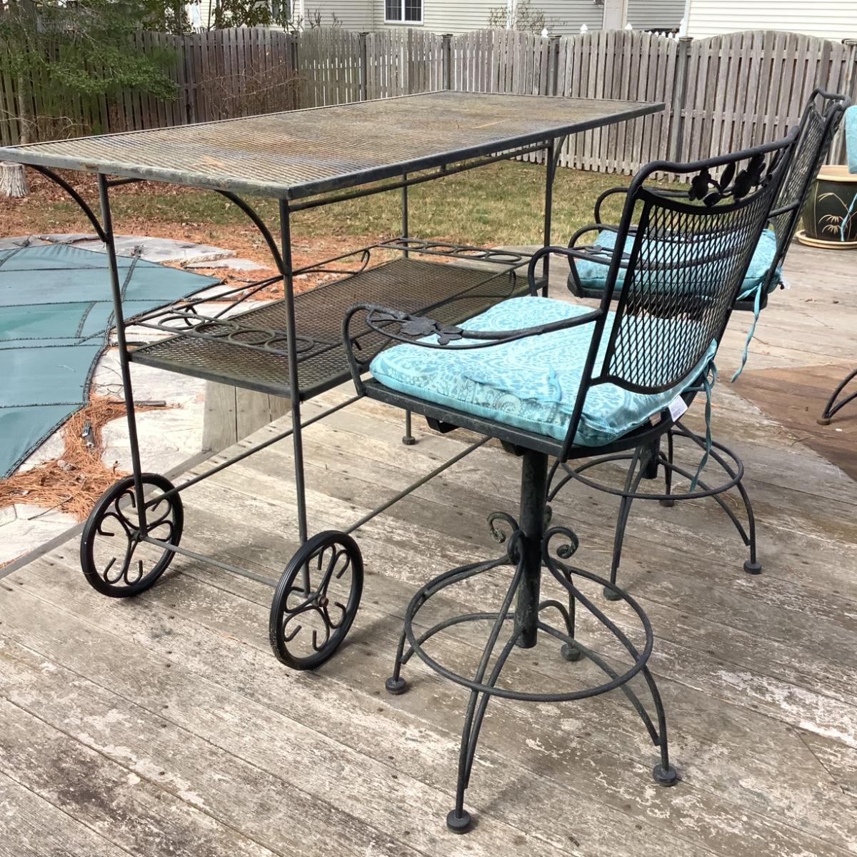 O8063 Outdoor Wrought-Iron Wine Caddy with 2 Matching Decorative Chairs