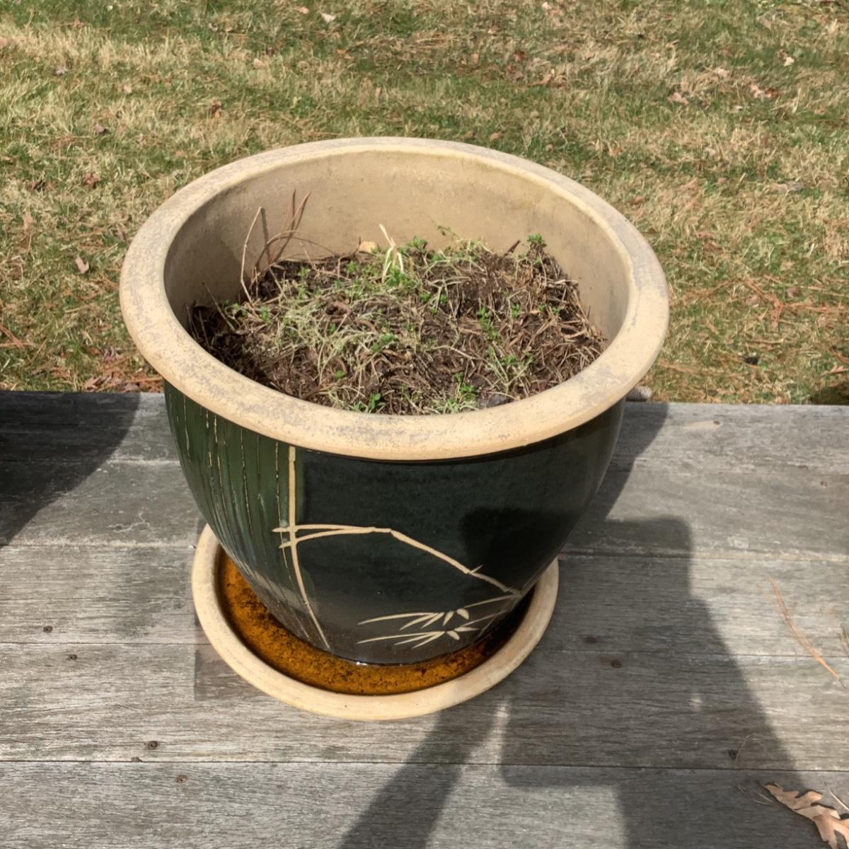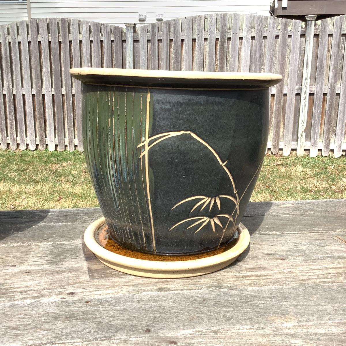 O8065 Large Terracotta Planter with Bamboo Design