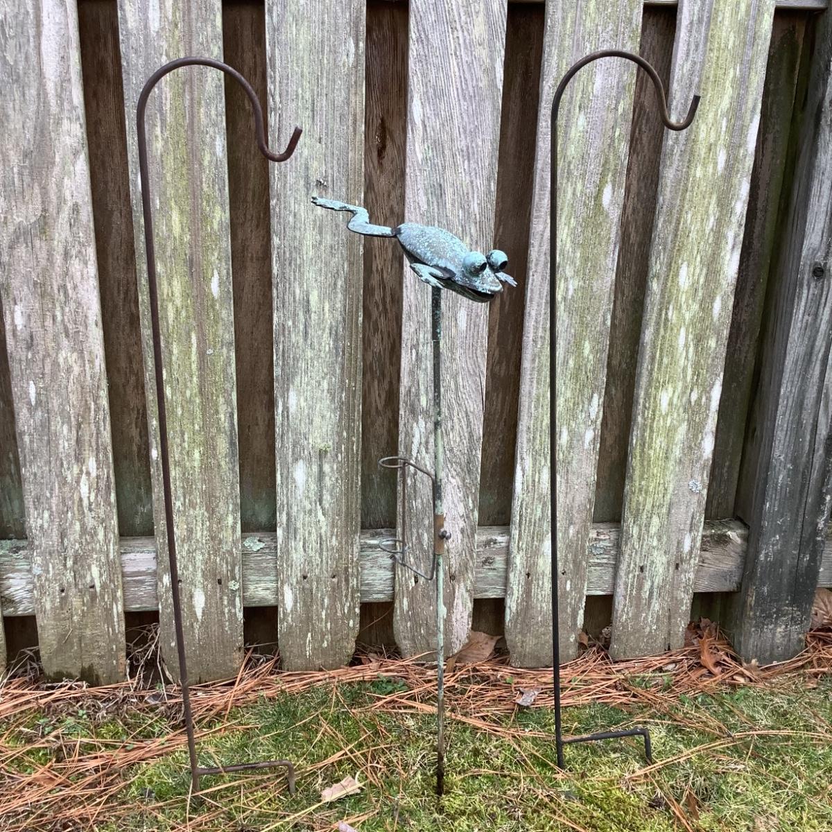O8069 Rain Gauge Frog & Pair of Black Shepard Hooks