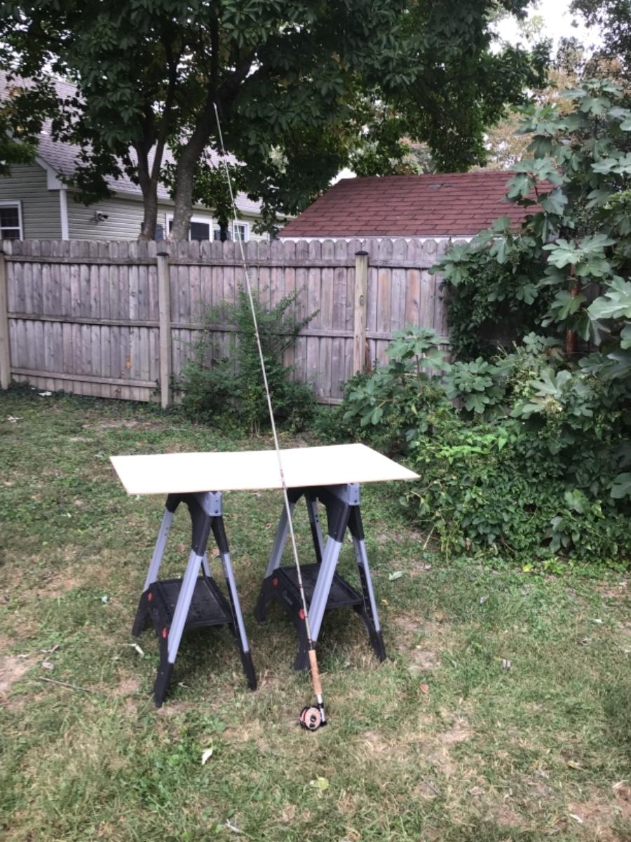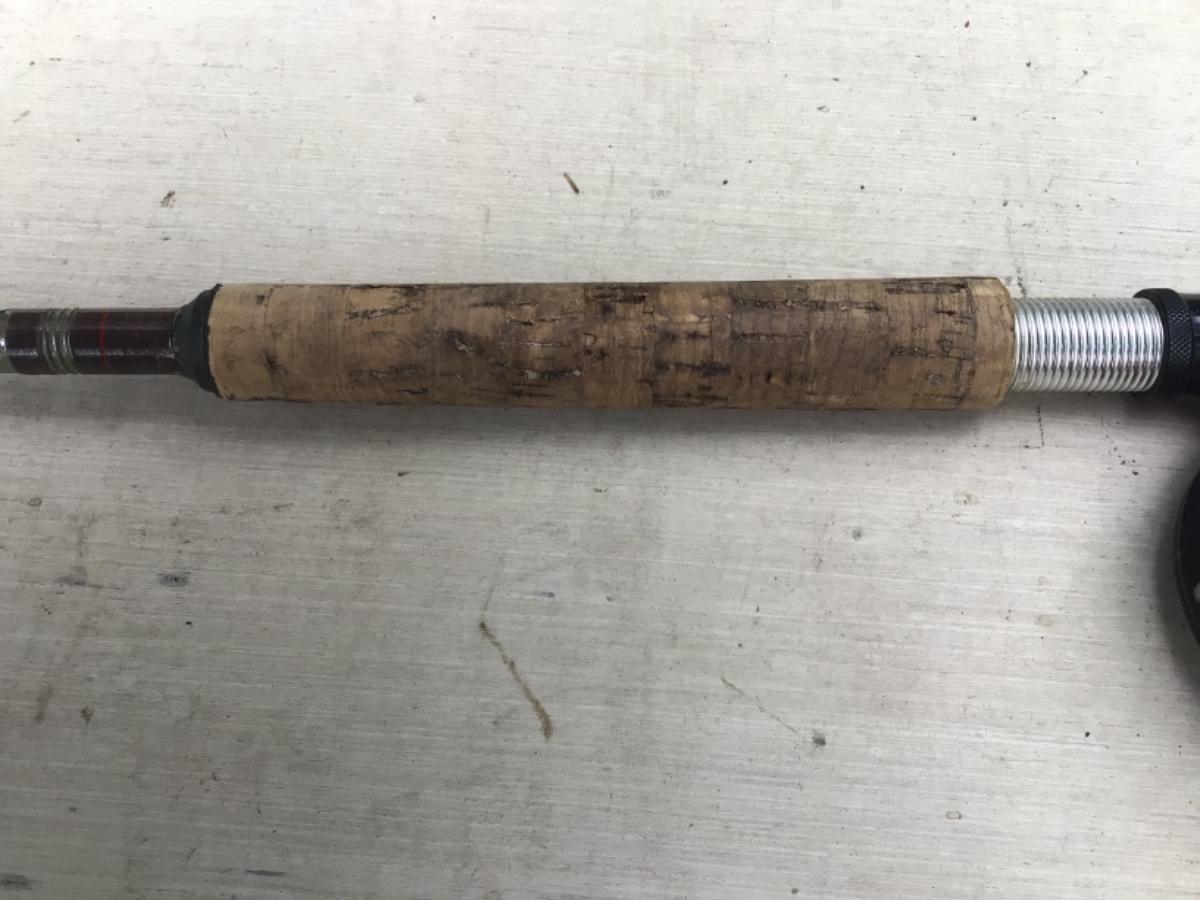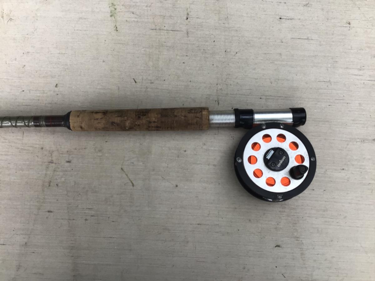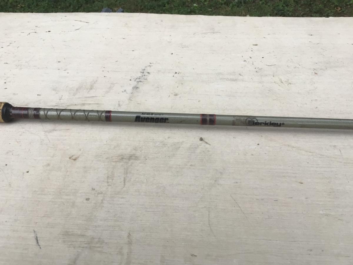 Berkeley avenger AC 40““8 Fly fishing rod. Rod length 8 foot. Fishing reel has orange fish wire.