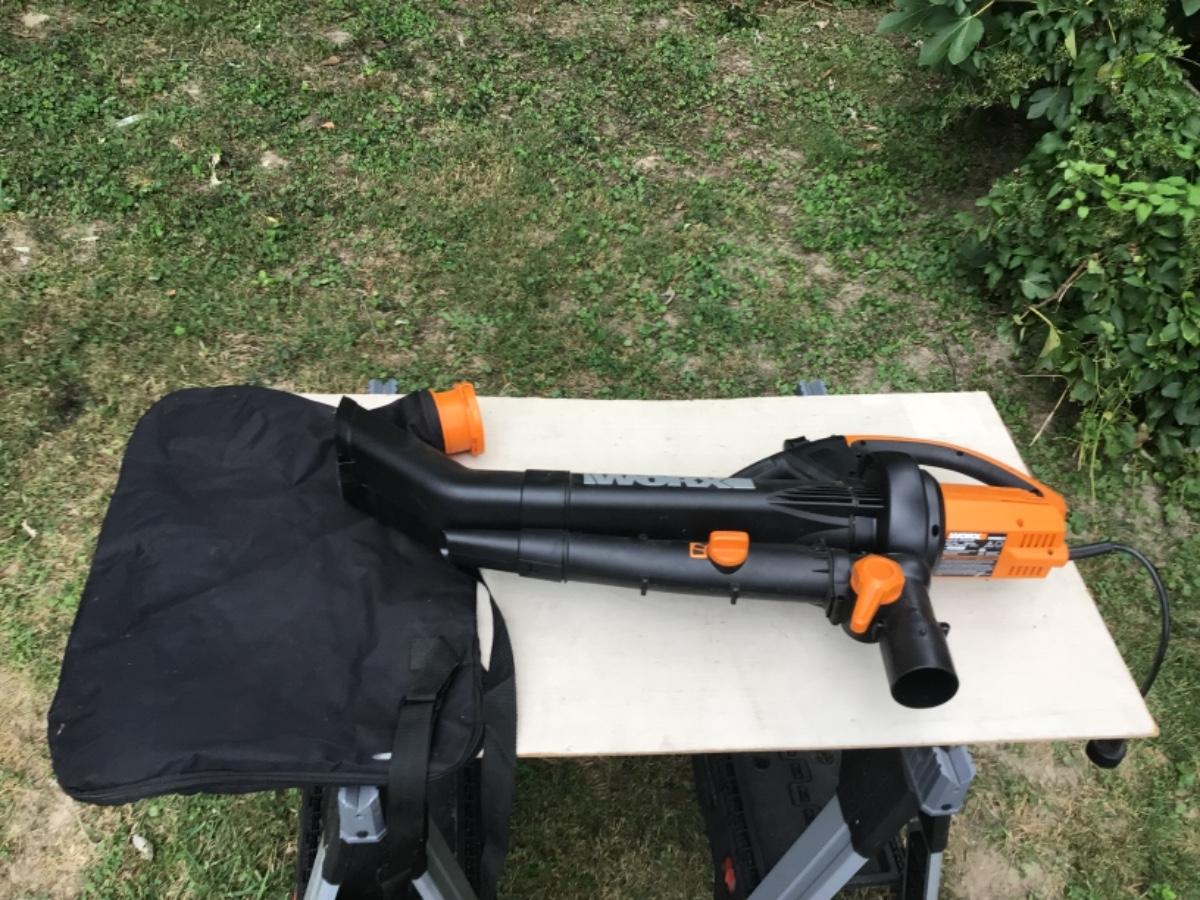 One work vacuum and leaf blower in working condition. Comes with leaf bag attachment. Needs to be plugged in with electrical extension cord.