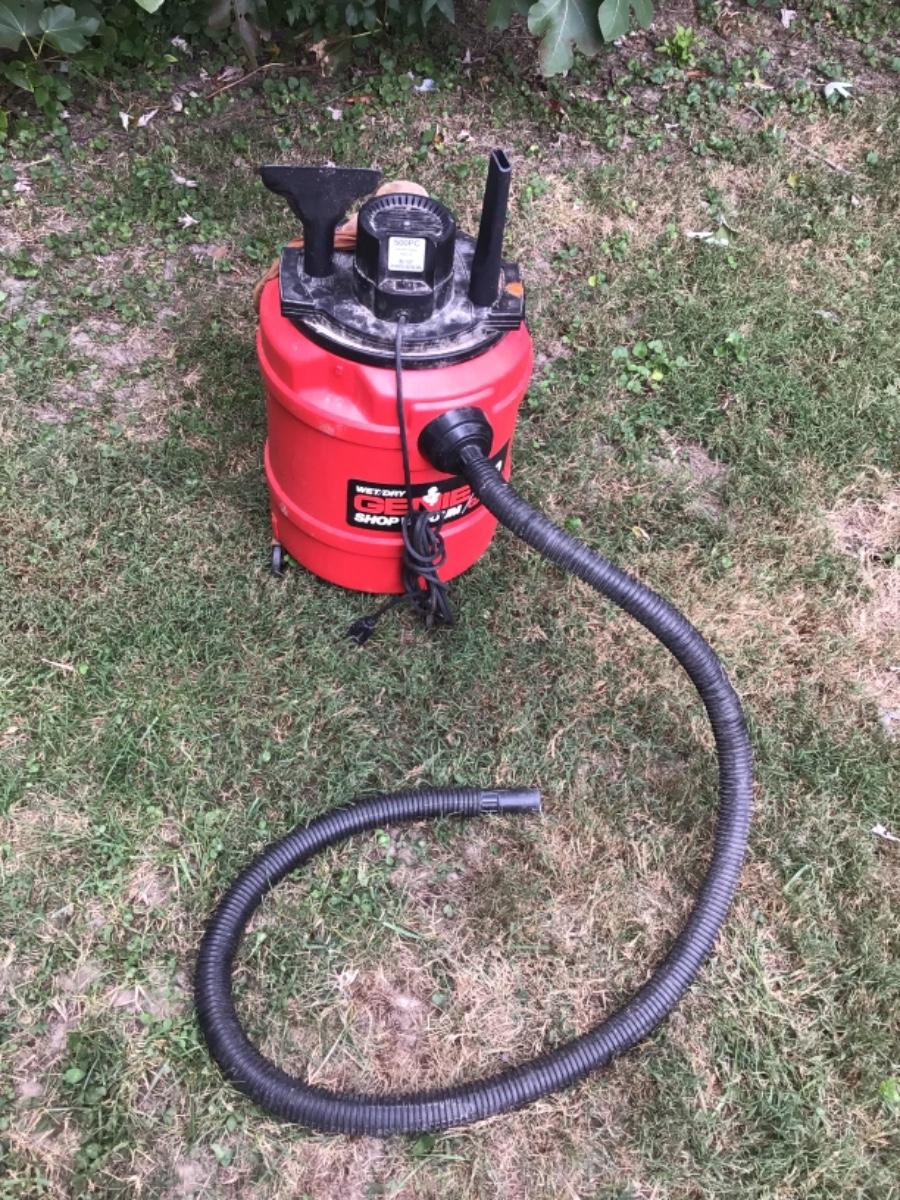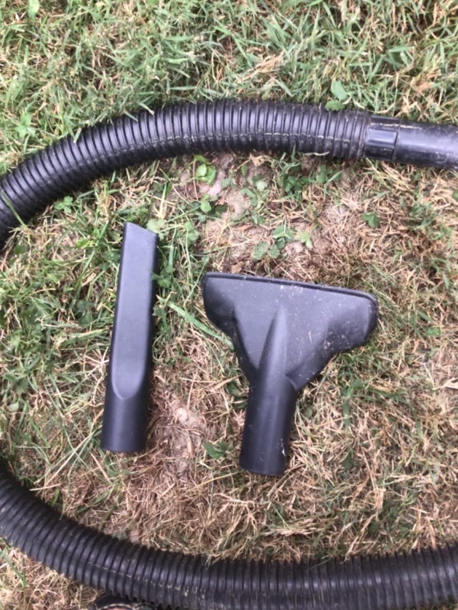 Genie shop vacuum 10 gallon capacity, 120 V 60 Hz at 9.5 A. With 2 hp. Comes with two nozzles, one wide V-shaped nozzle and one short narrow nozzle. Is in working condition.