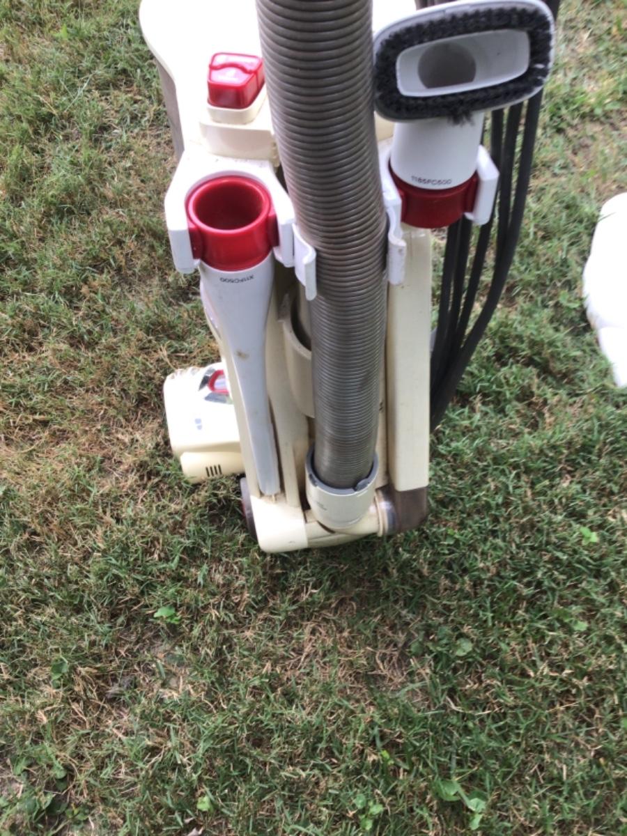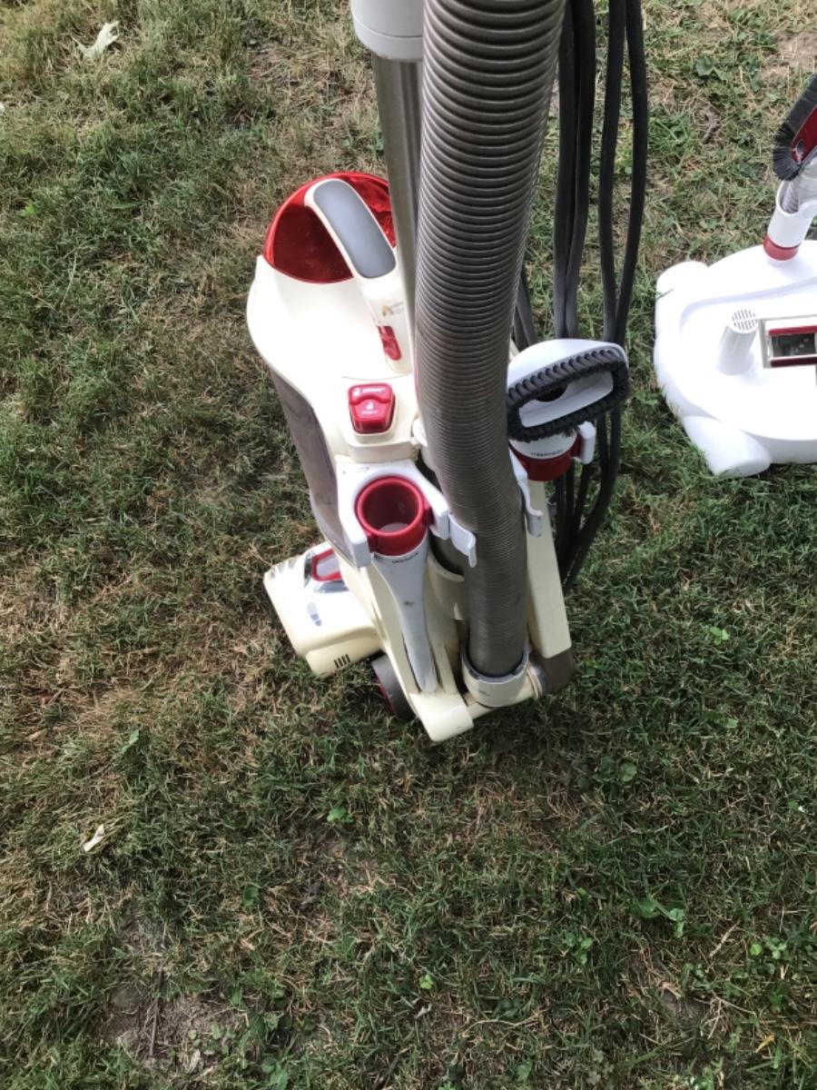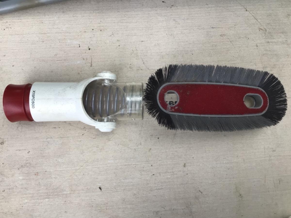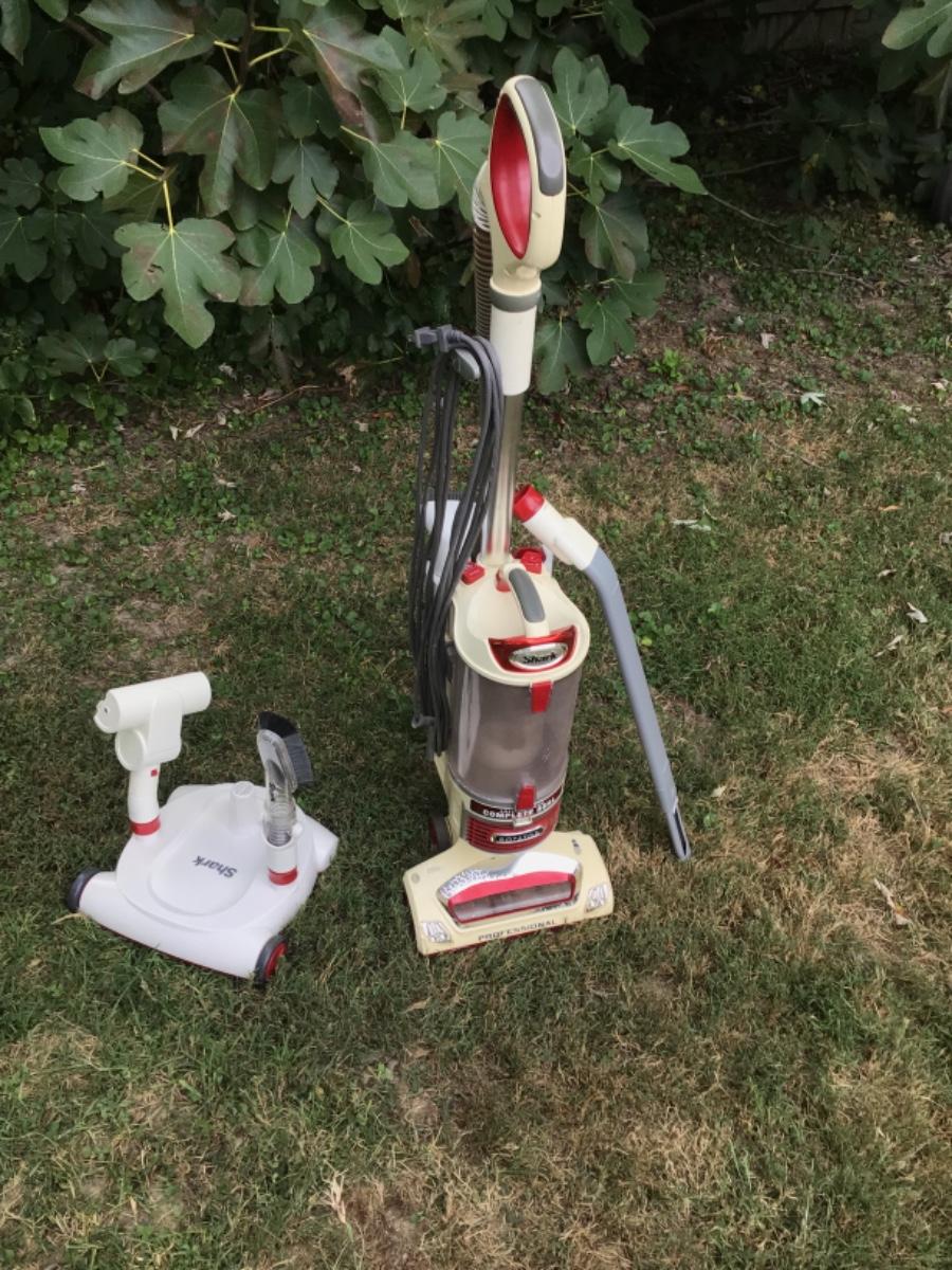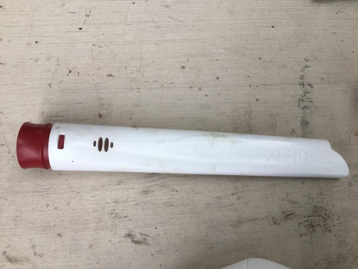 Comes with mobile base with two attachment ports, shark vacuum is in working condition. Comes with five extra nozzles. One hard to reach extension brush, goes to 42 inches in extended length. Comes with one small oval brush, one small hand nozzle brush, one point brush, One small Power brush roll.