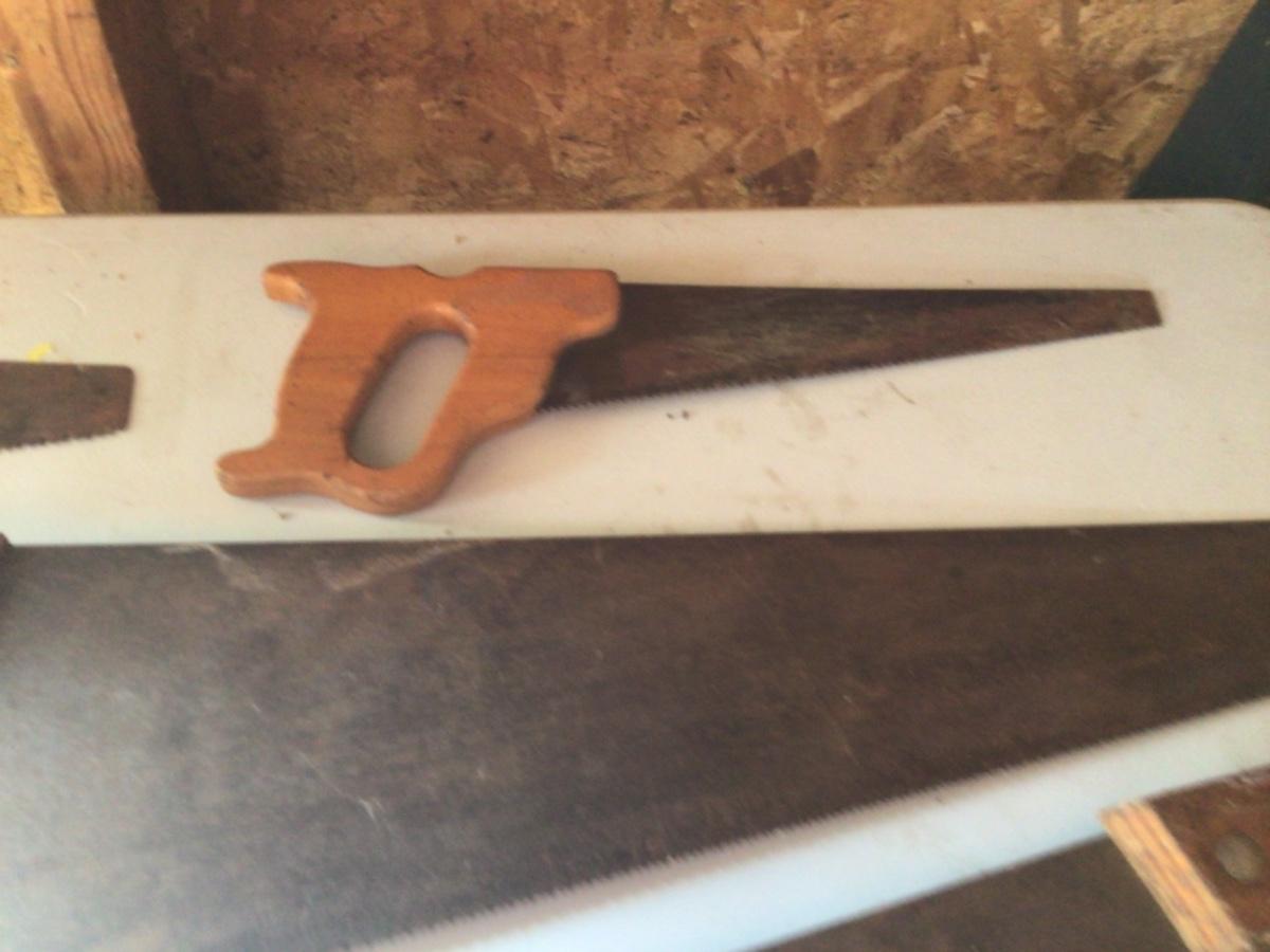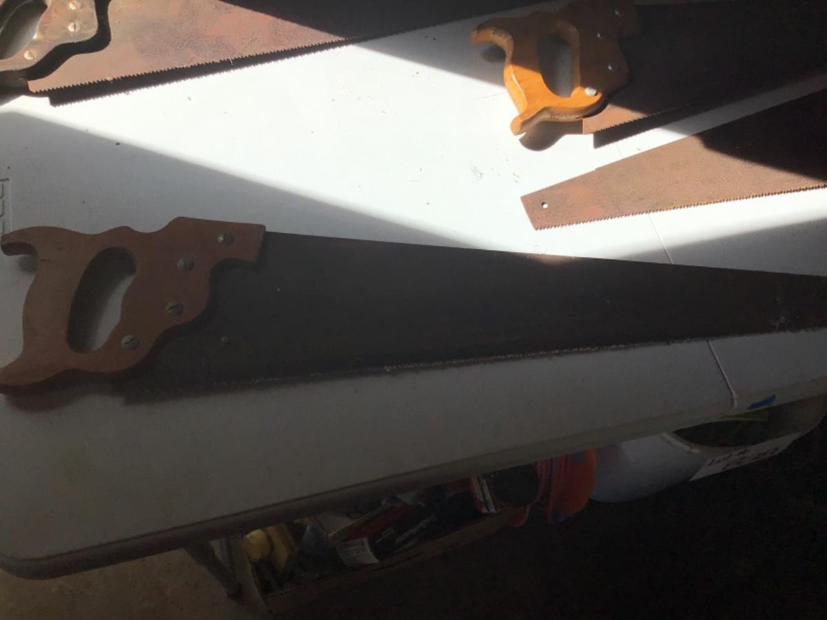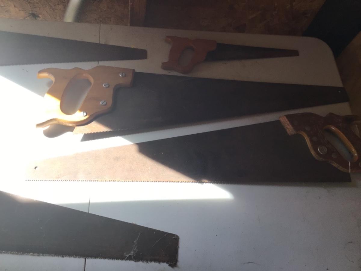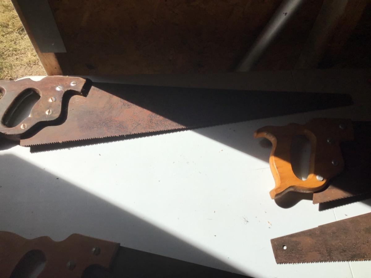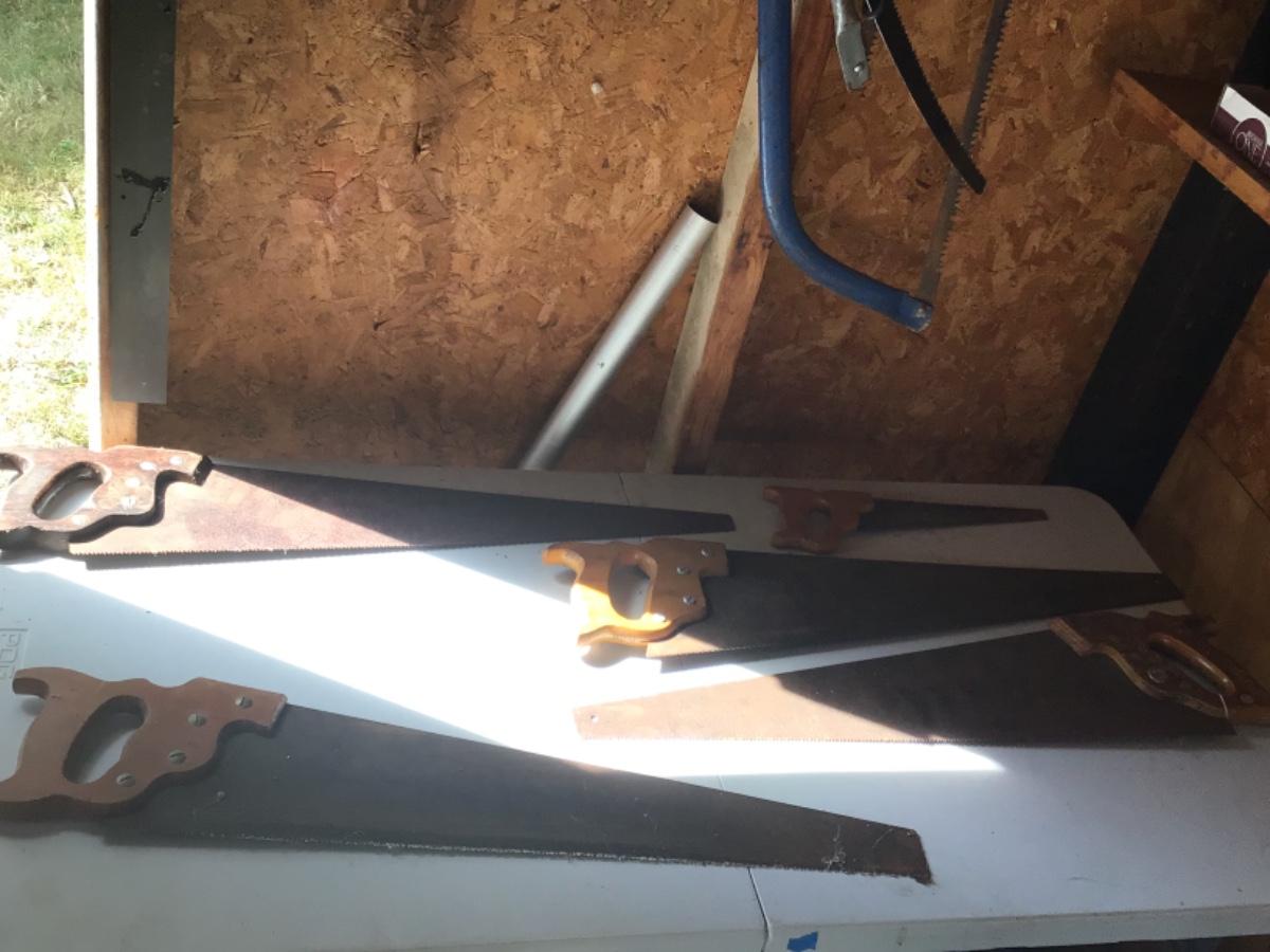Comes with five wood cutting saws, one of which is a small single-handed saw, all saws are a little rusty.