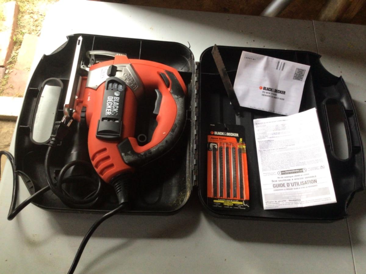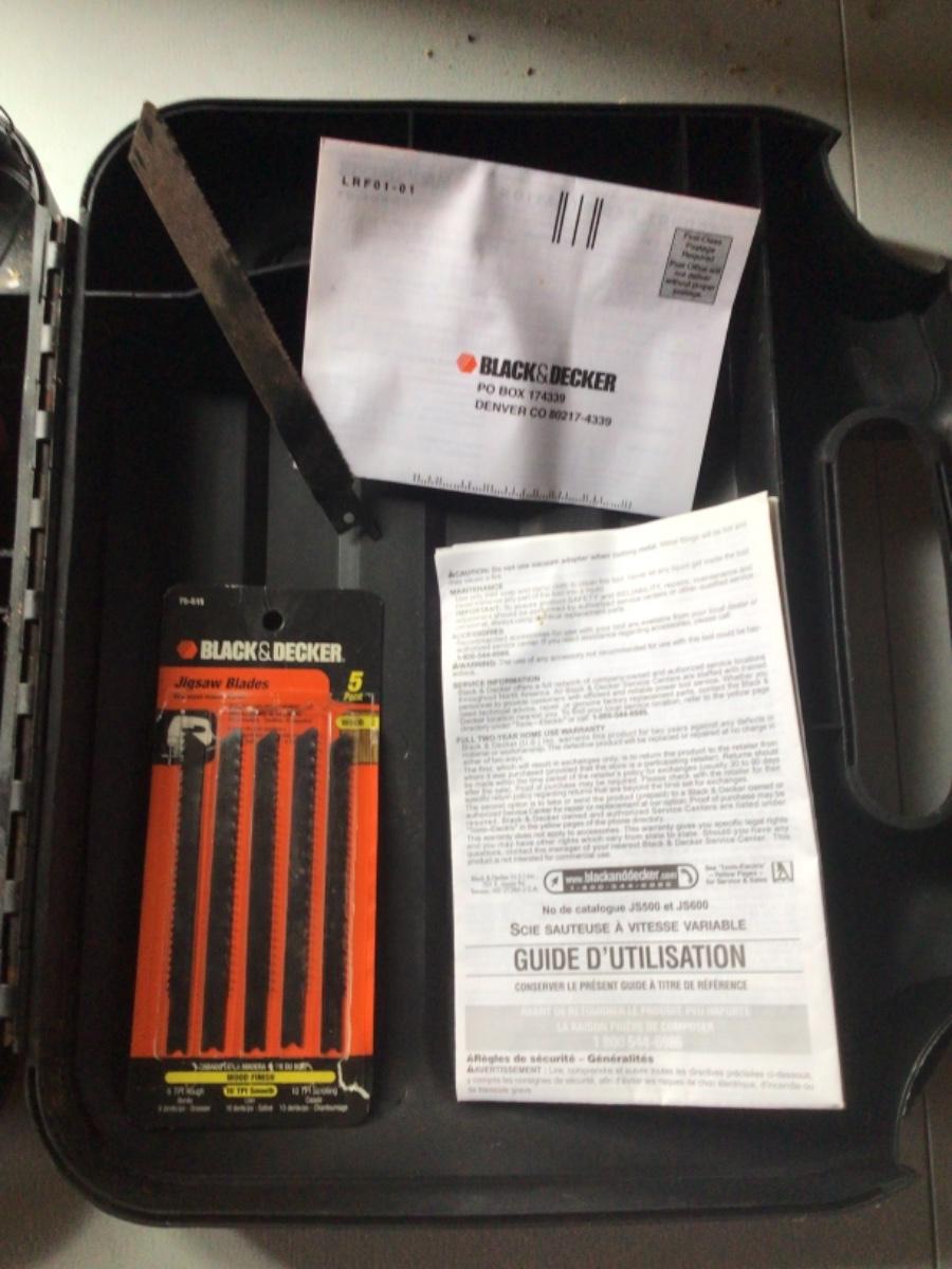 Comes with one reciprocating saw, one instruction manual. Also comes with one five pack of jigsaw blades, and lastly one spare larger jigsaw blade. Reciprocating saw is in working condition.