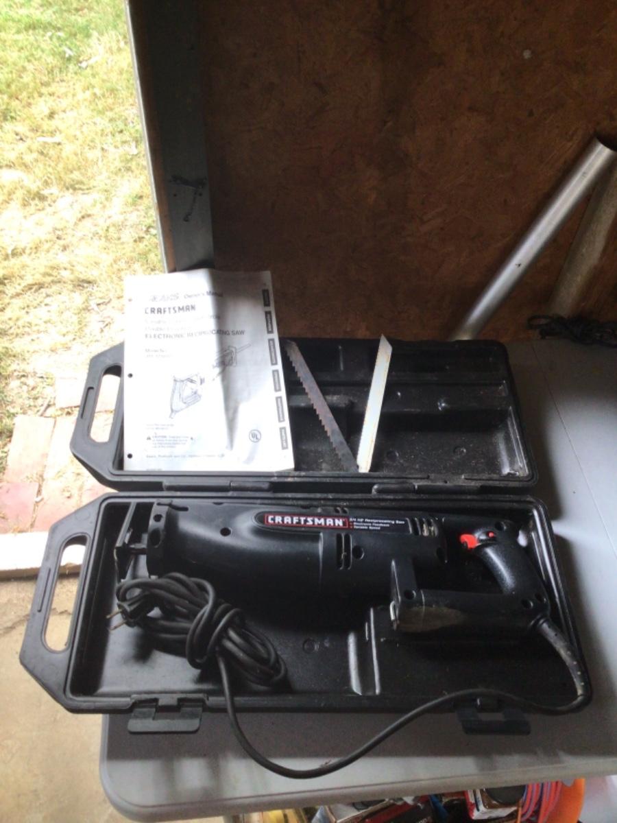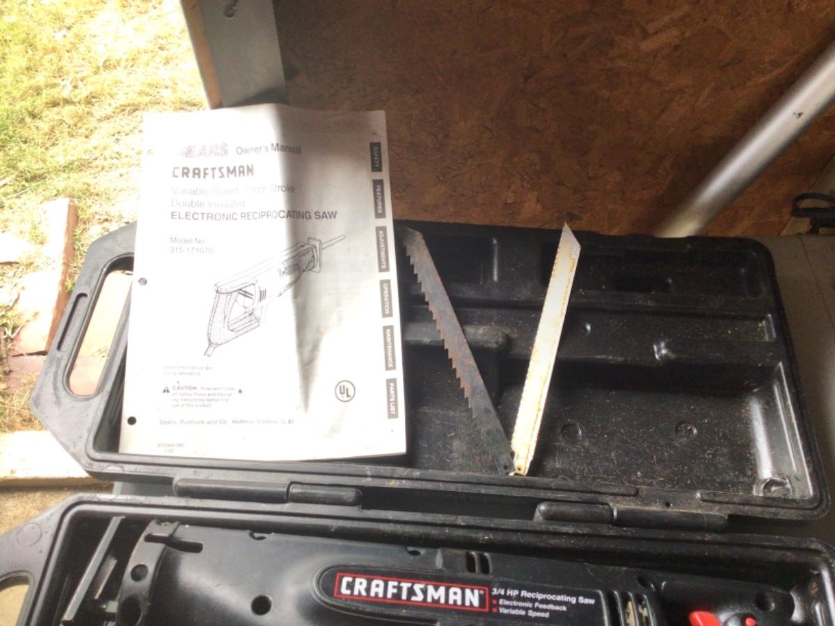Comes with one reciprocating craftsman sore. Two individual blades one short teeth and the other larger teeth. Included owners manual, saw is in working condition.