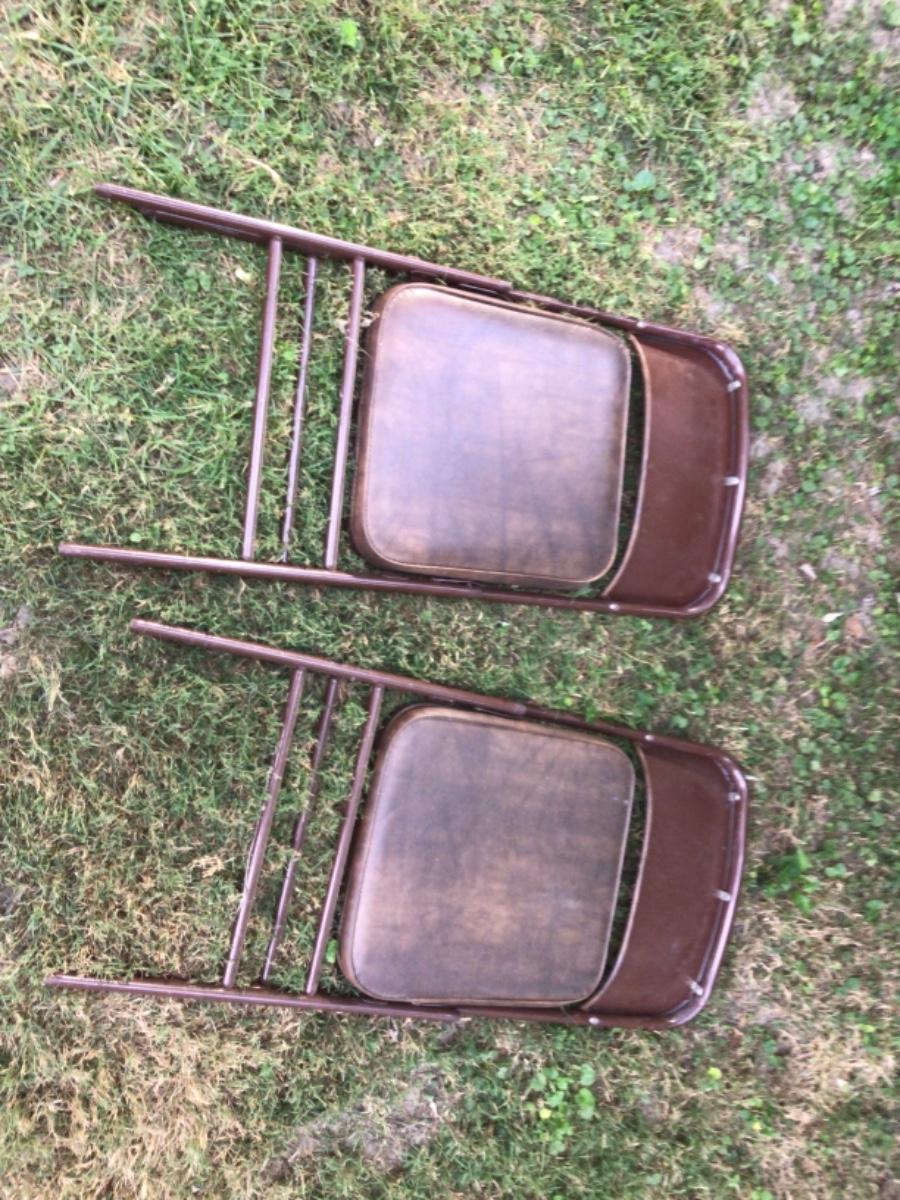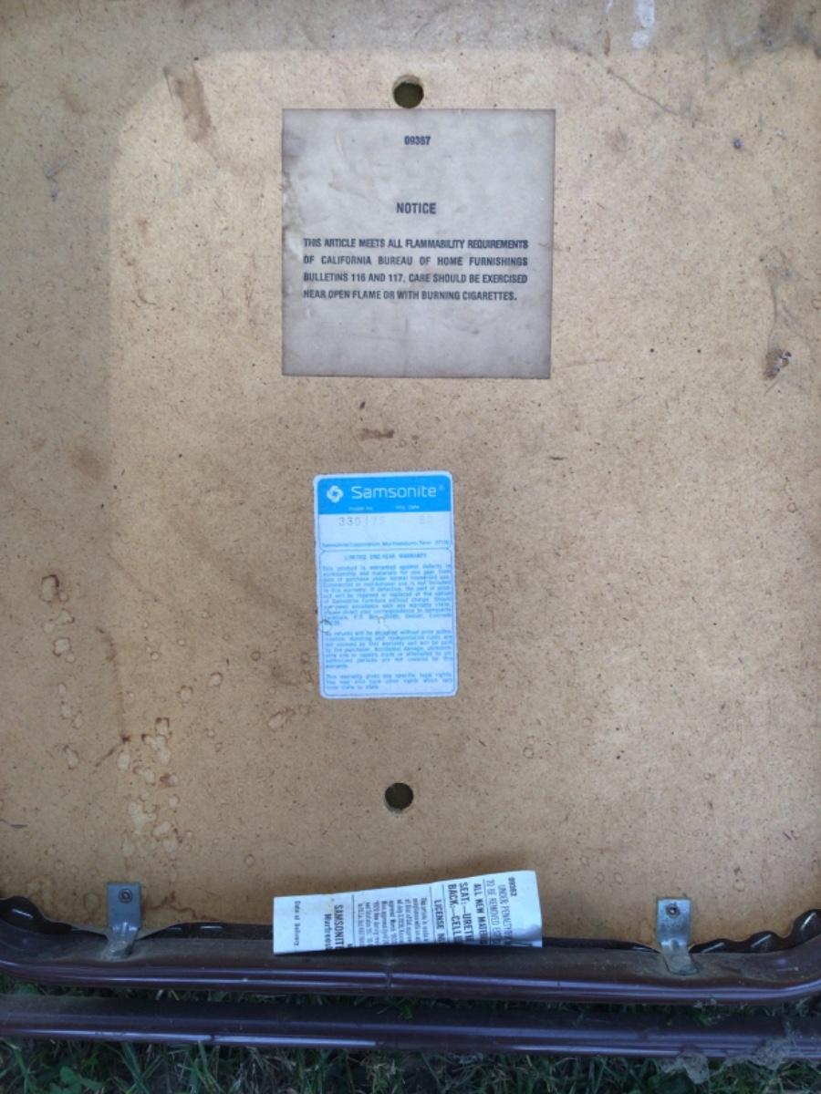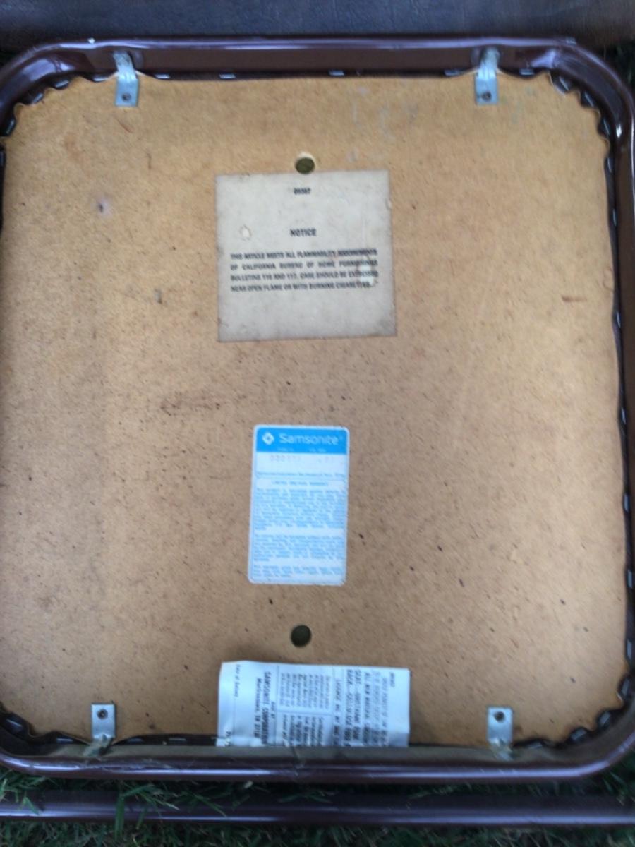 Two dark brown Samsonite chairs, manufactured in 1982. Both chairs seem to have a minimal to no use.