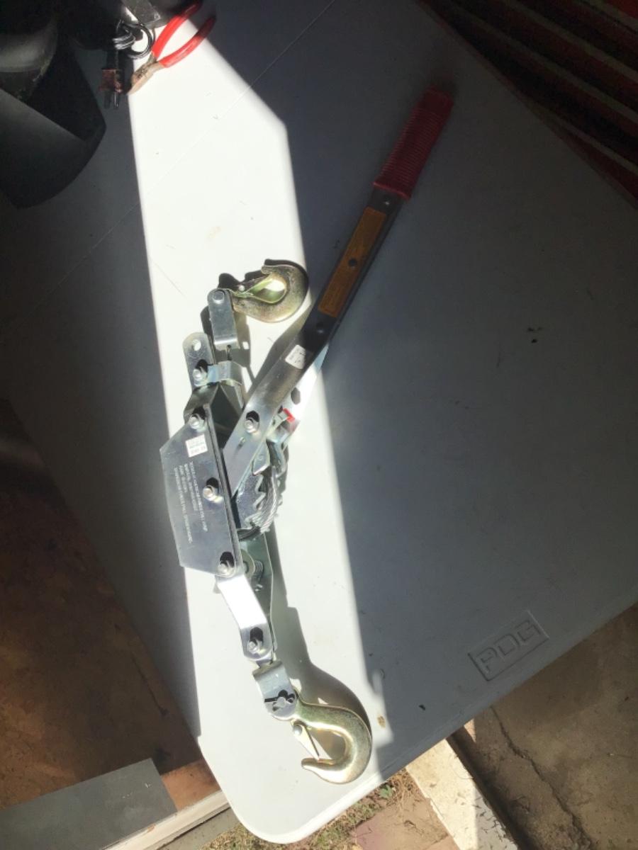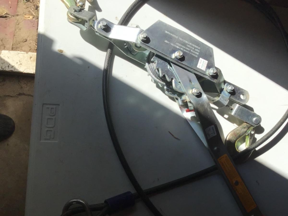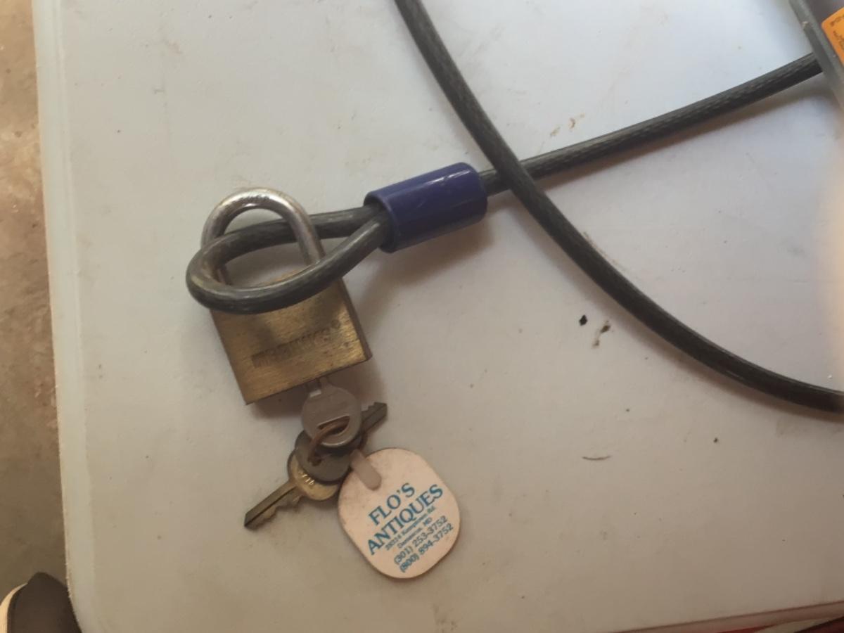 Comes with one new heavy duty American power pulley for commercial use, one Brinks steel cord with old brass brakes lock and key.