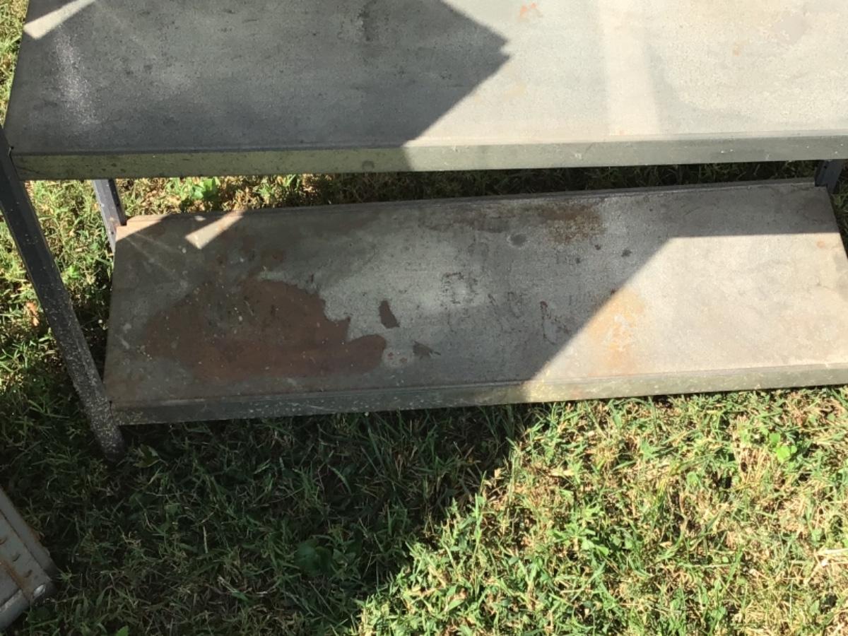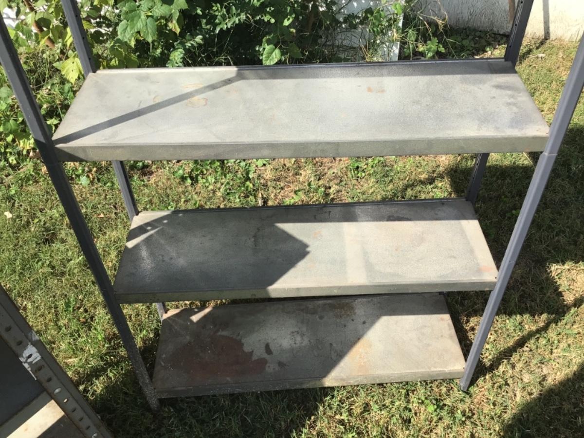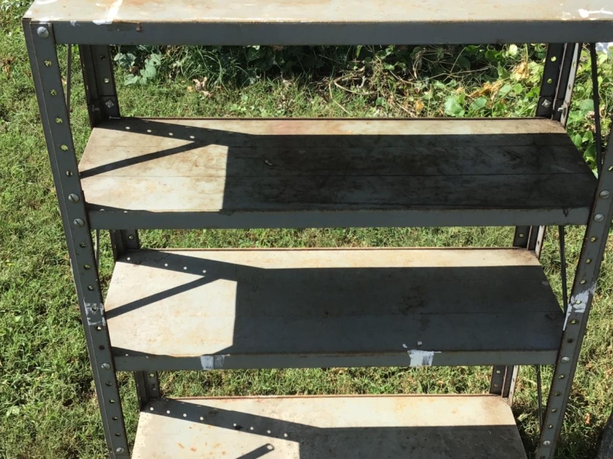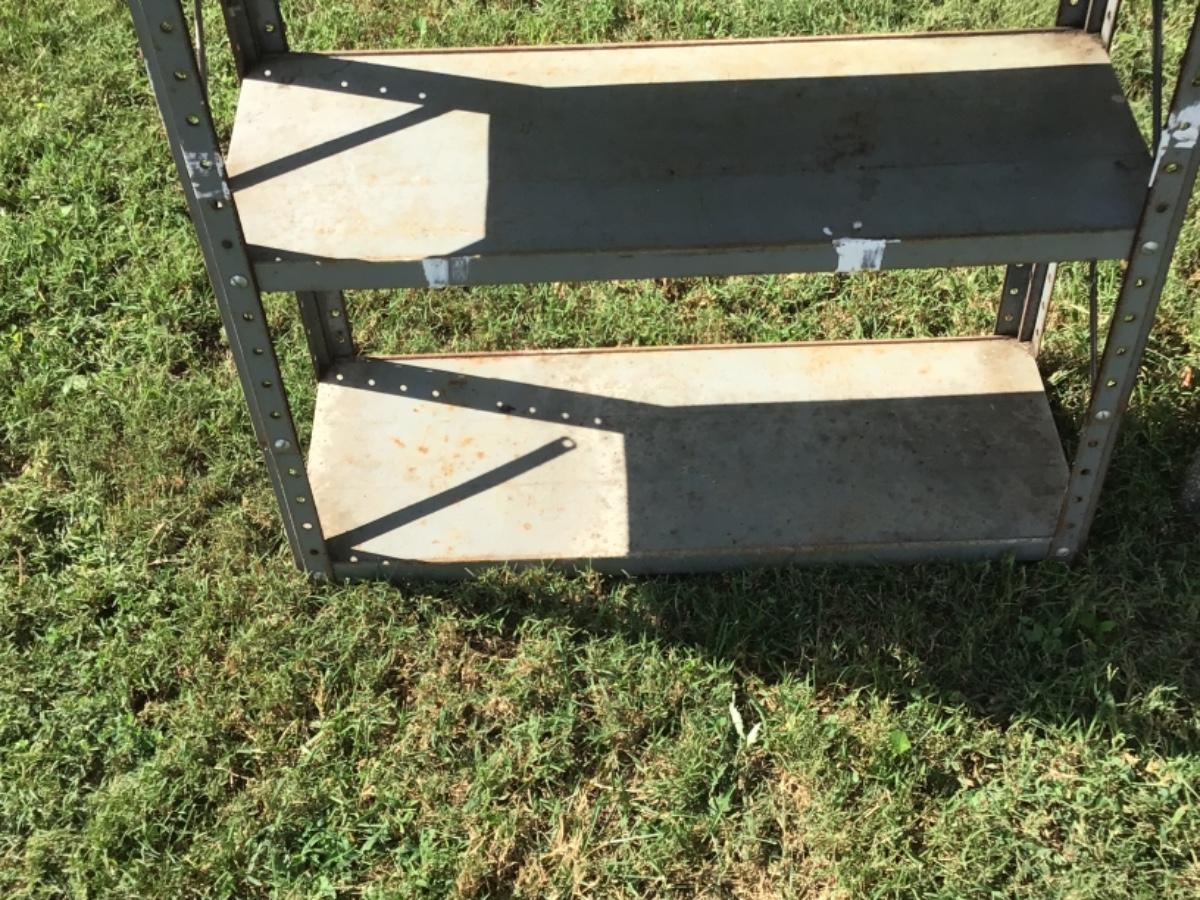 Two old metal shelving units light weight, both have some degree of rust or minimal wear. Otherwise both shelves are in decent shape.