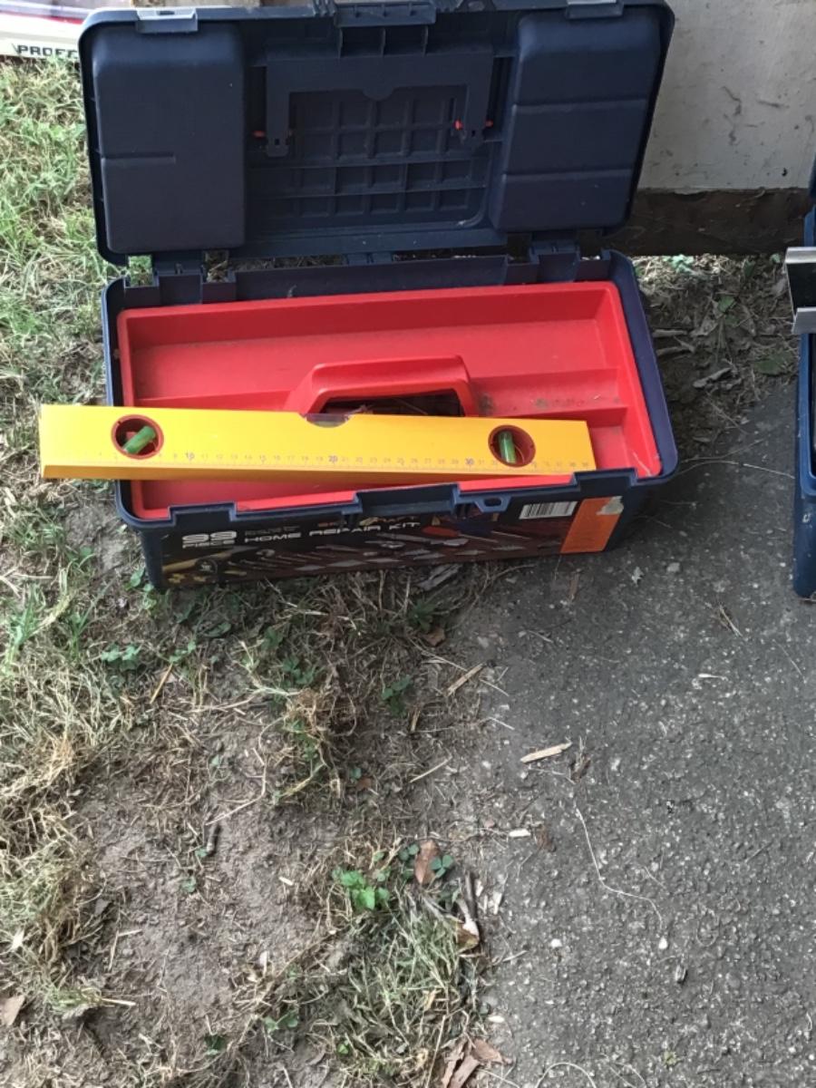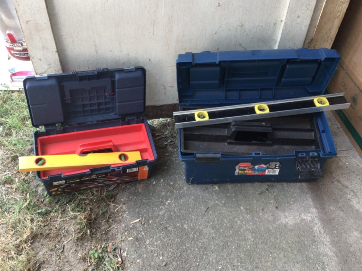 Comes with both carrying trays, two lovely measuring tools, and assorted miscellaneous tools in each toolbox.