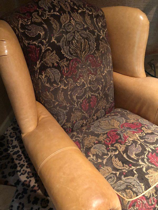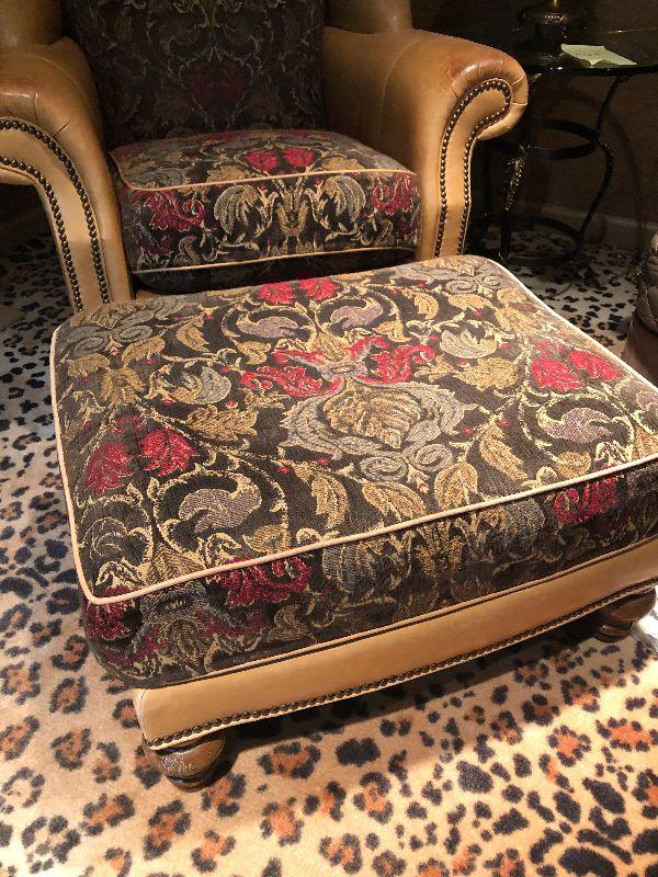 O9: Leather Armchair w/ matching floral ottoman W/L collection