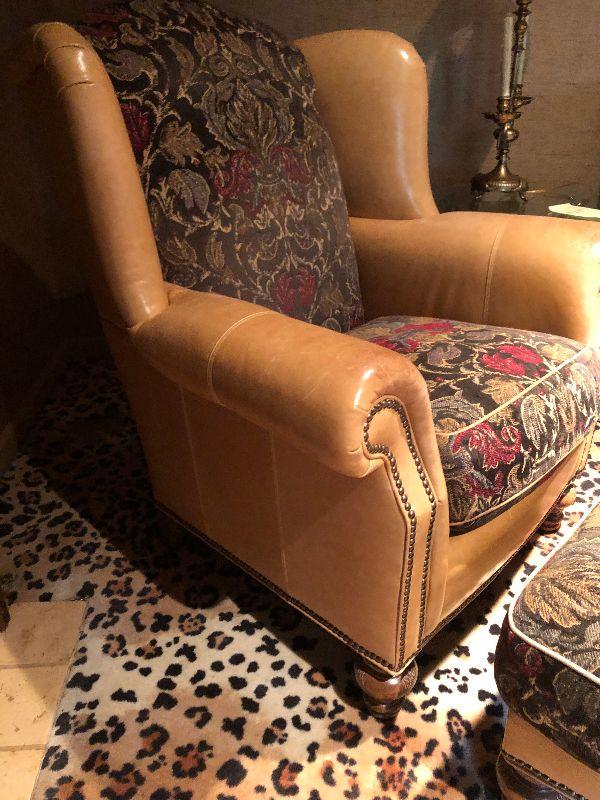 O9: Leather Armchair w/ matching floral ottoman  W/L collection