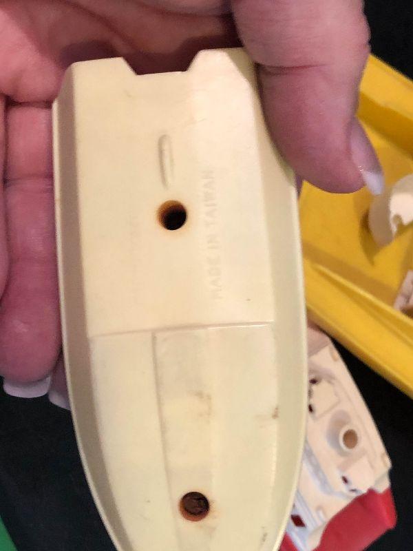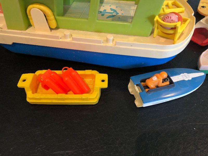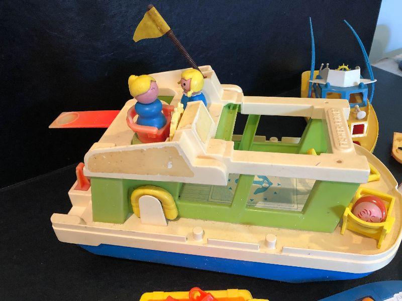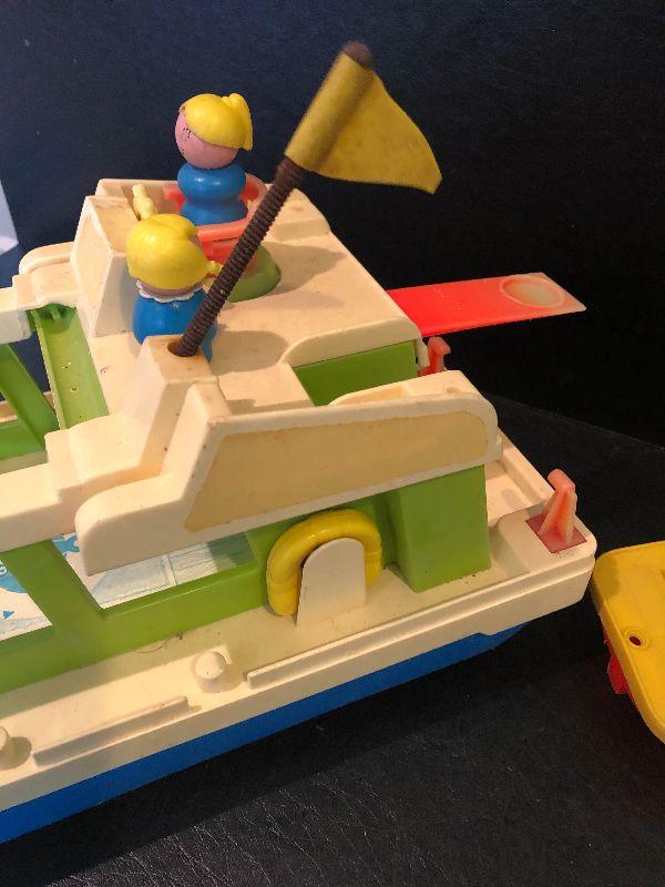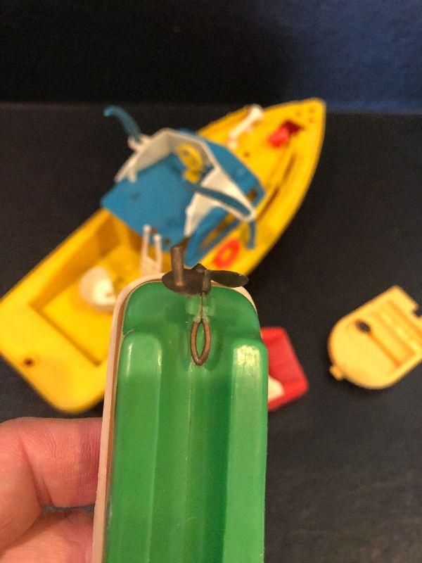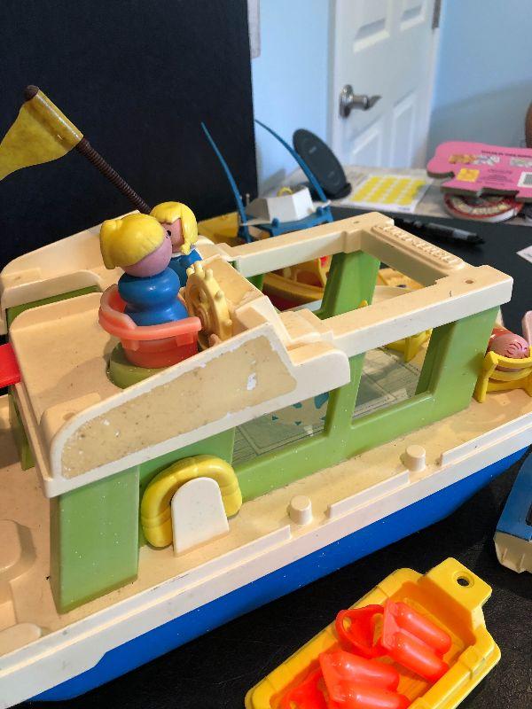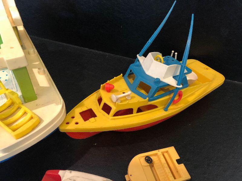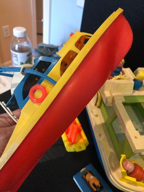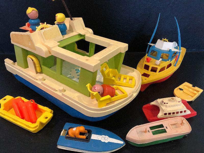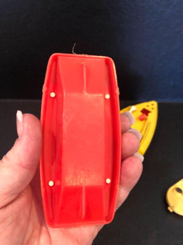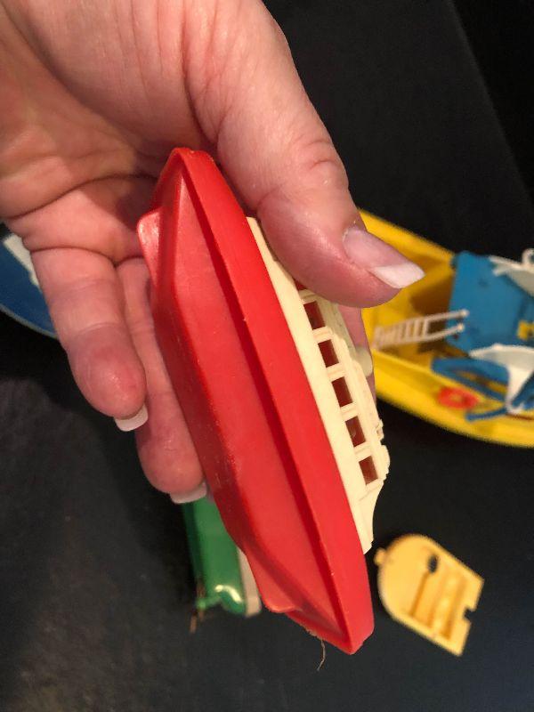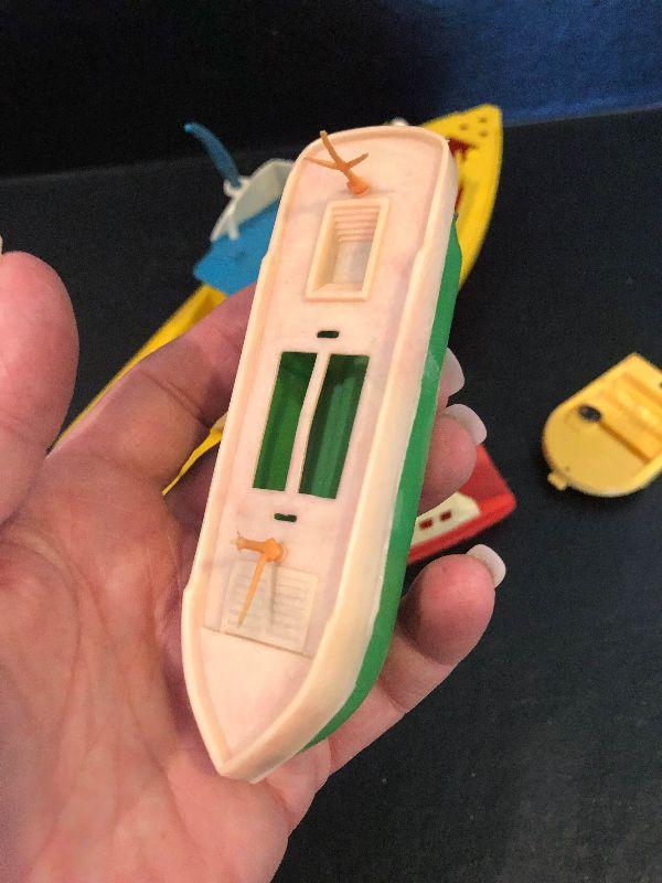 Plastic boats with people.