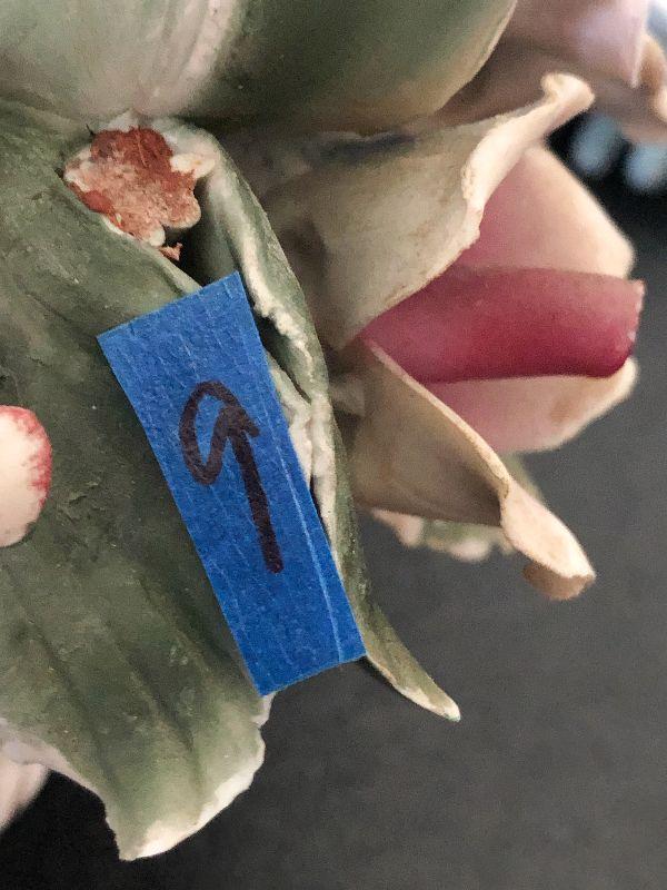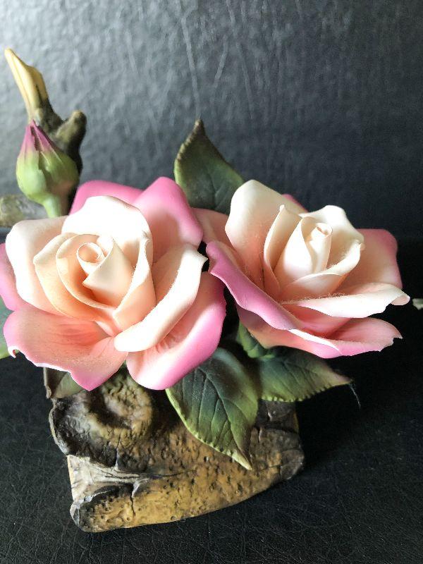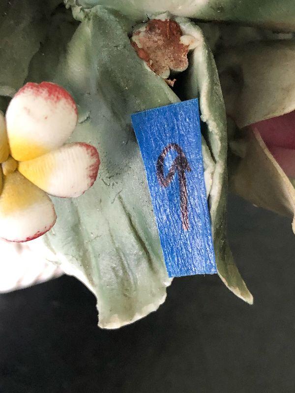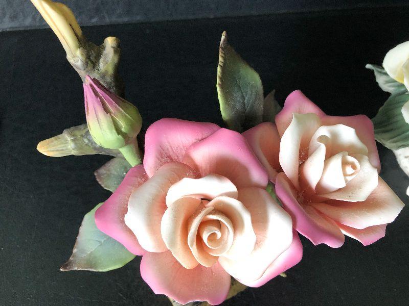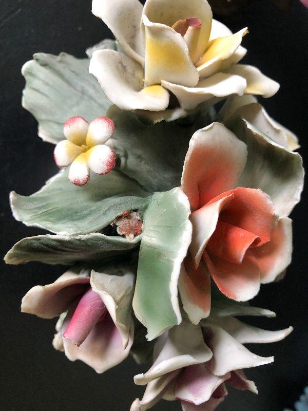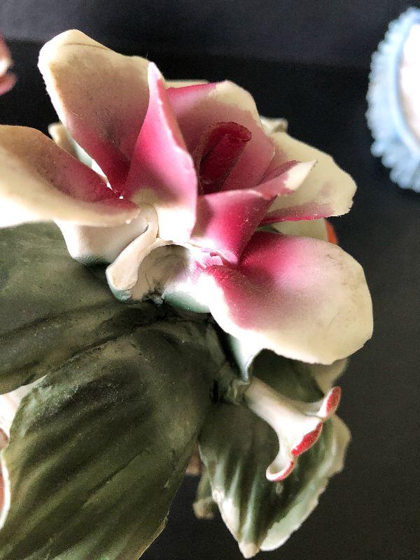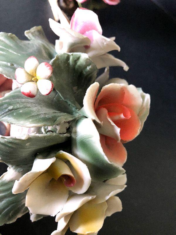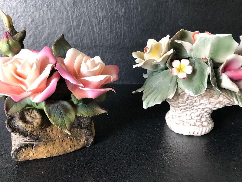 Set of two floral figurines. One Capodimote and one musical omnibus