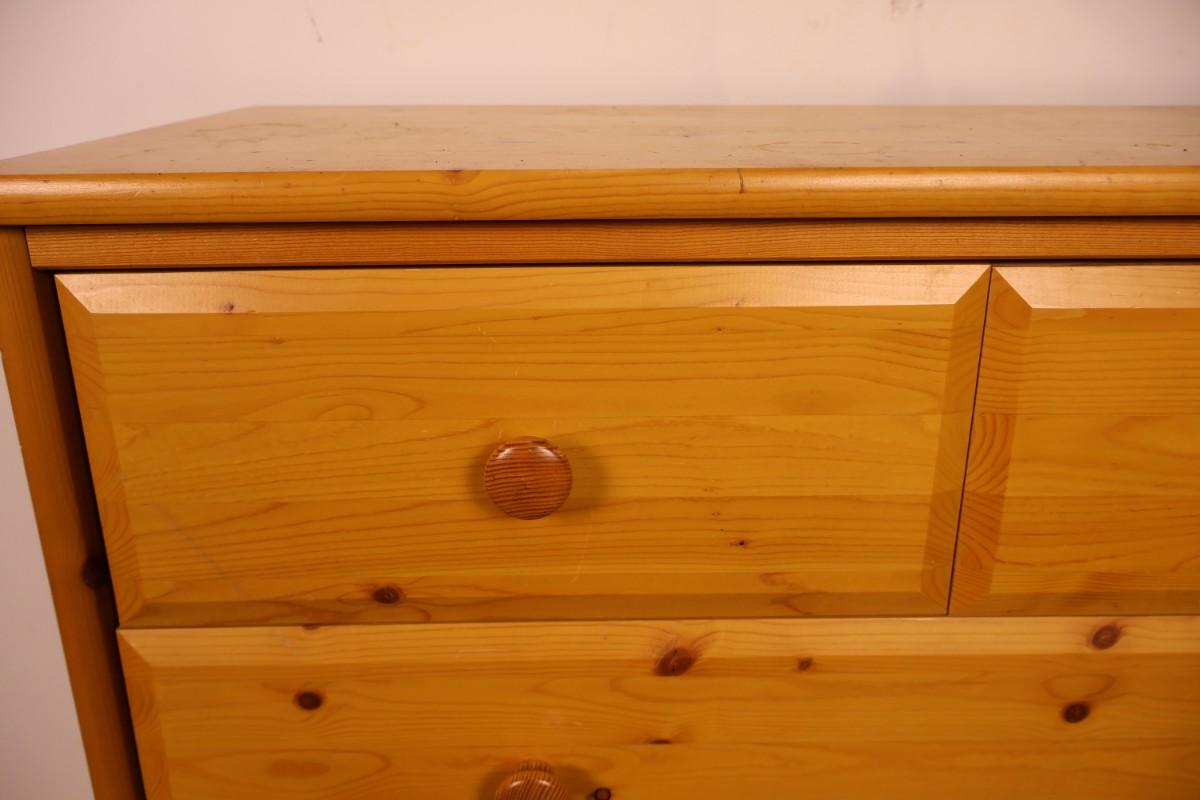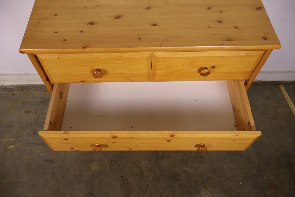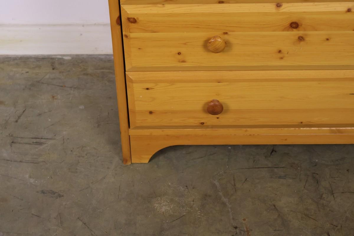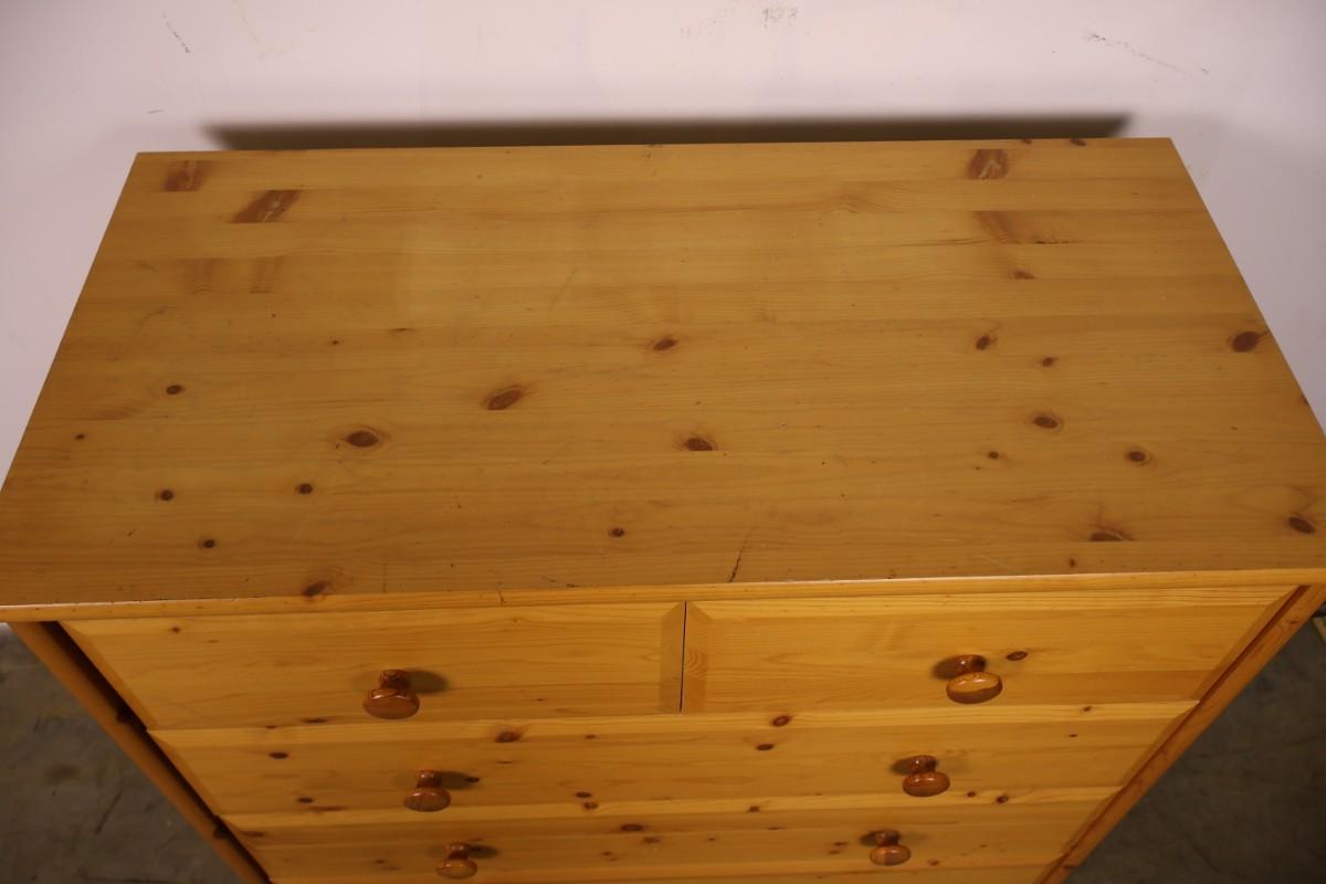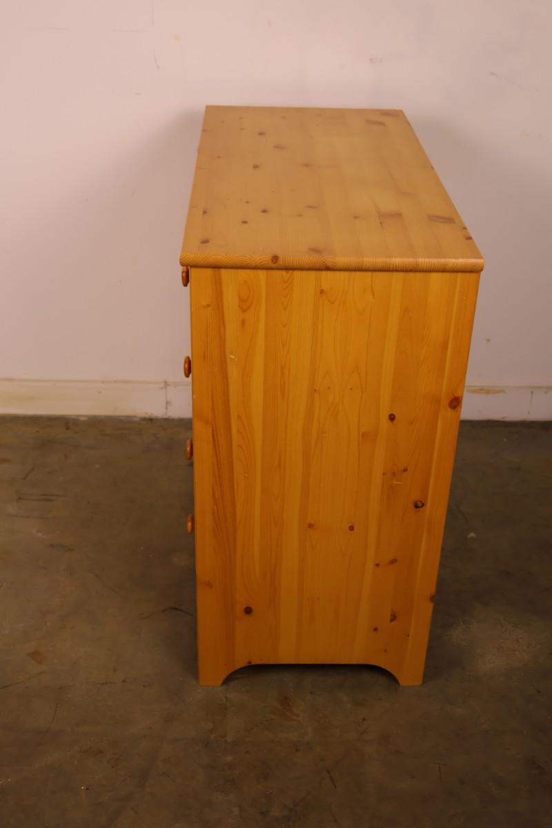 Oak 5 Drawer Chest. Has some scratches. Drawers function properly. Dimensions: 31 1/2" x 15 1/2" x 31" high.