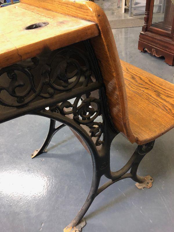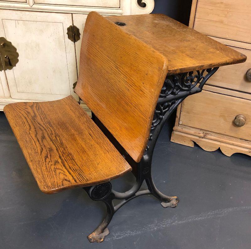 Oak and Cast Iron Antique school desk