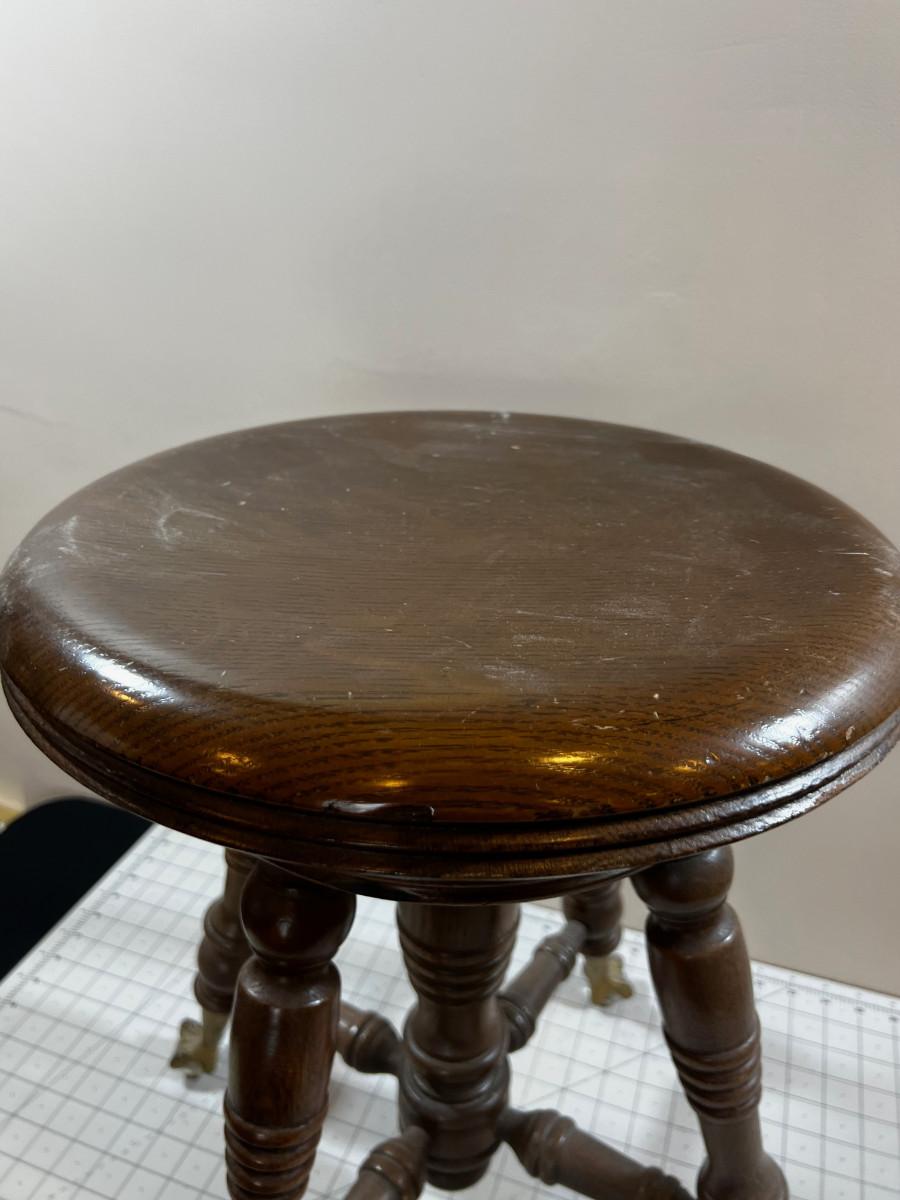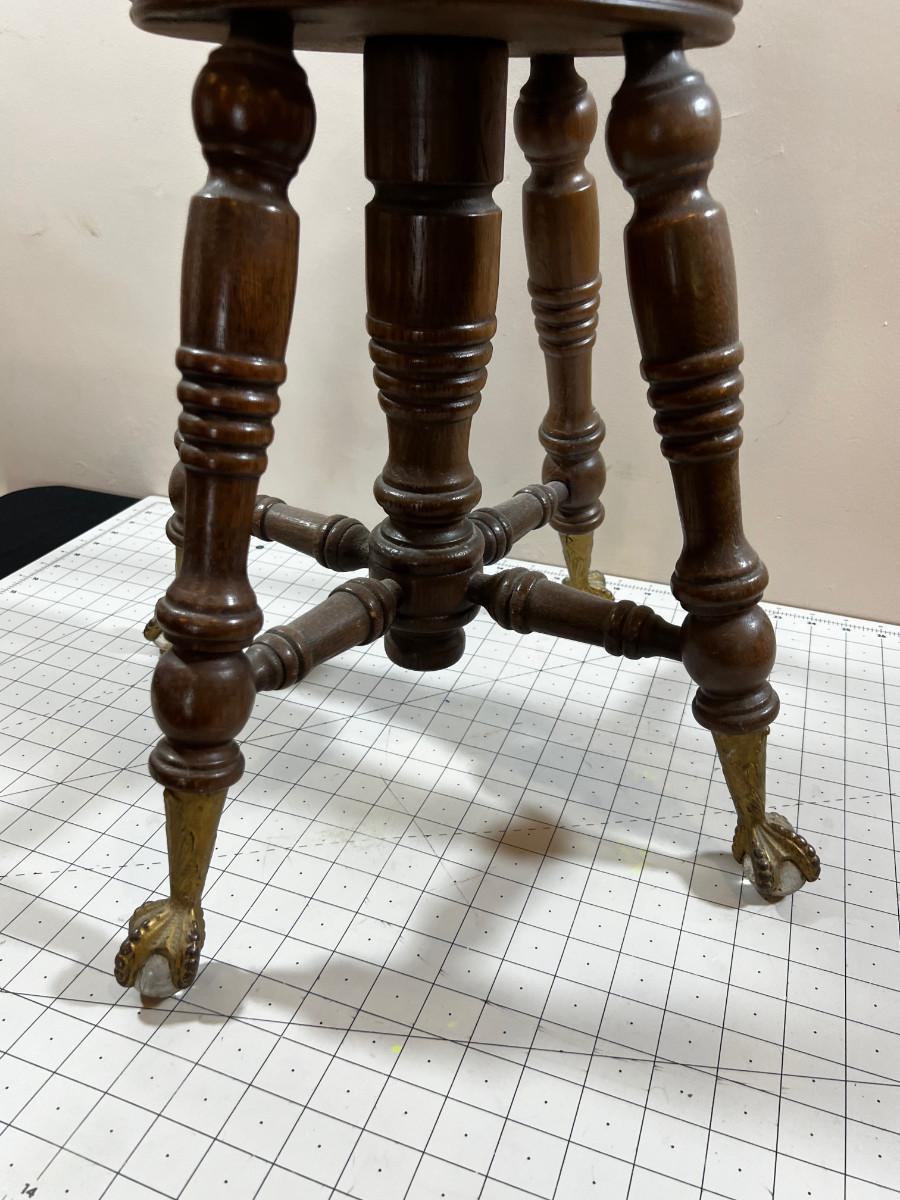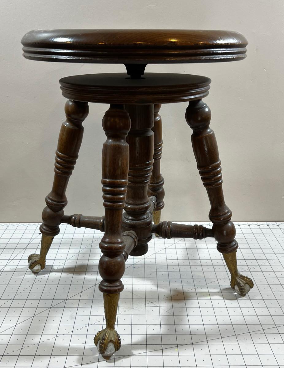 Oak Antique Piano Stool Brass Crystal Ball Claw Foot.
